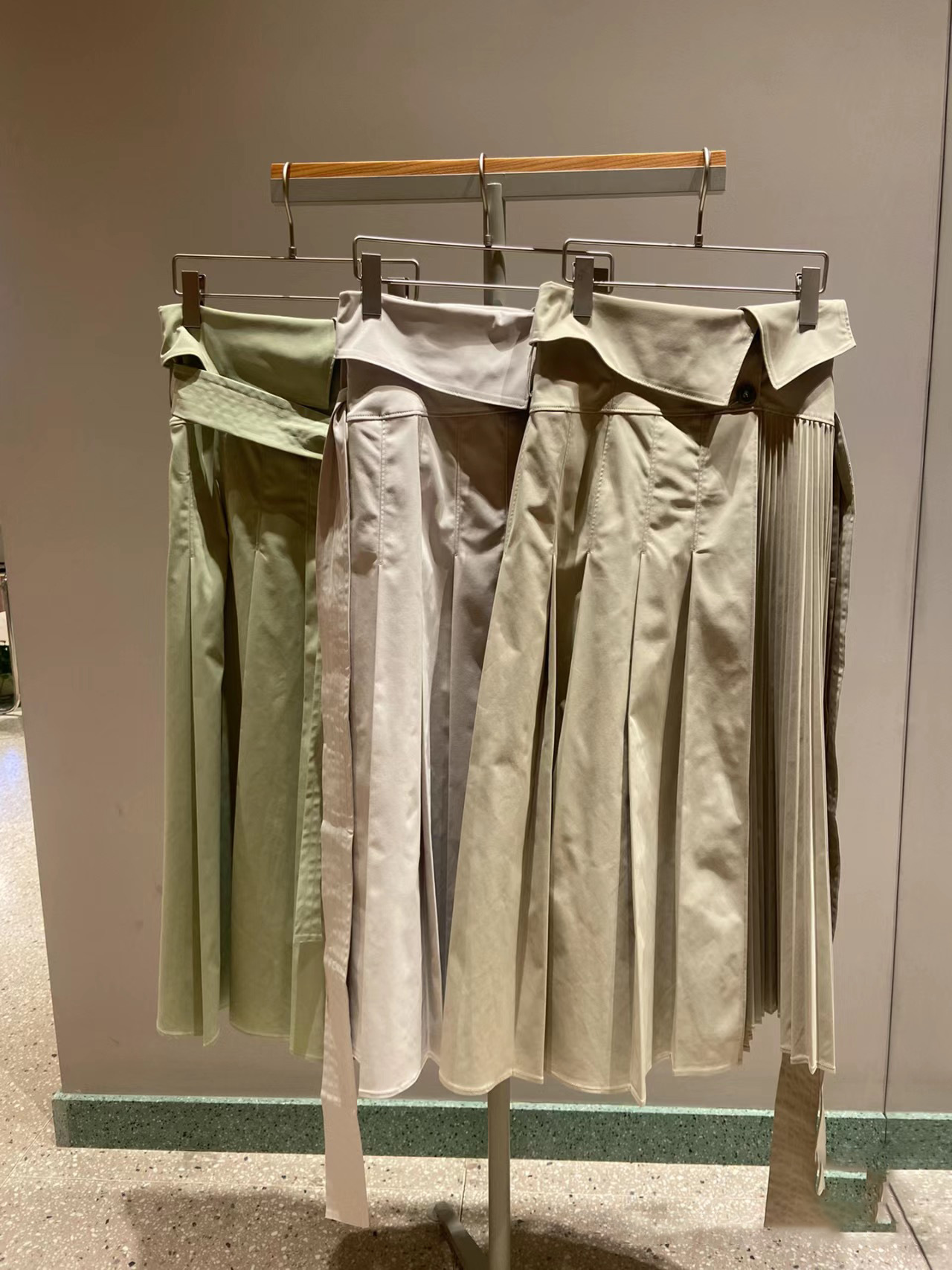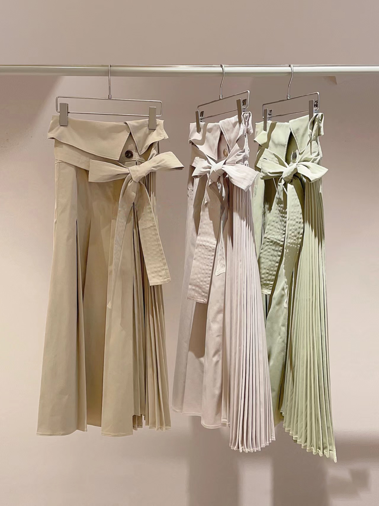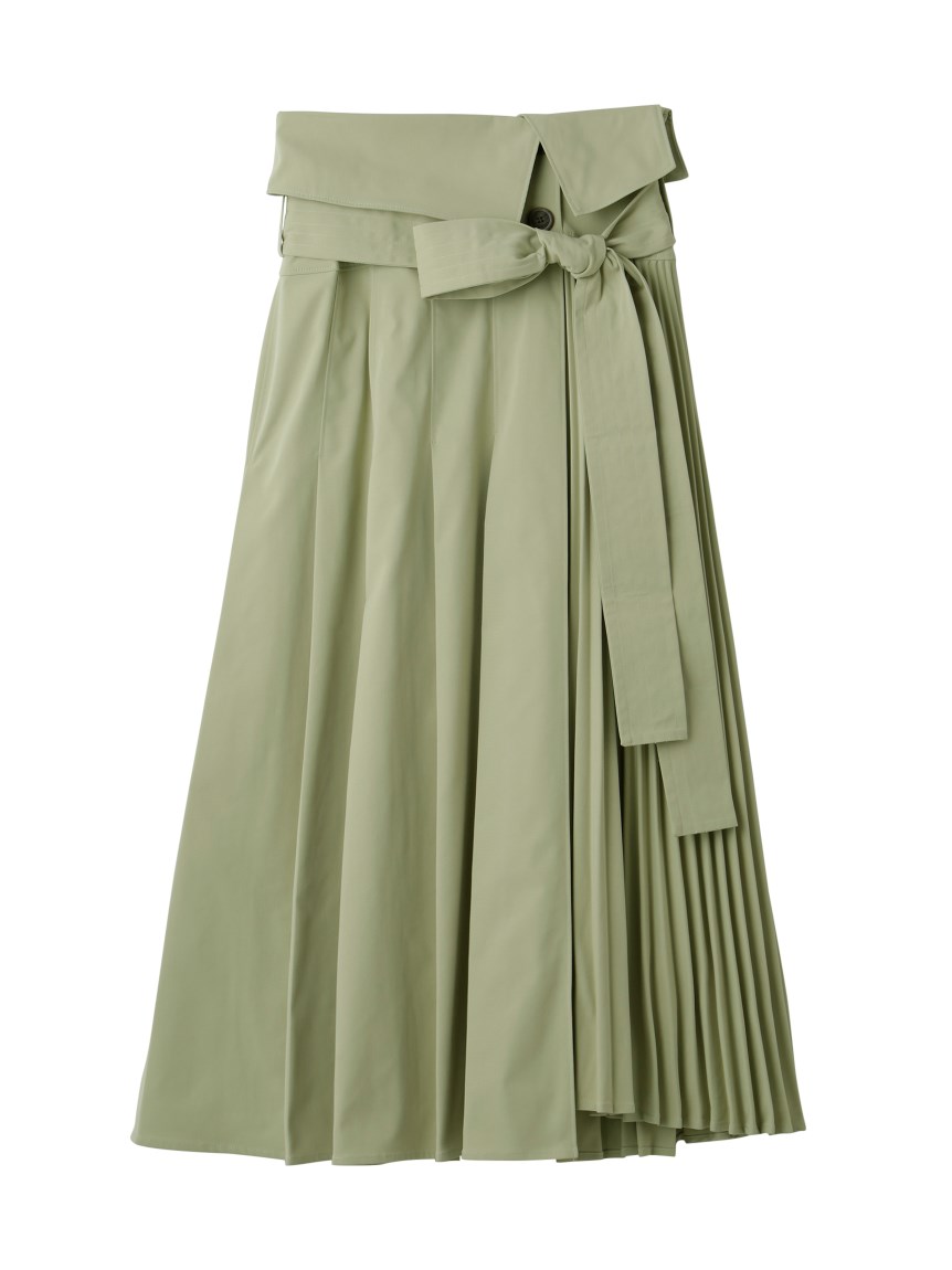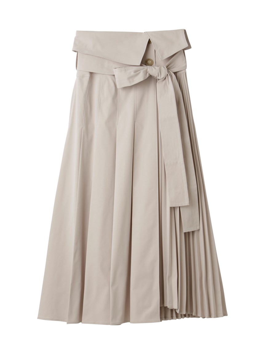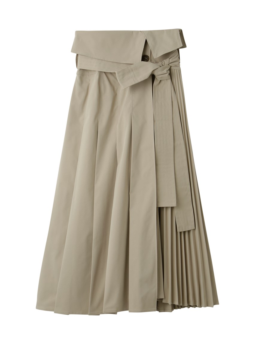 プリーツ巾の違いをだしすこしモードながらもきれいめに仕上げたトレンチスカート。同素材を用いたショートトレンチ(SWFJ231061)とのセットアップスタイルもおすすめです。
