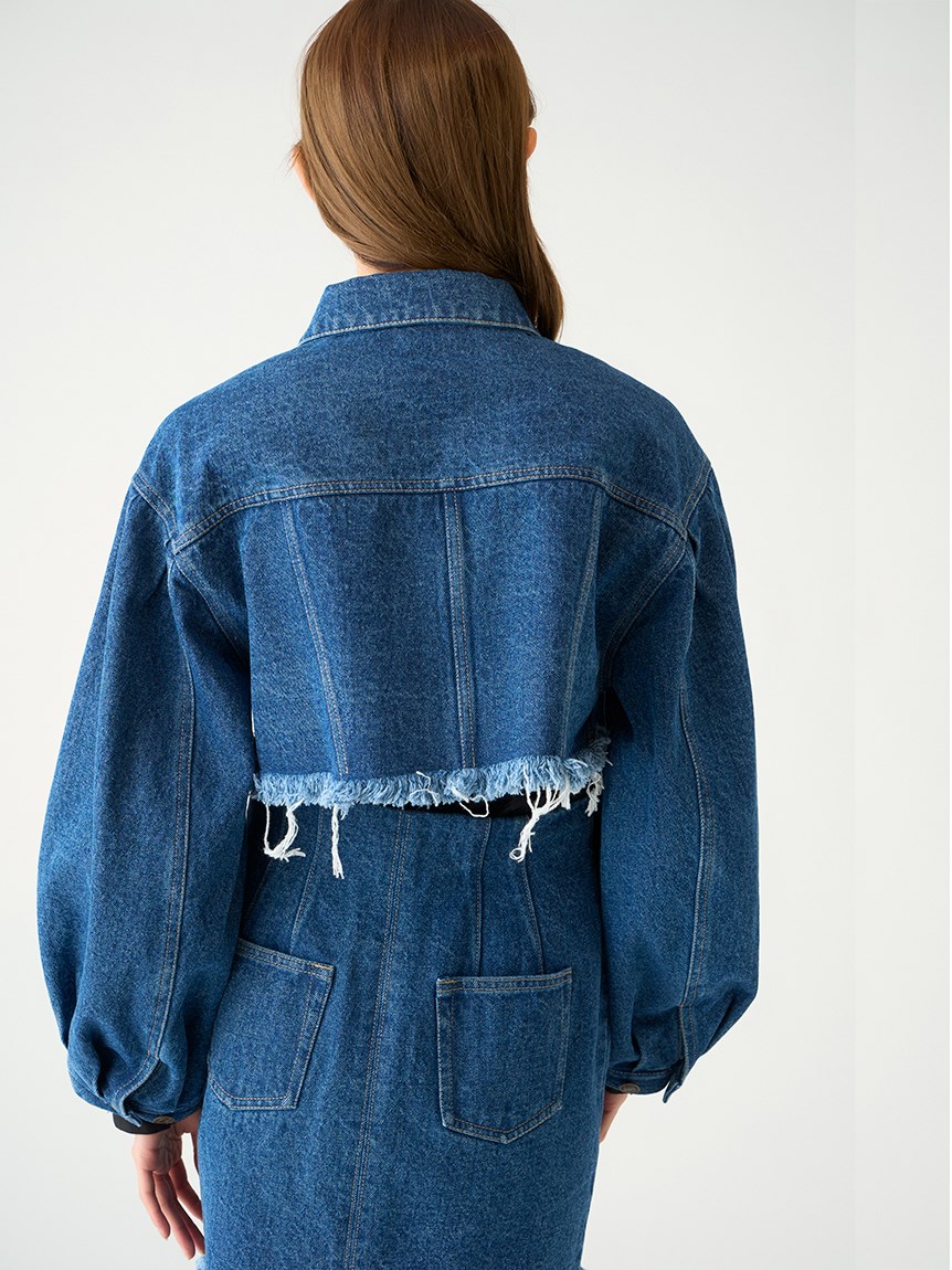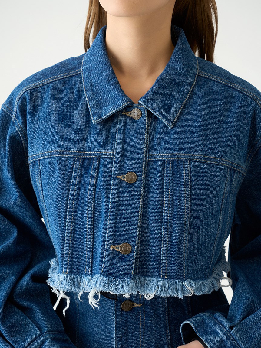 【トレンド感溢れるクロップド丈が新鮮なデニムジャケット】