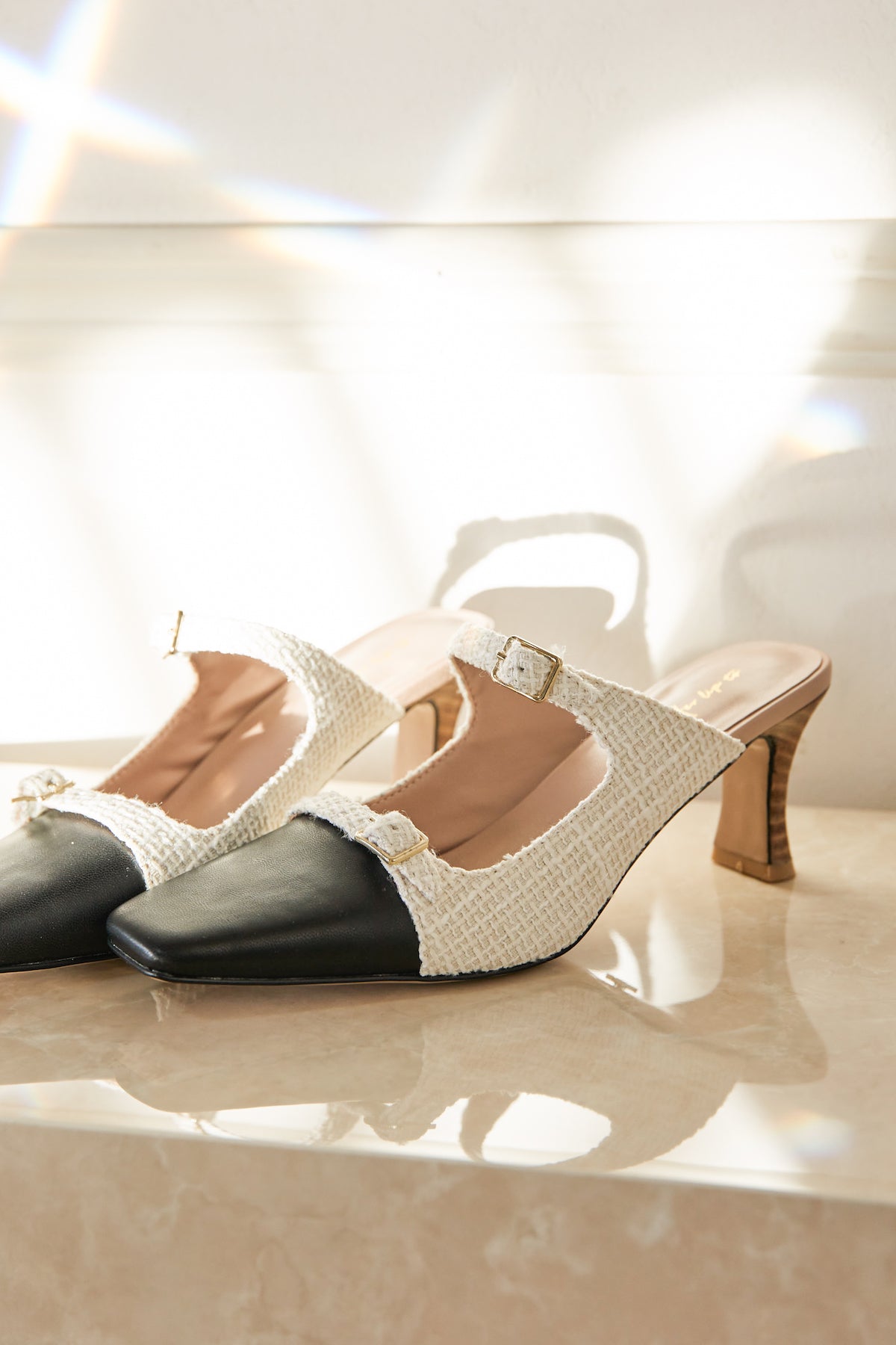 大好評いただいている定番のエレガントなミュールから春らしいツイード素材が登場。