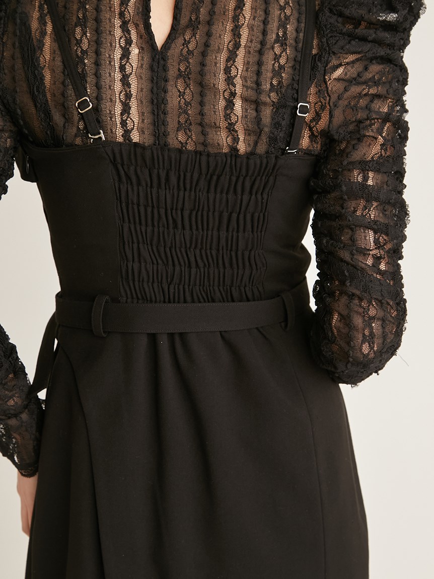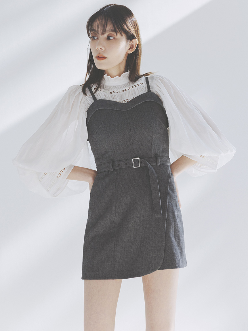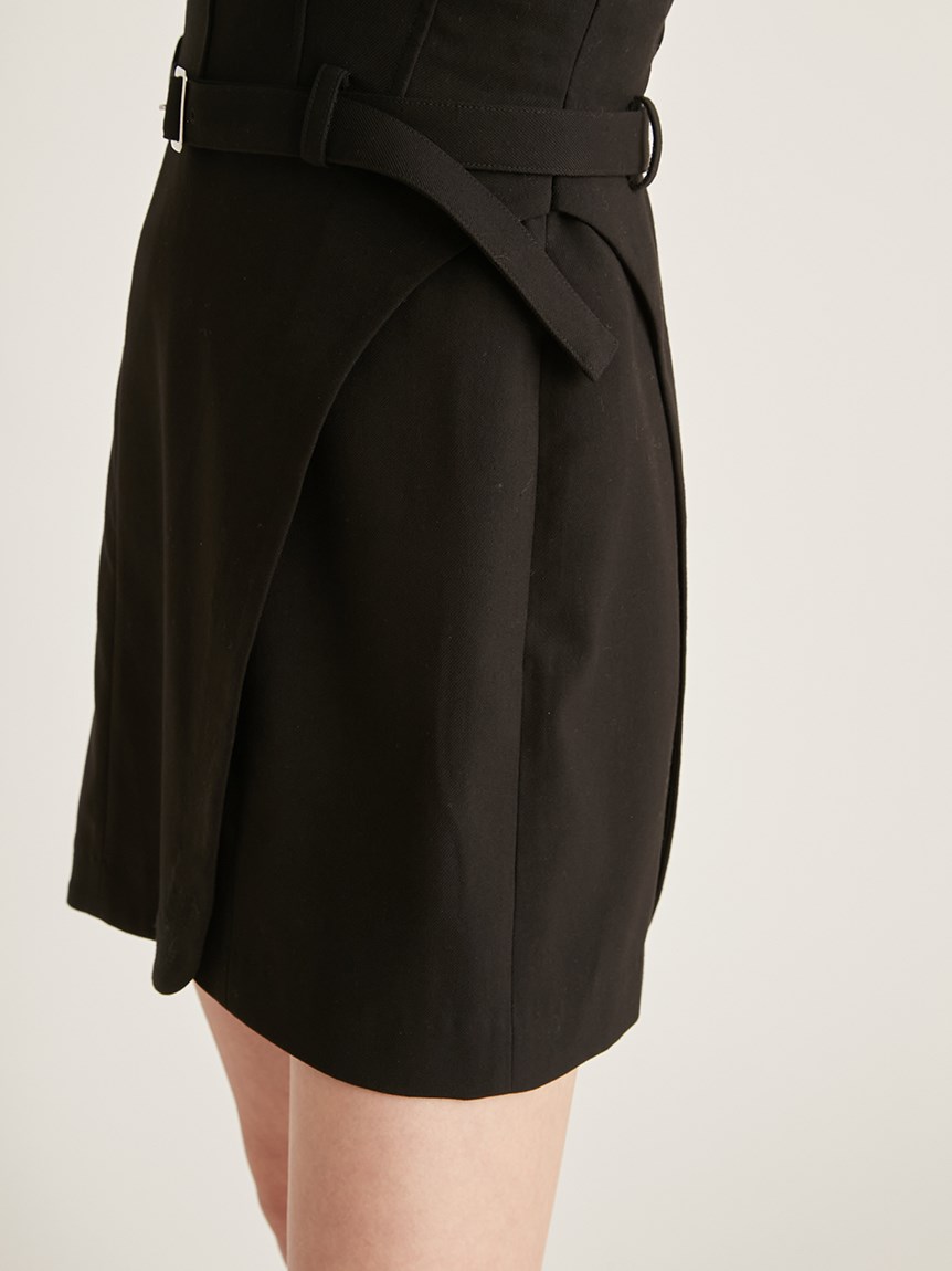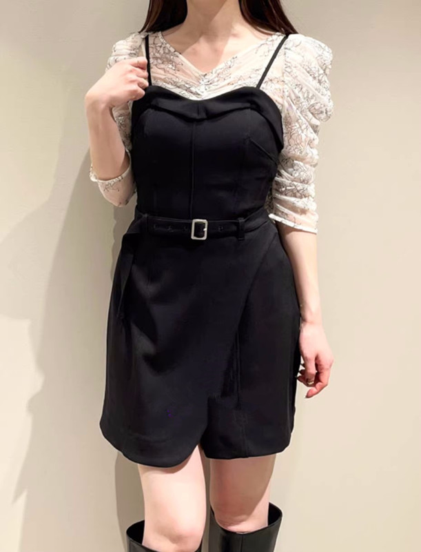 クラシックなコルセットディテールを落とし込んだ、トレンド感溢れるロンパース。ボトム部分にはラップ風にスカートを重ね合わせ個性をプラスしました。ショルダーストラップは取り外しても着用可能なので合わせるアイテムによってアレンジOK。ウエストマークしたベルトがメリハリを与え、スタイルアップ効果も期待できます。