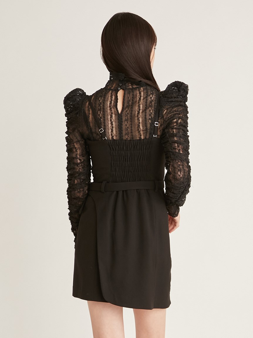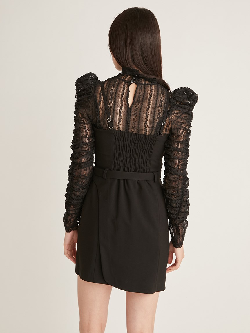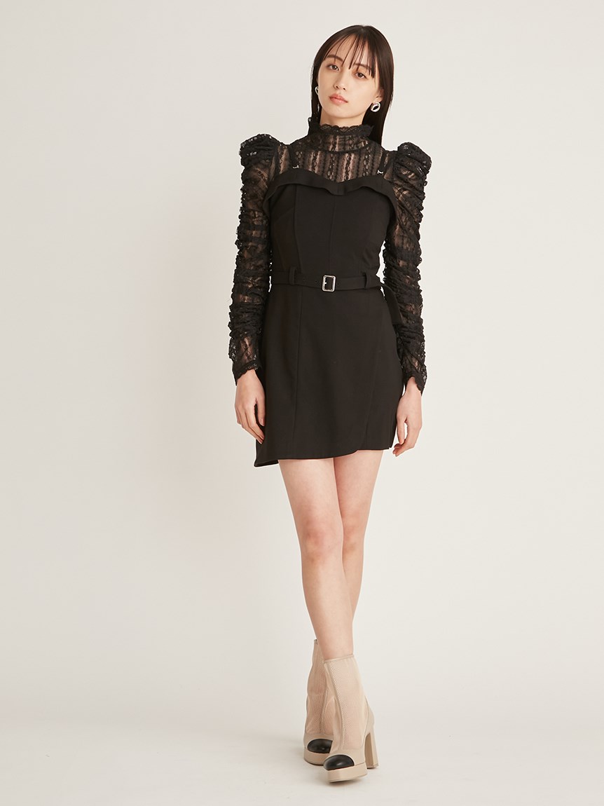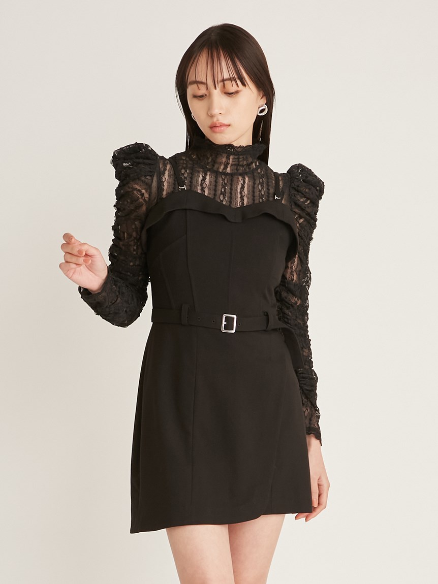 クラシックなコルセットディテールを落とし込んだ、トレンド感溢れるロンパース。ボトム部分にはラップ風にスカートを重ね合わせ個性をプラスしました。ショルダーストラップは取り外しても着用可能なので合わせるアイテムによってアレンジOK。ウエストマークしたベルトがメリハリを与え、スタイルアップ効果も期待できます。