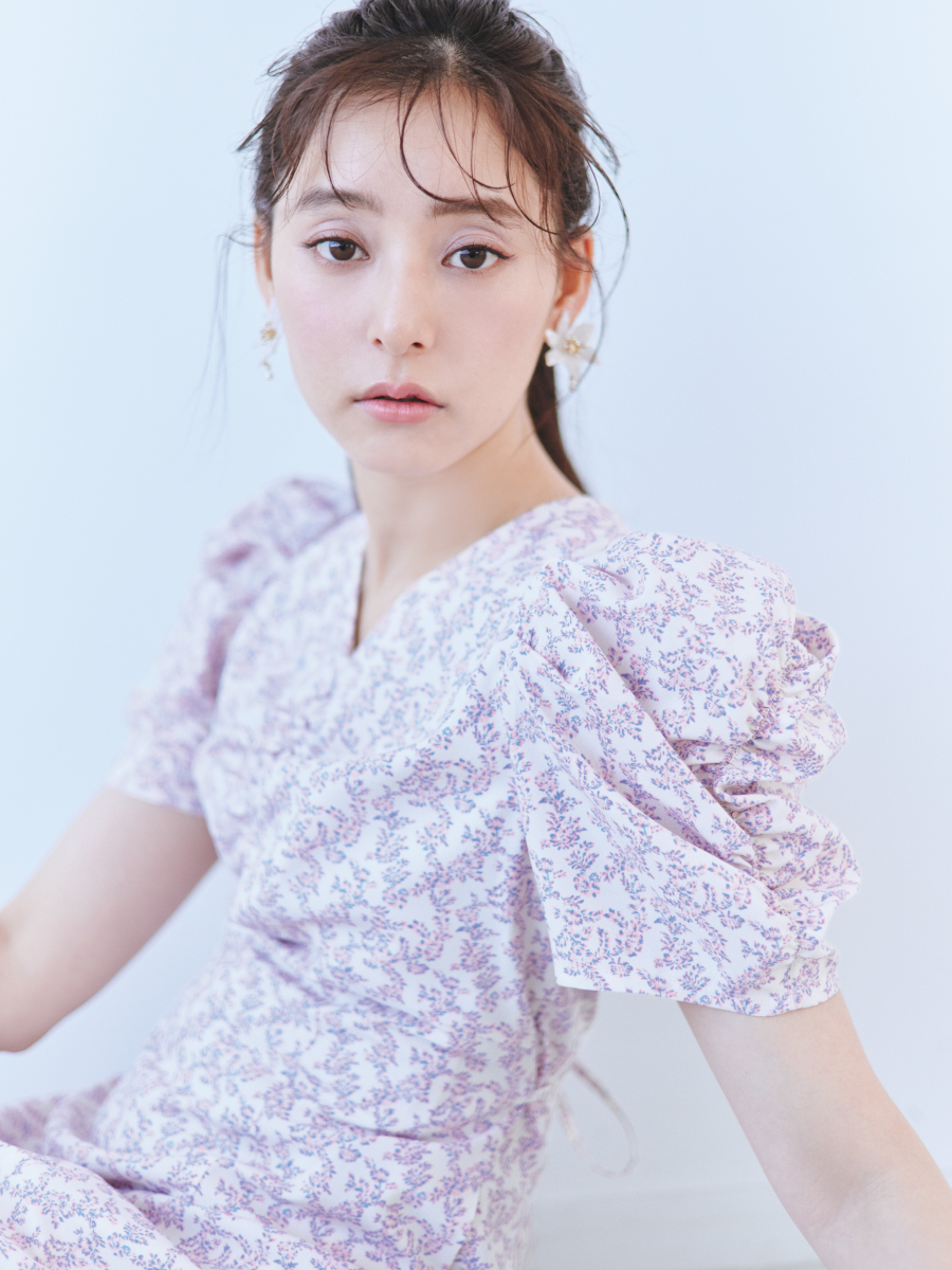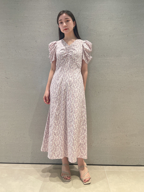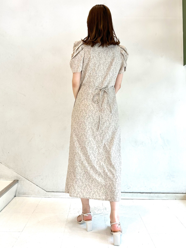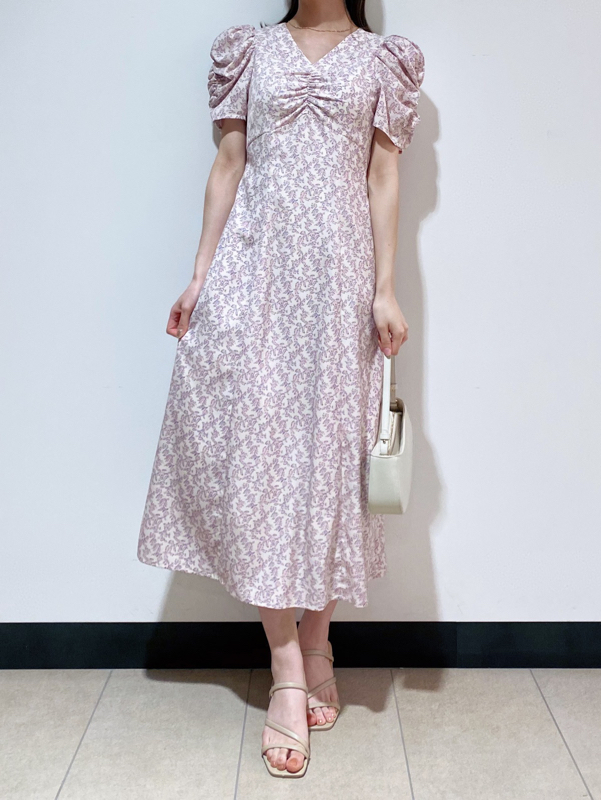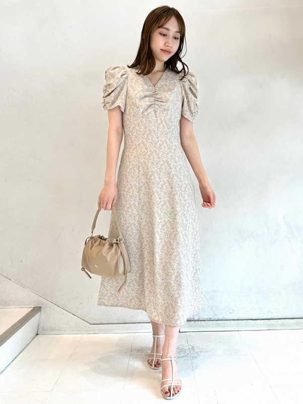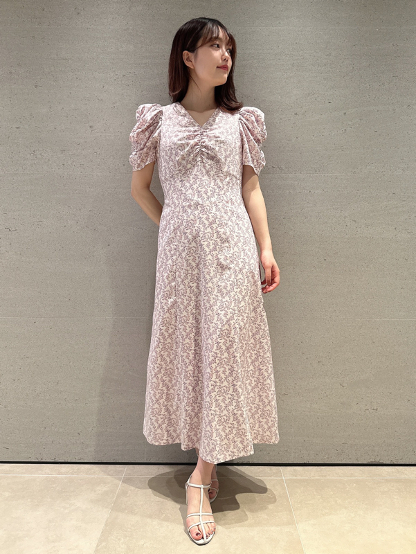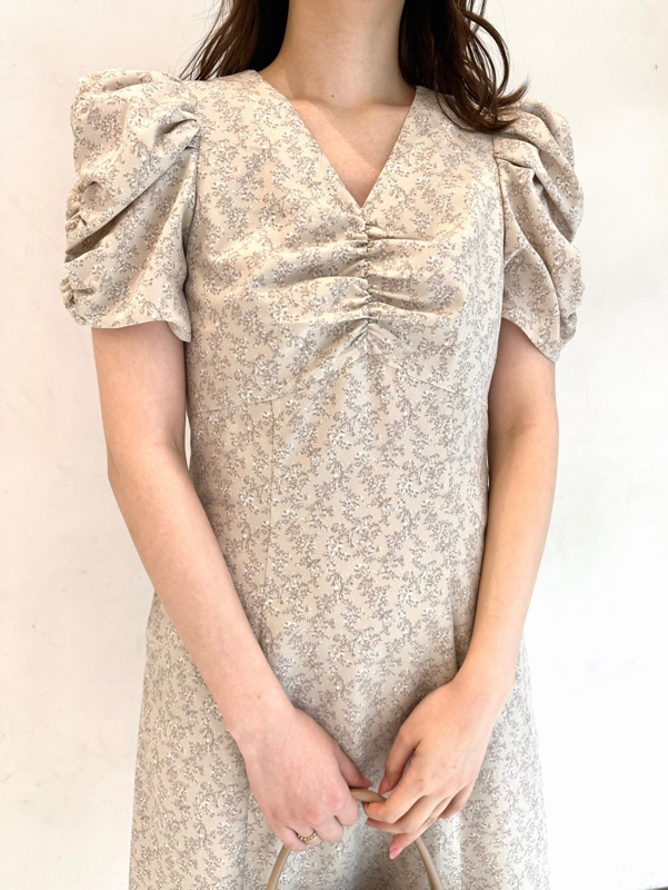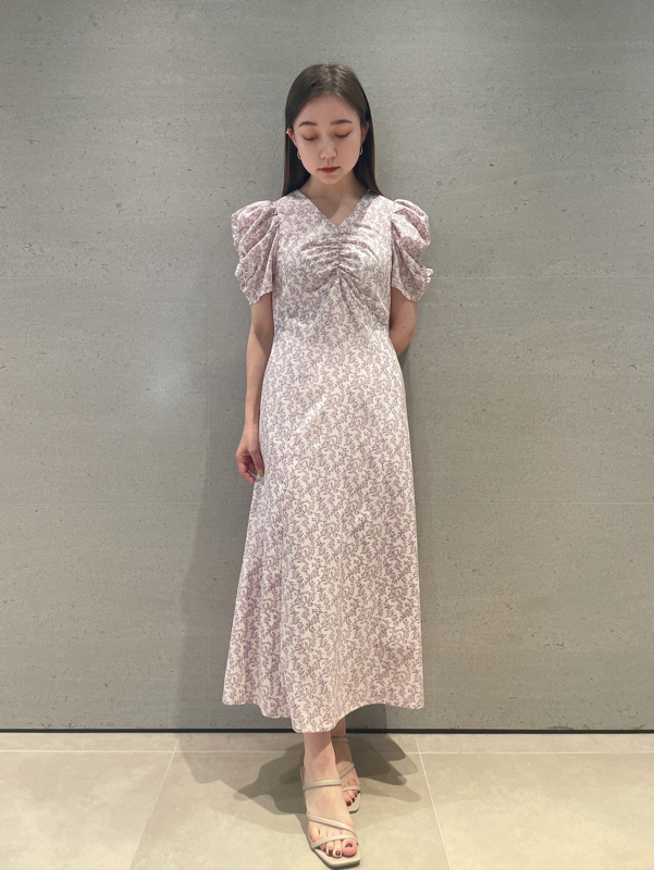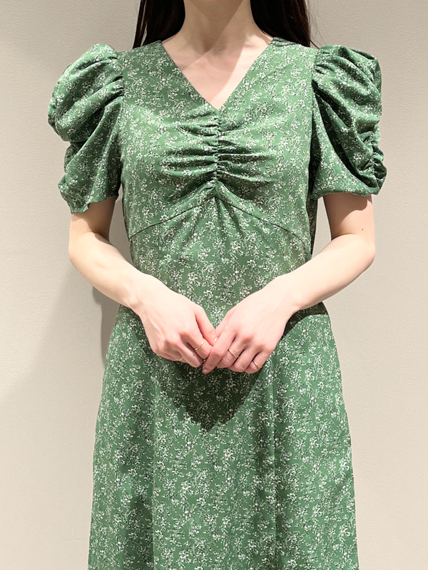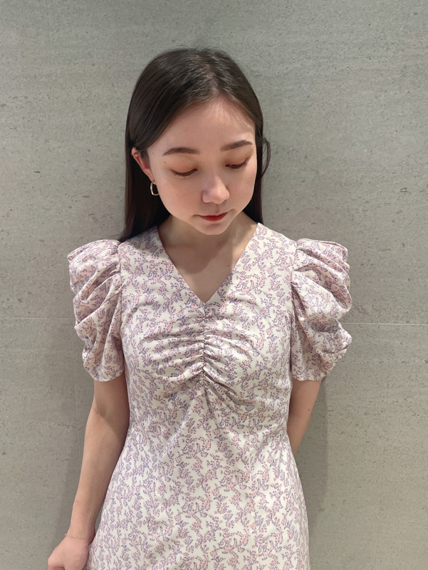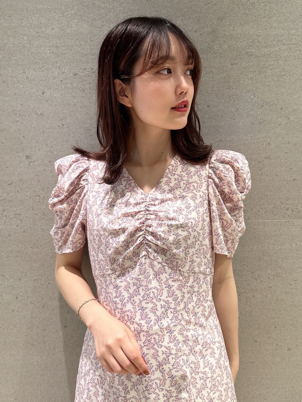 飽きの来ない小花のオリジナルプリントがスタイリングにシーズンムードをもたらすワンピース。胸元と袖に施されたギャザーで女性らしく華やかな表情に。身体のラインが美しく見えるよう、胸下の切り替えと縦パネルで仕上げています。バックウエストには華奢なリボンをあしらい、後ろ姿まで抜かりなし。