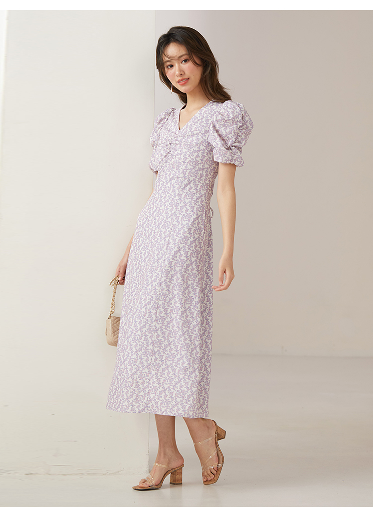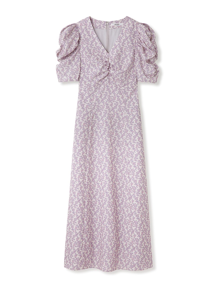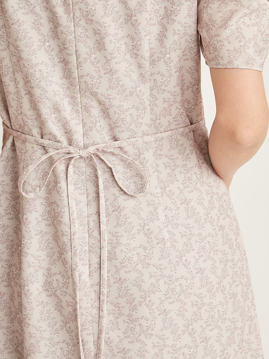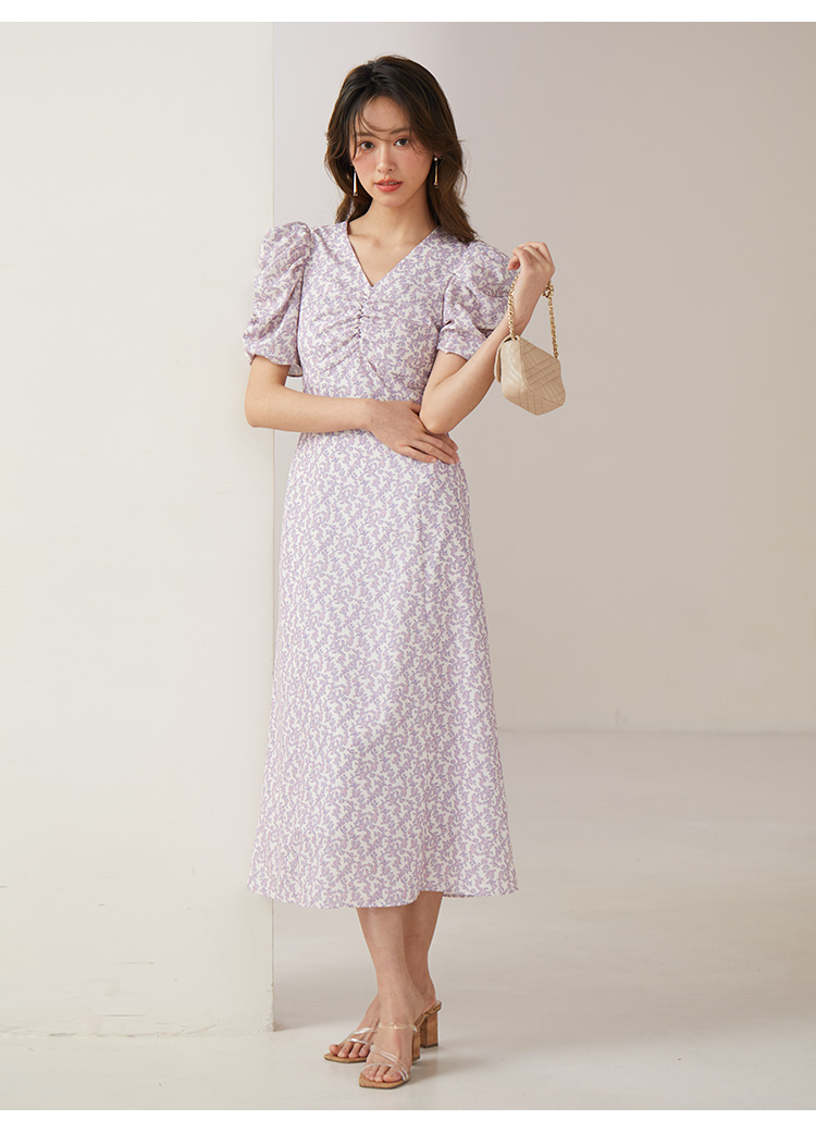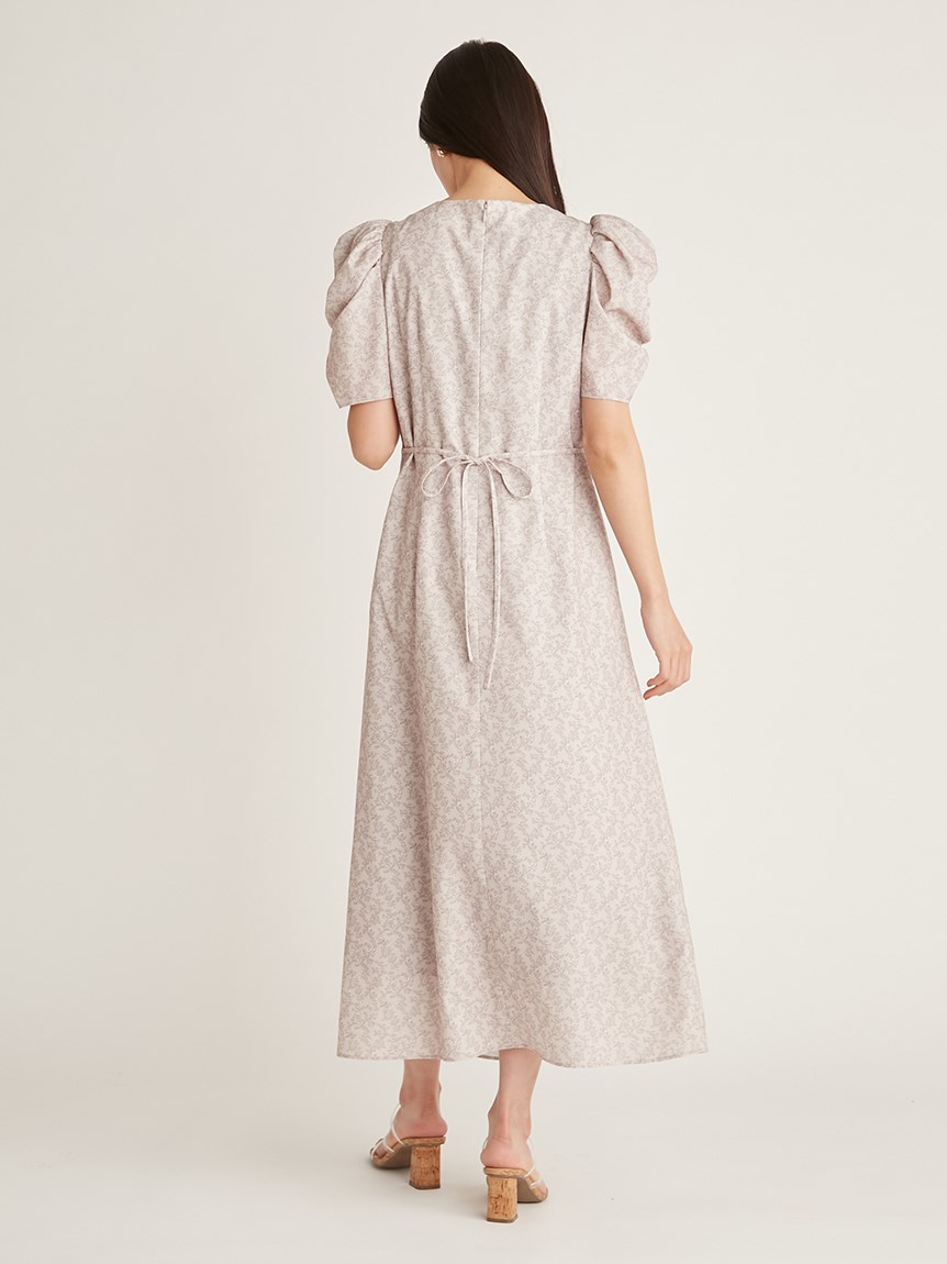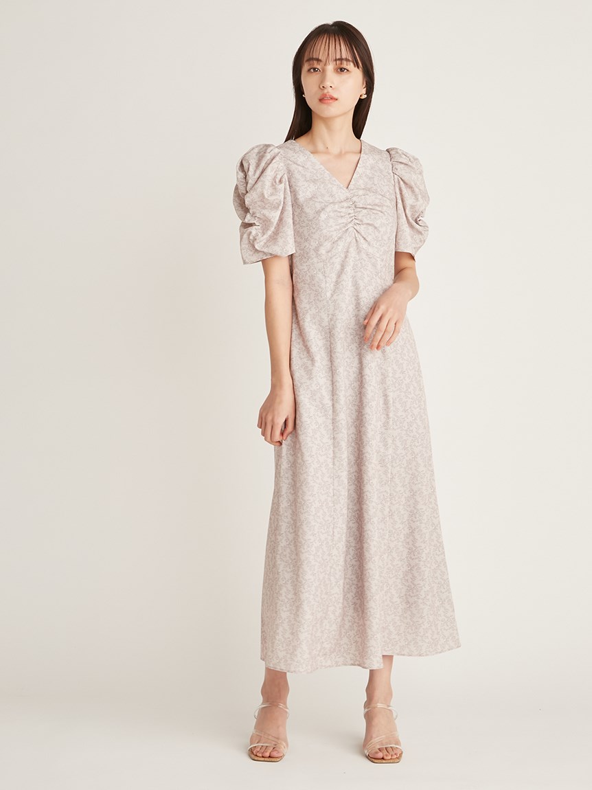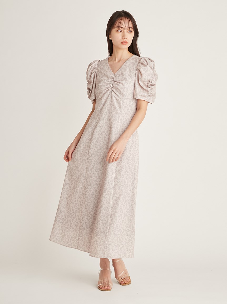 飽きの来ない小花のオリジナルプリントがスタイリングにシーズンムードをもたらすワンピース。胸元と袖に施されたギャザーで女性らしく華やかな表情に。身体のラインが美しく見えるよう、胸下の切り替えと縦パネルで仕上げています。バックウエストには華奢なリボンをあしらい、後ろ姿まで抜かりなし。