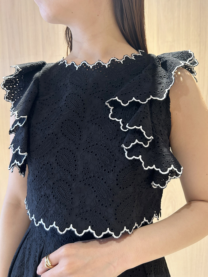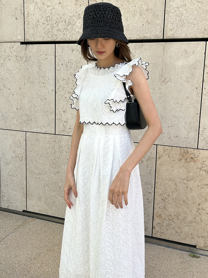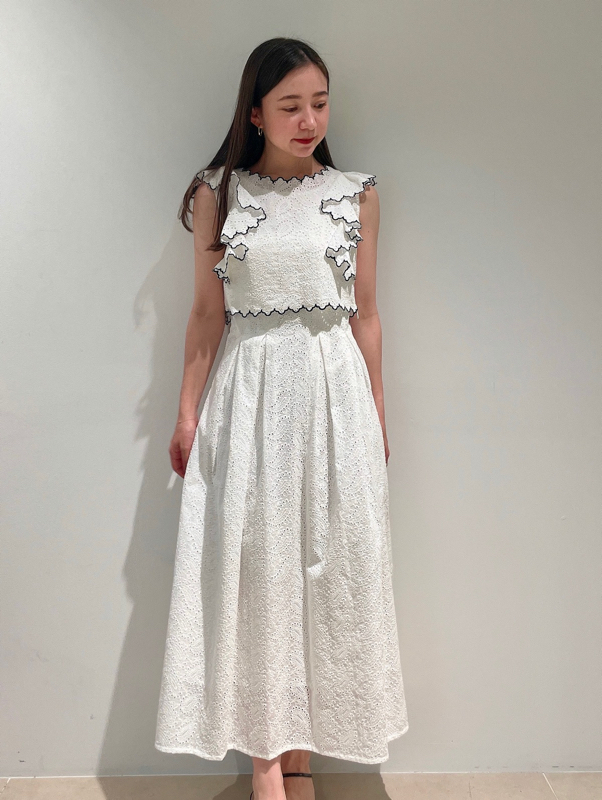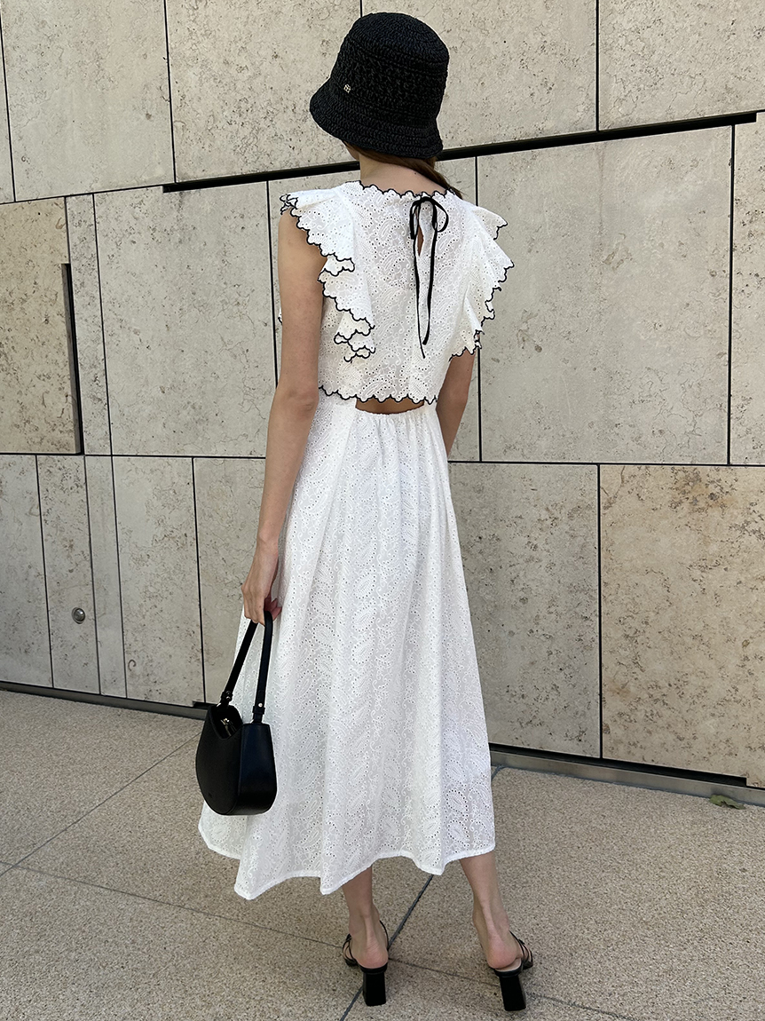 【スカラップ状のアウトラインが印象的なカットワークレースワンピース】