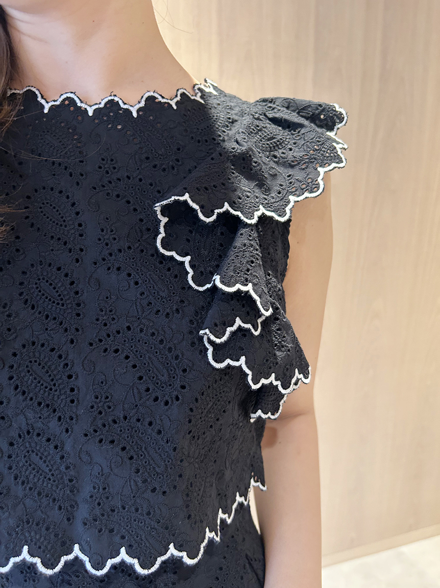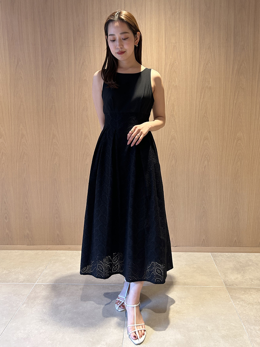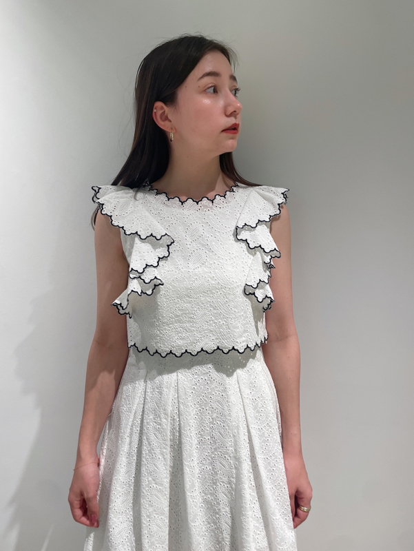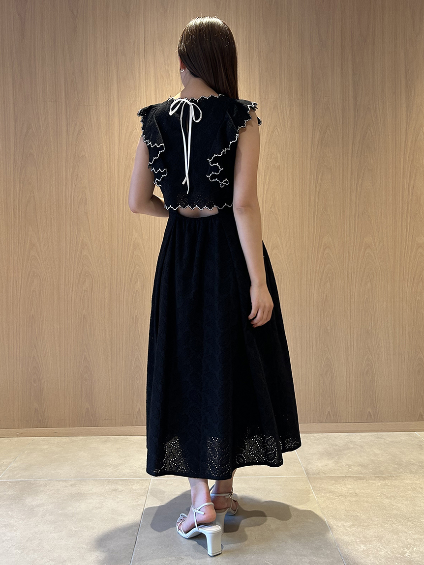 【スカラップ状のアウトラインが印象的なカットワークレースワンピース】