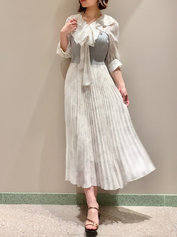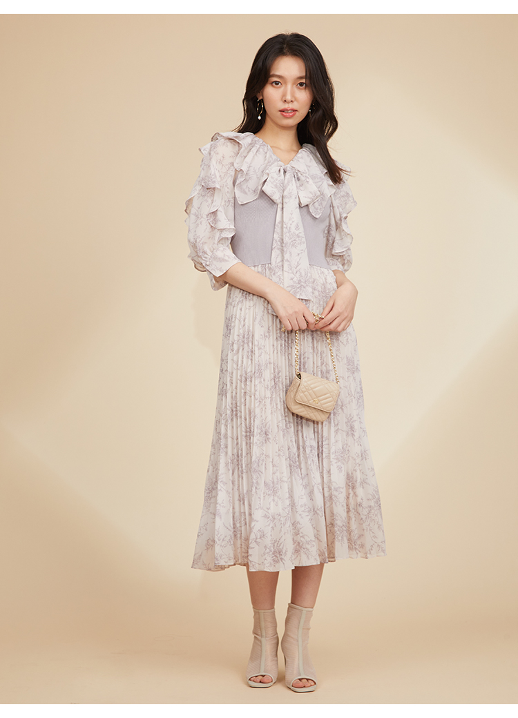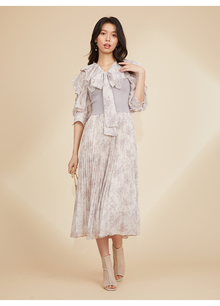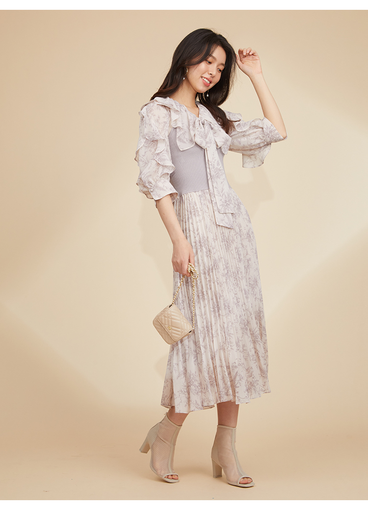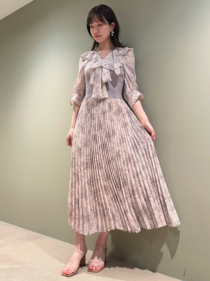 【他にはないドッキングデザインが目を引くプリントワンピース】
