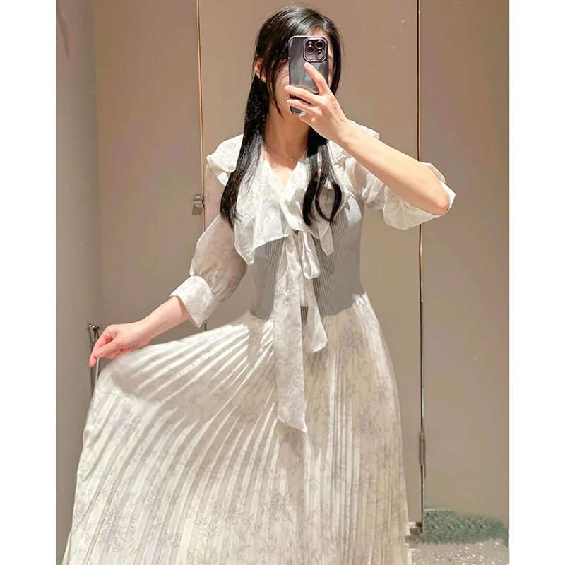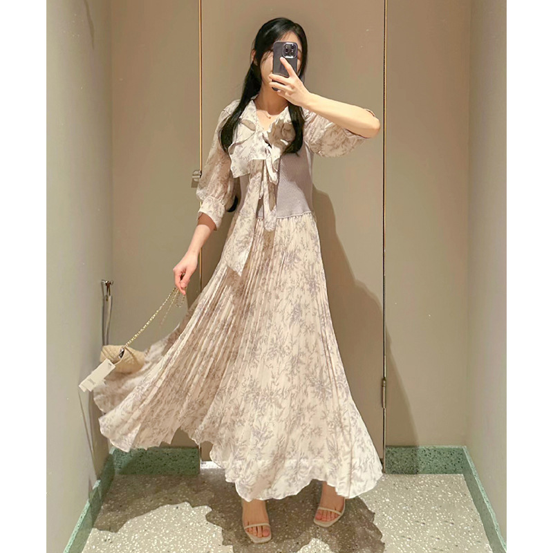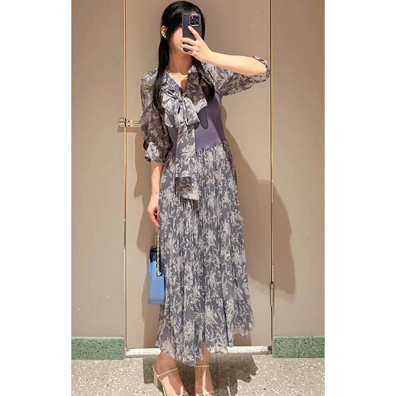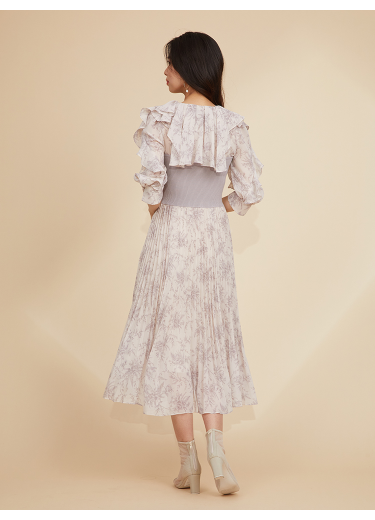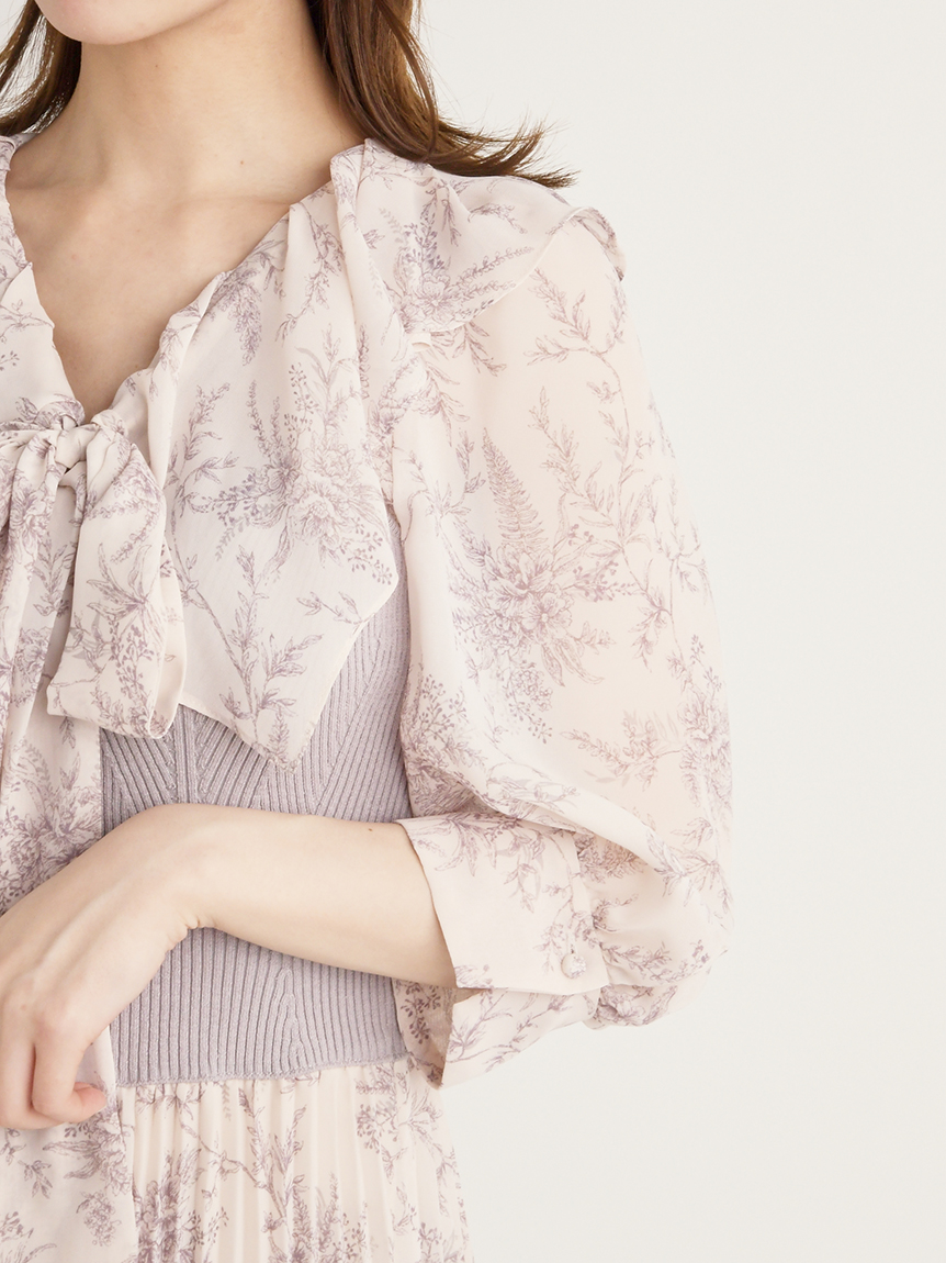 【他にはないドッキングデザインが目を引くプリントワンピース】