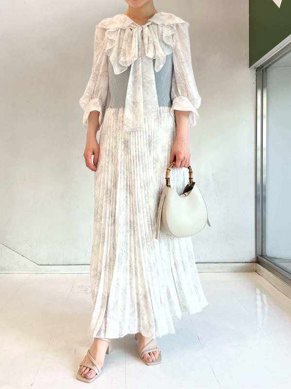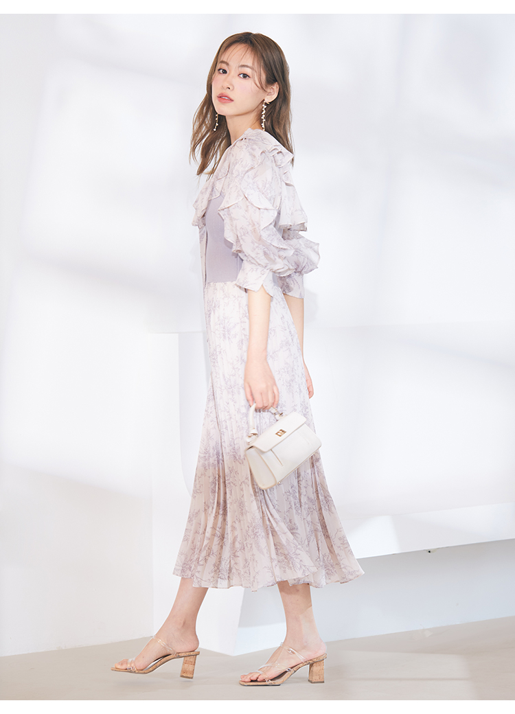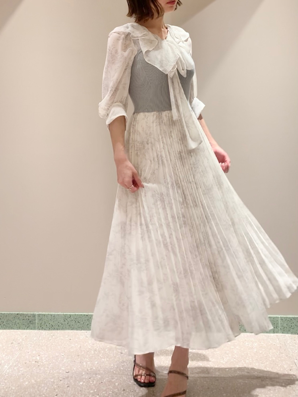 ベアトップをレイヤードしているかのような、今までありそうで無かったドッキングワンピース。ベアやフレアカラーでトレンド感満載なデザインの上に、胸まで入ったリブが上身頃をスッキリと見せ、一気にスタイルUPを叶えてくれます。柄は「SNIDEL」オリジナルの華やかなプリントで、綺麗な配色も魅力。インナーはドッキングしているので着用も簡単にでき、着心地の良さも配慮しています。