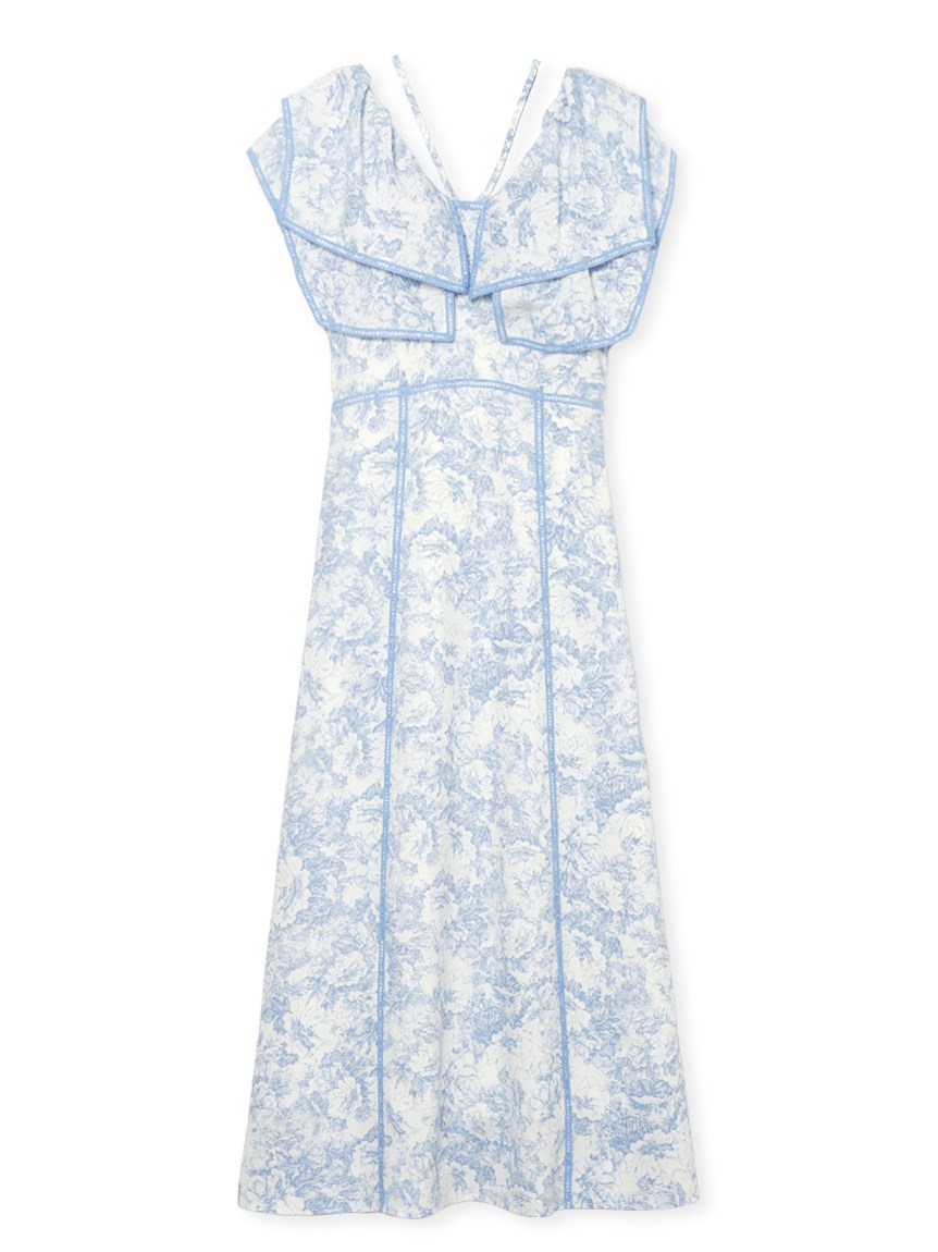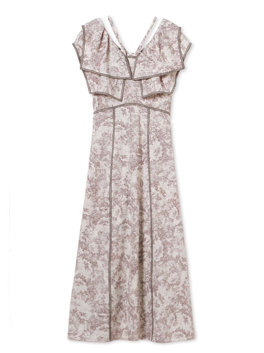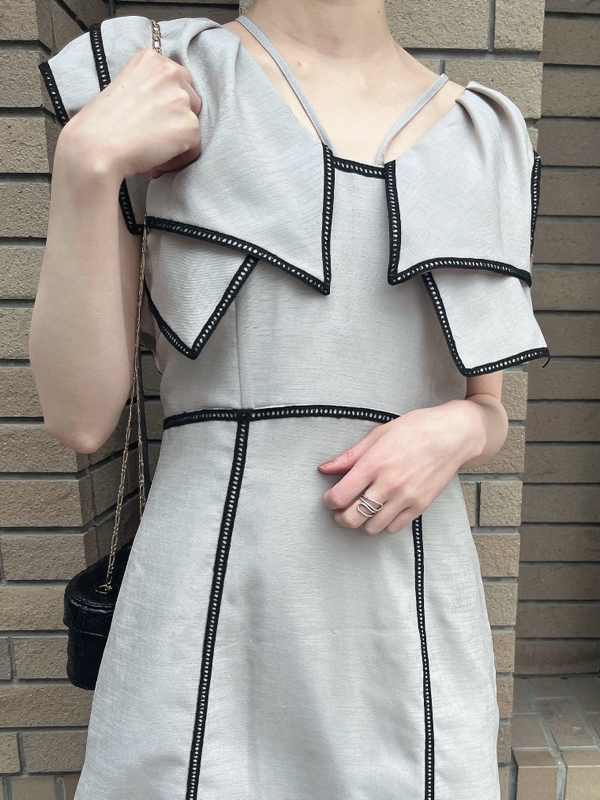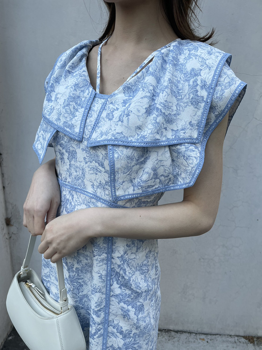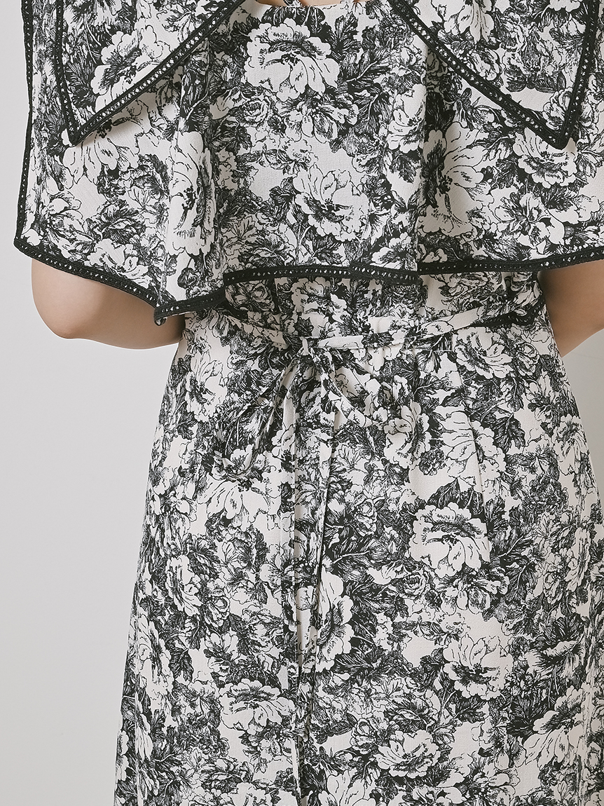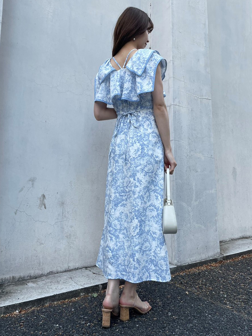 人気のラッフルカラーワンピースがアップグレードして登場。フリルのバランスは今季らしく、更にレースのパイピングや大胆な花柄で華やかに仕上げました。袖は横から腕が見える幅を少し狭くしたことで、気になるパーツをカバー。ハイウエストの切り替えから裾に向かって緩やかに広がるAラインシルエットで、スタイルアップ効果は抜群です。