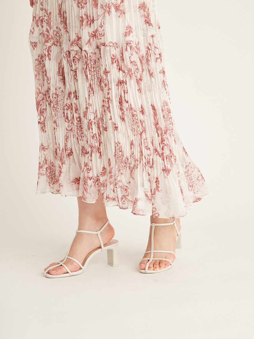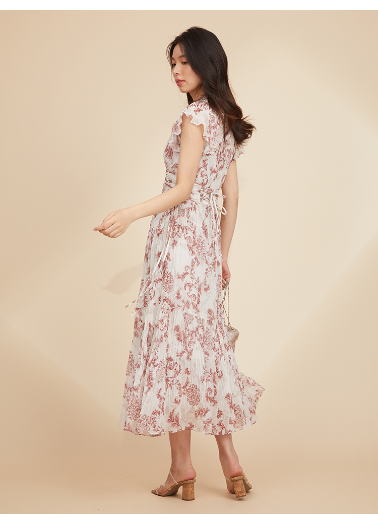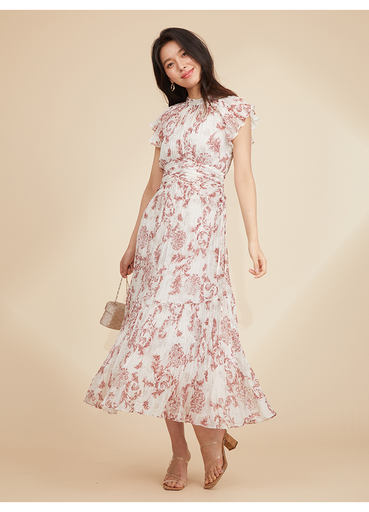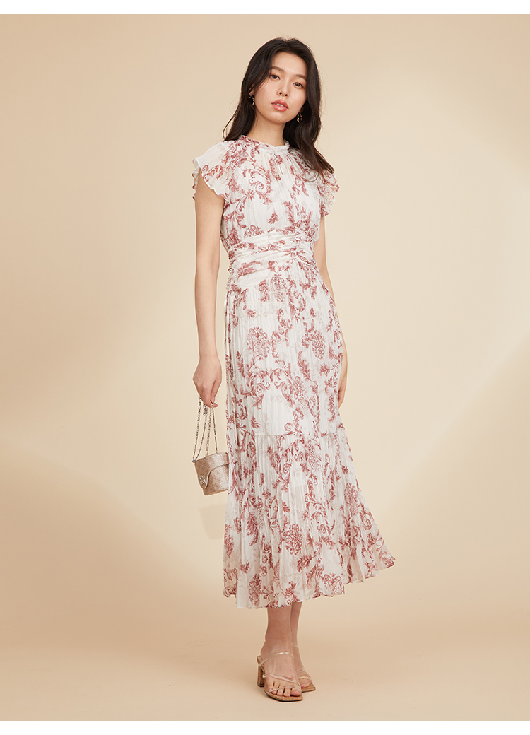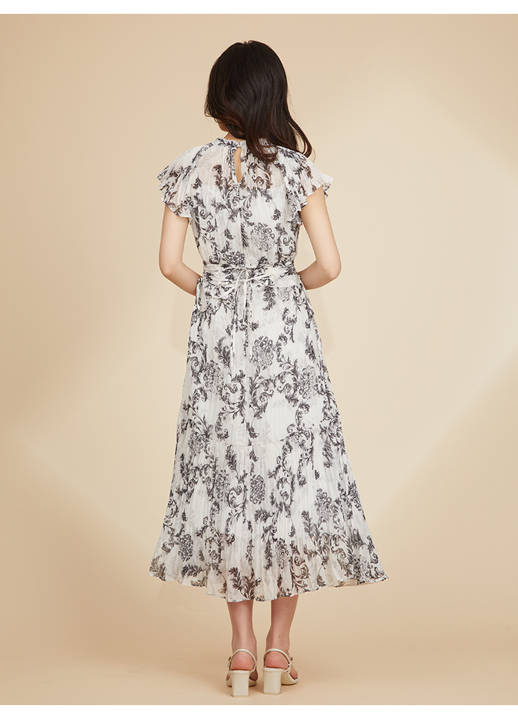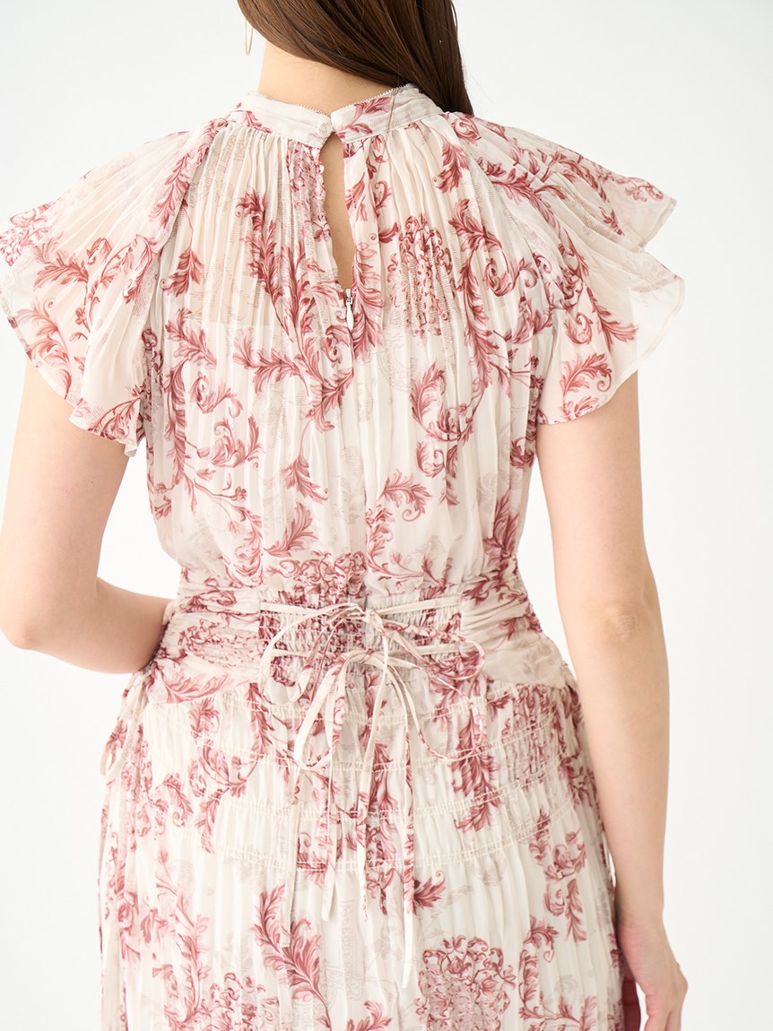 オリジナルのオーナメントプリントを浮かべた、春ムード薫るワンピース。全体にプリーツをふんだんに施すことで華やかさが高まり、主役級の存在感を放つ1着です。ウエスト部分にコルセットのような切り替えを入れ、スタイルアップ効果の高いメリハリシルエットに。バックウエストのレースアップで絞り方を調節でき、シルエットの変化も楽しめます。