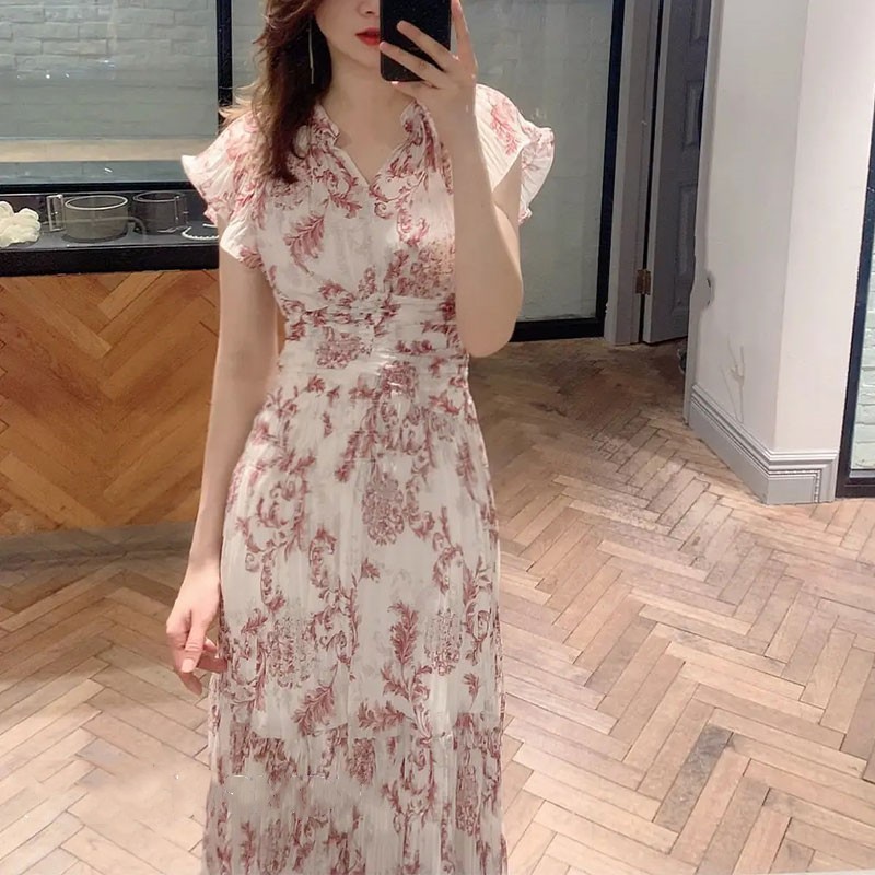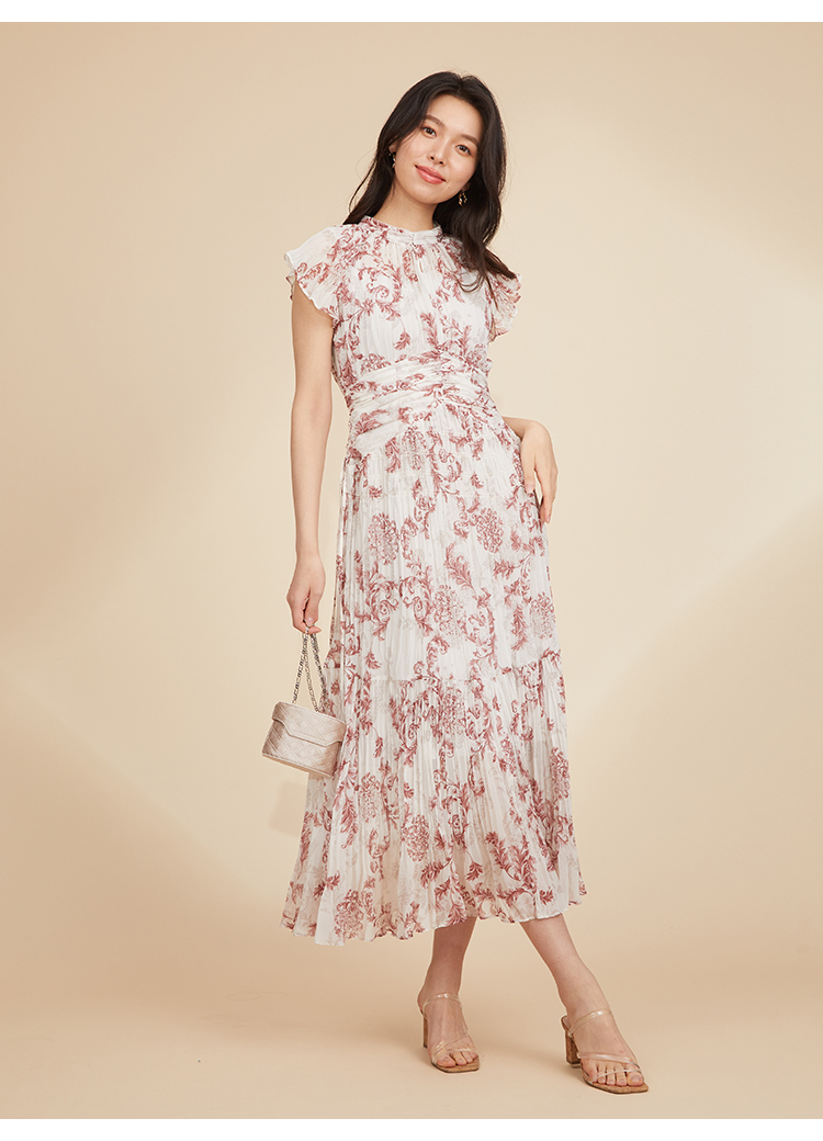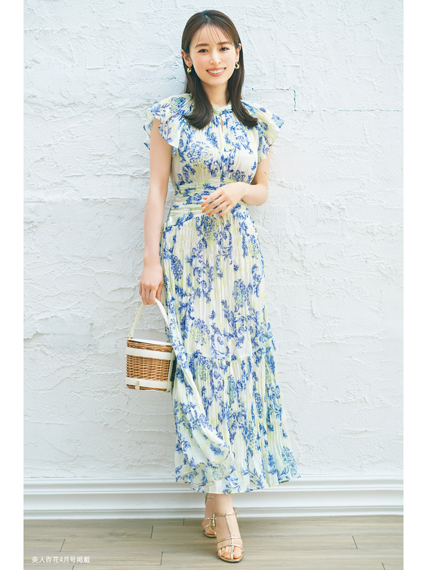 【1枚で華やかに決まるオーナメントプリントのワンピース】