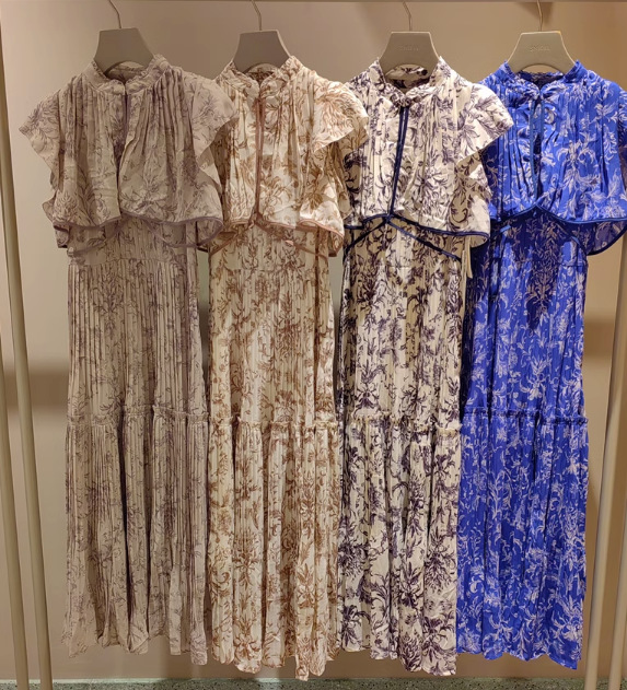 軽くしなやかな風合いの生地にオリジナルプリントを施しました。ピンクベージュ、ラベンダー、ブルー、ネイビーの豊富な4色展開でお届けします。