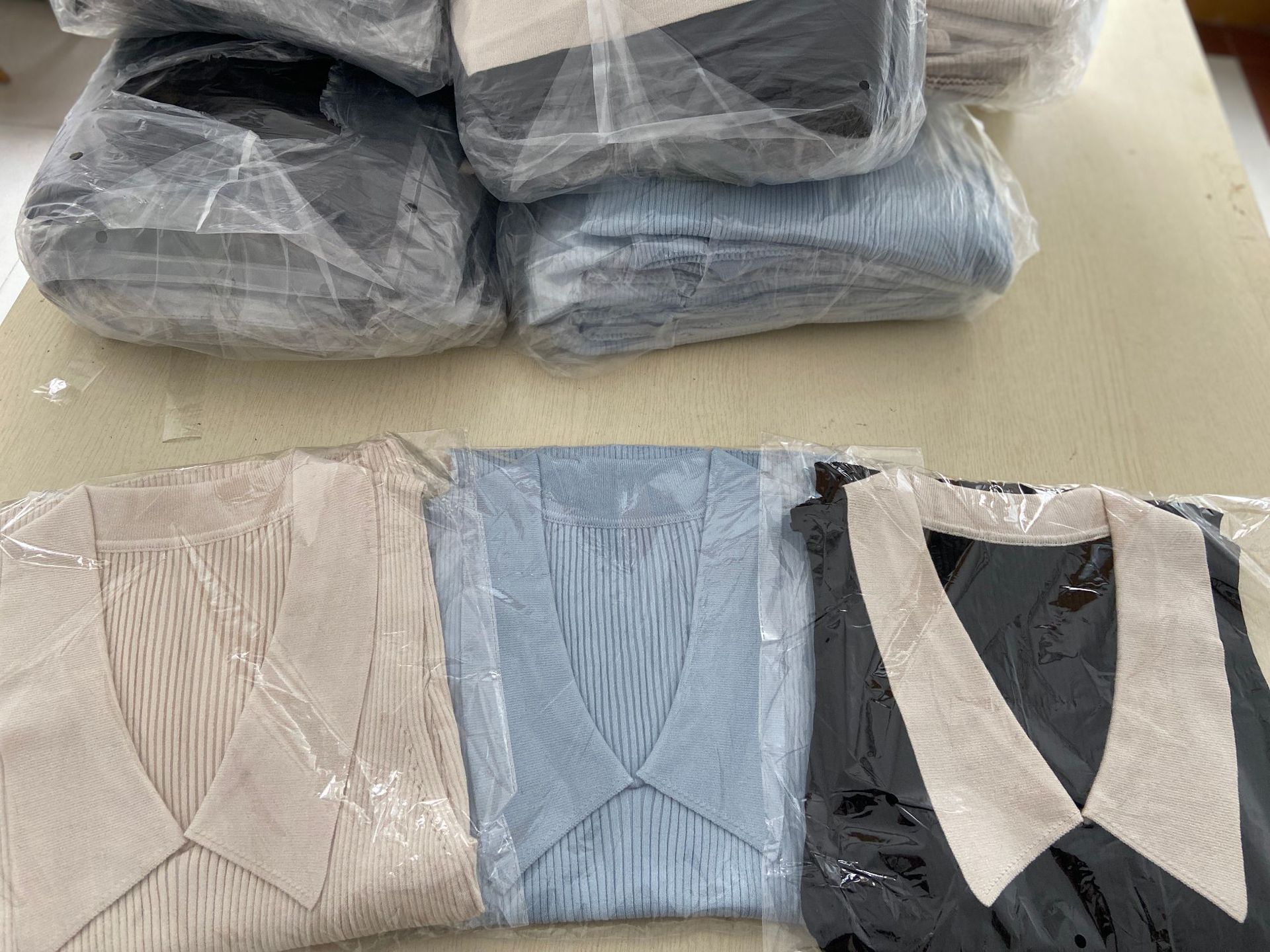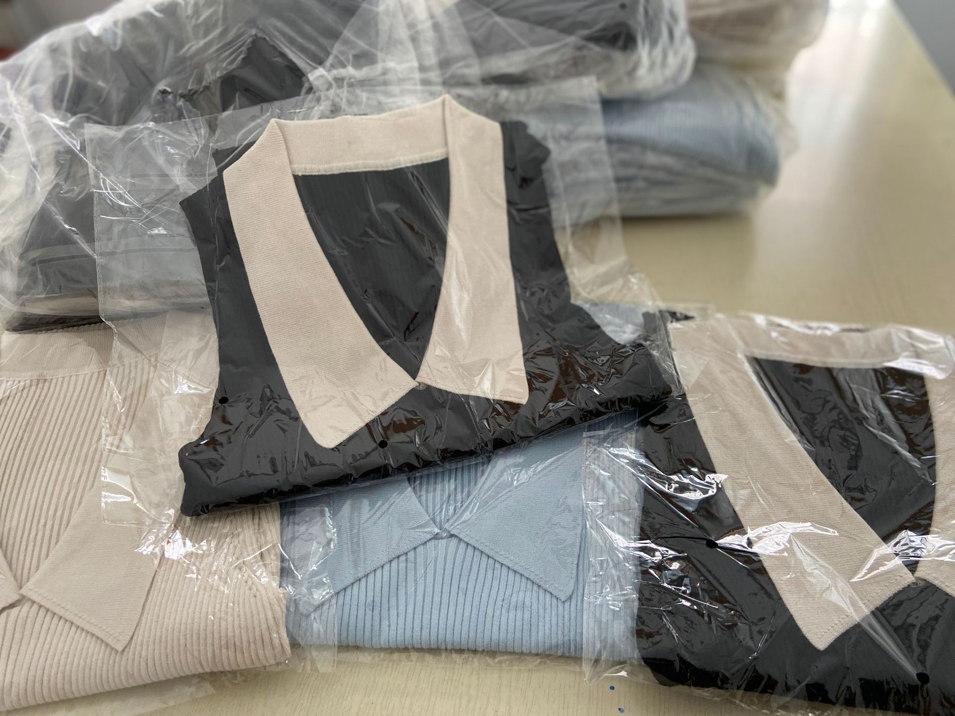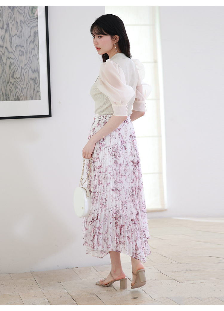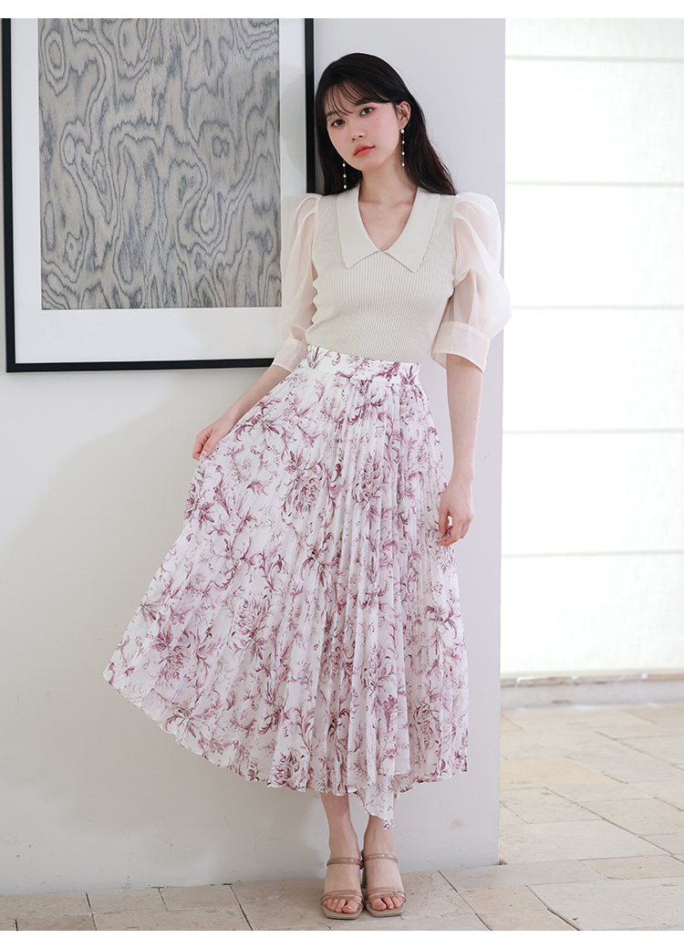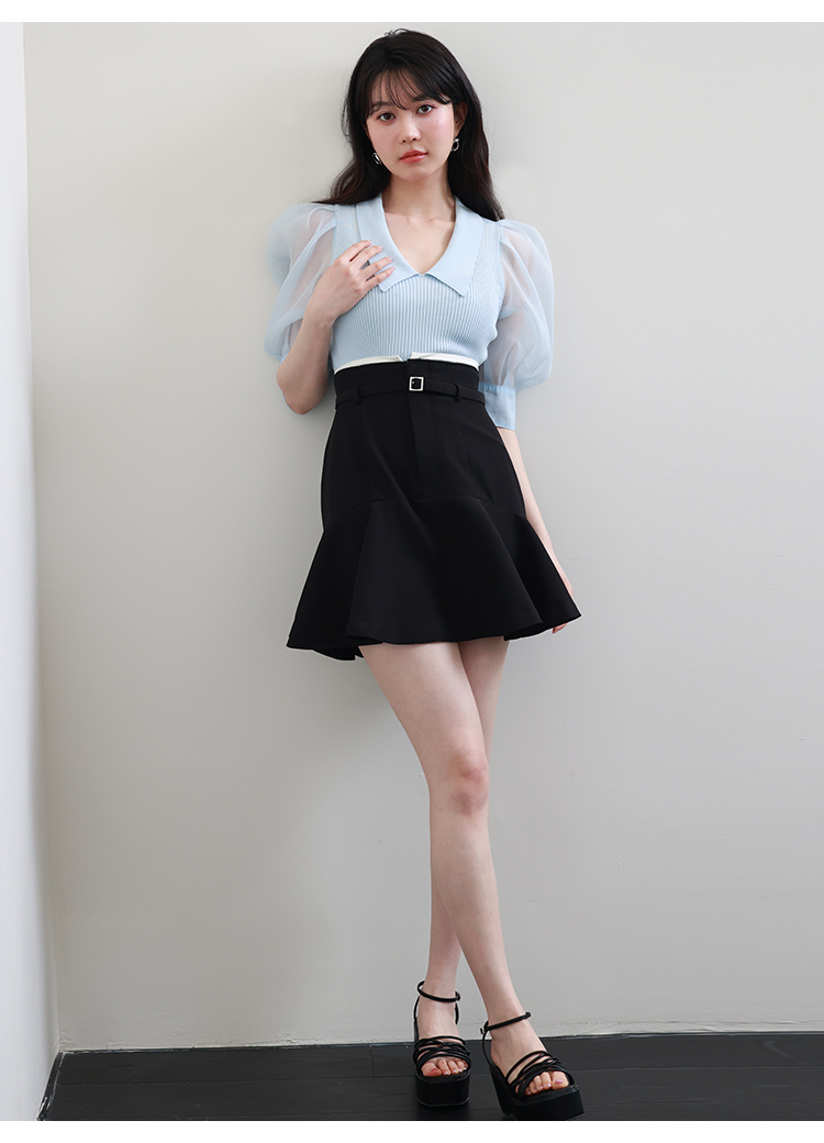 エコレーヨンを用いたサステナブルなニットとシアー素材を組み合わせました。優しい色合いのアイボリー、バイカラーでモード感のあるブラック、春夏らしい爽やかなサックスの3色をご用意。