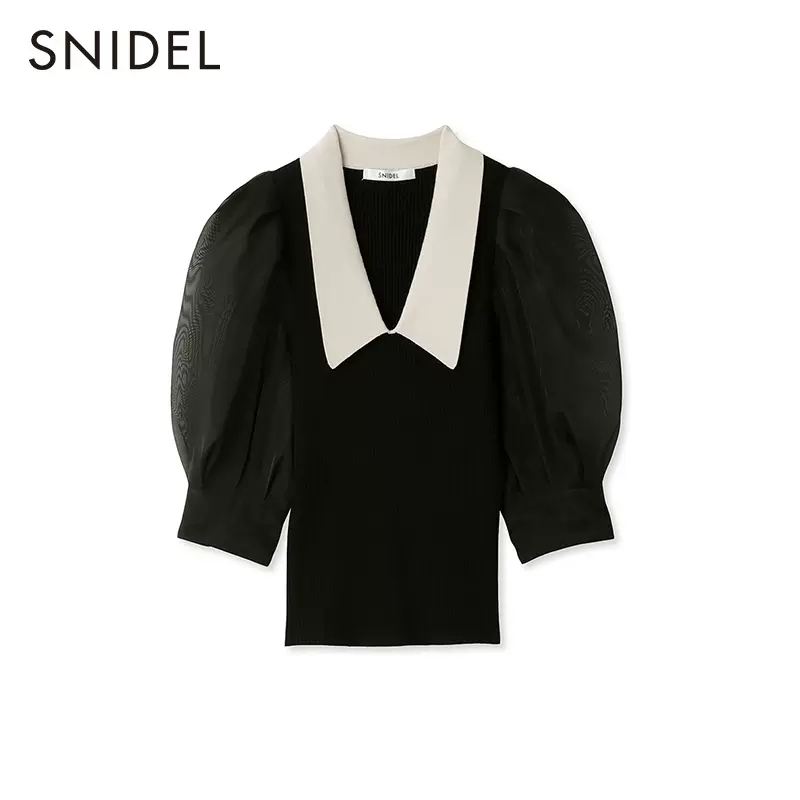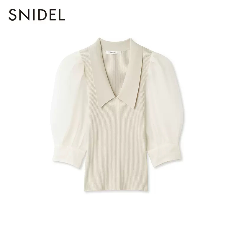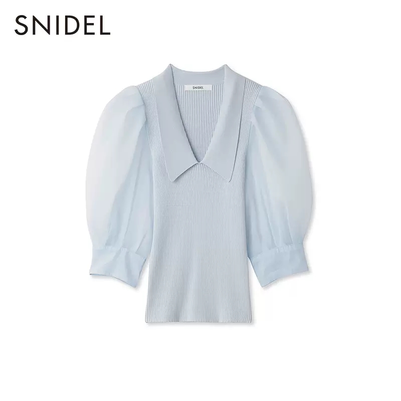 「SNIDEL」定番のカラーニットプルオーバーがアップデート。今季は袖がシアー素材になり春夏らしいデザインに仕上がりました。袖にはタックを効かせ程よいボリューム感で女性らしさをプラス。フィット感のあるタイトシルエットなので合わせるボトムを選ばず、幅広いコーディネートに取り入れられます。