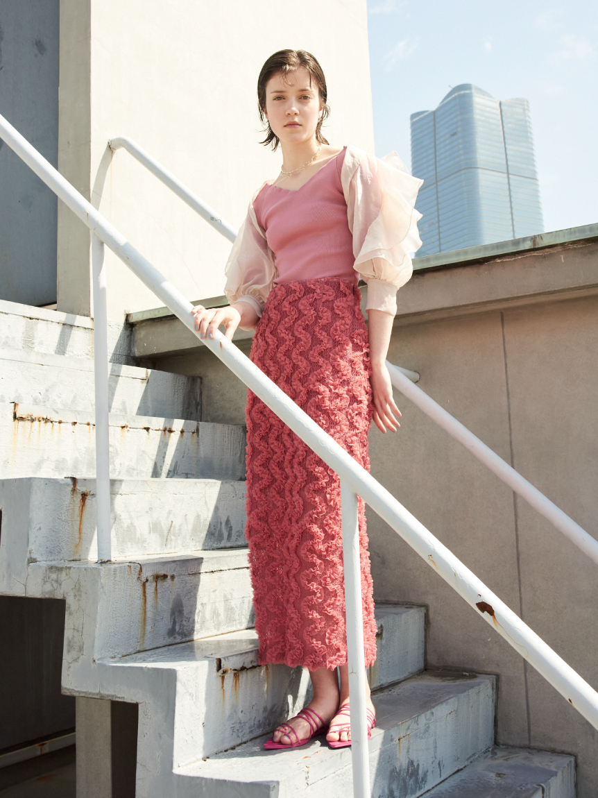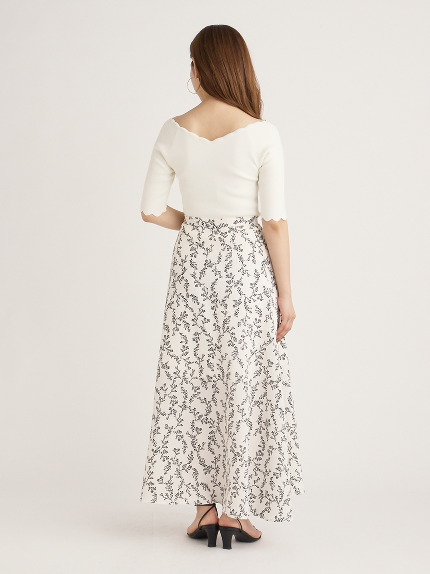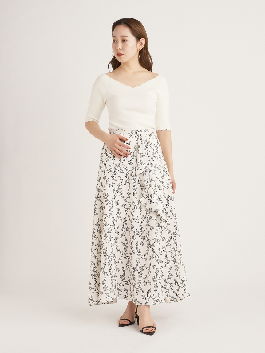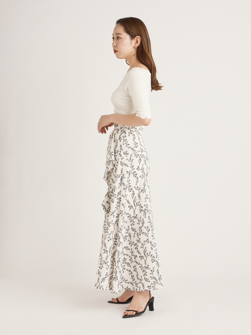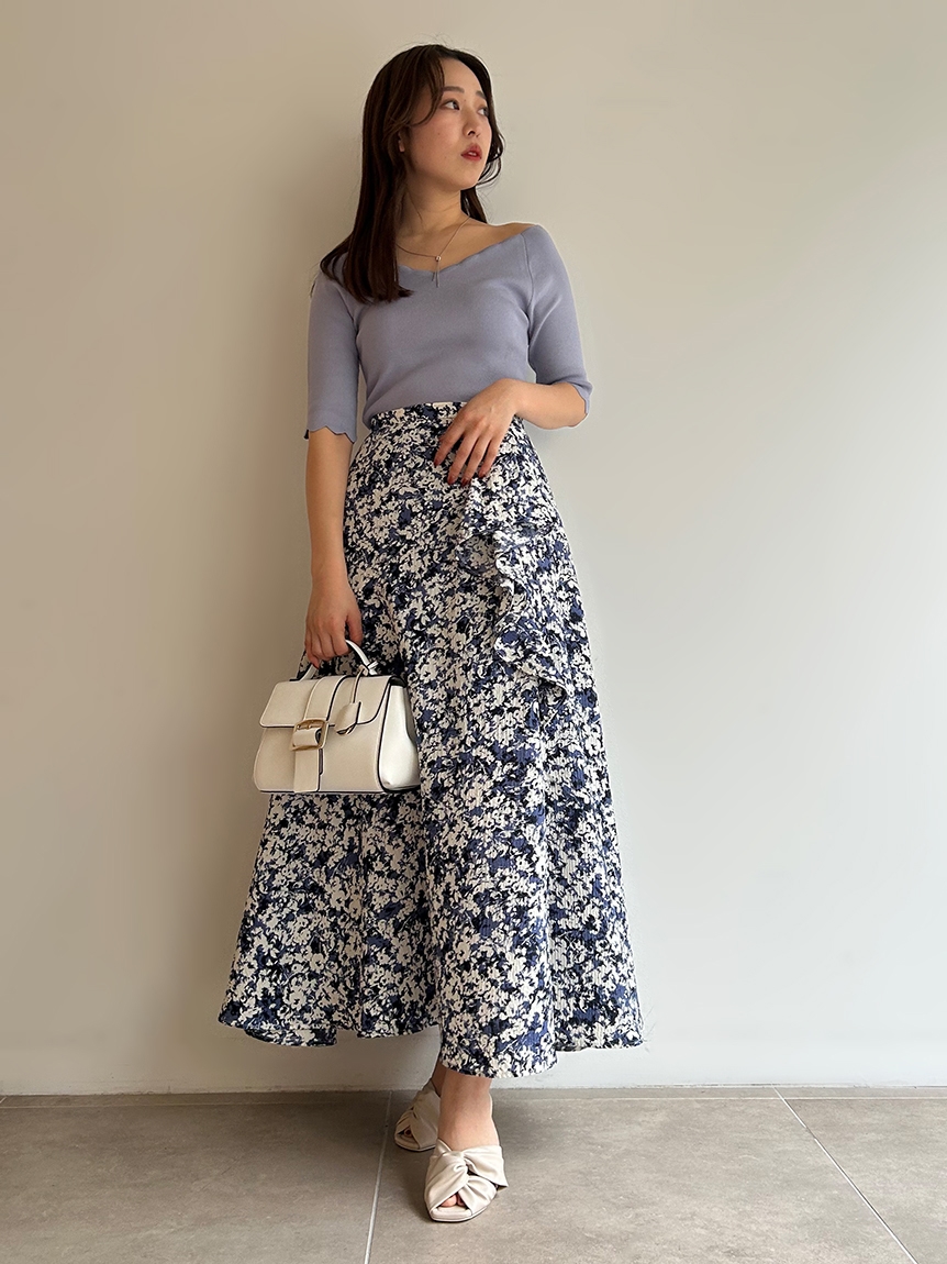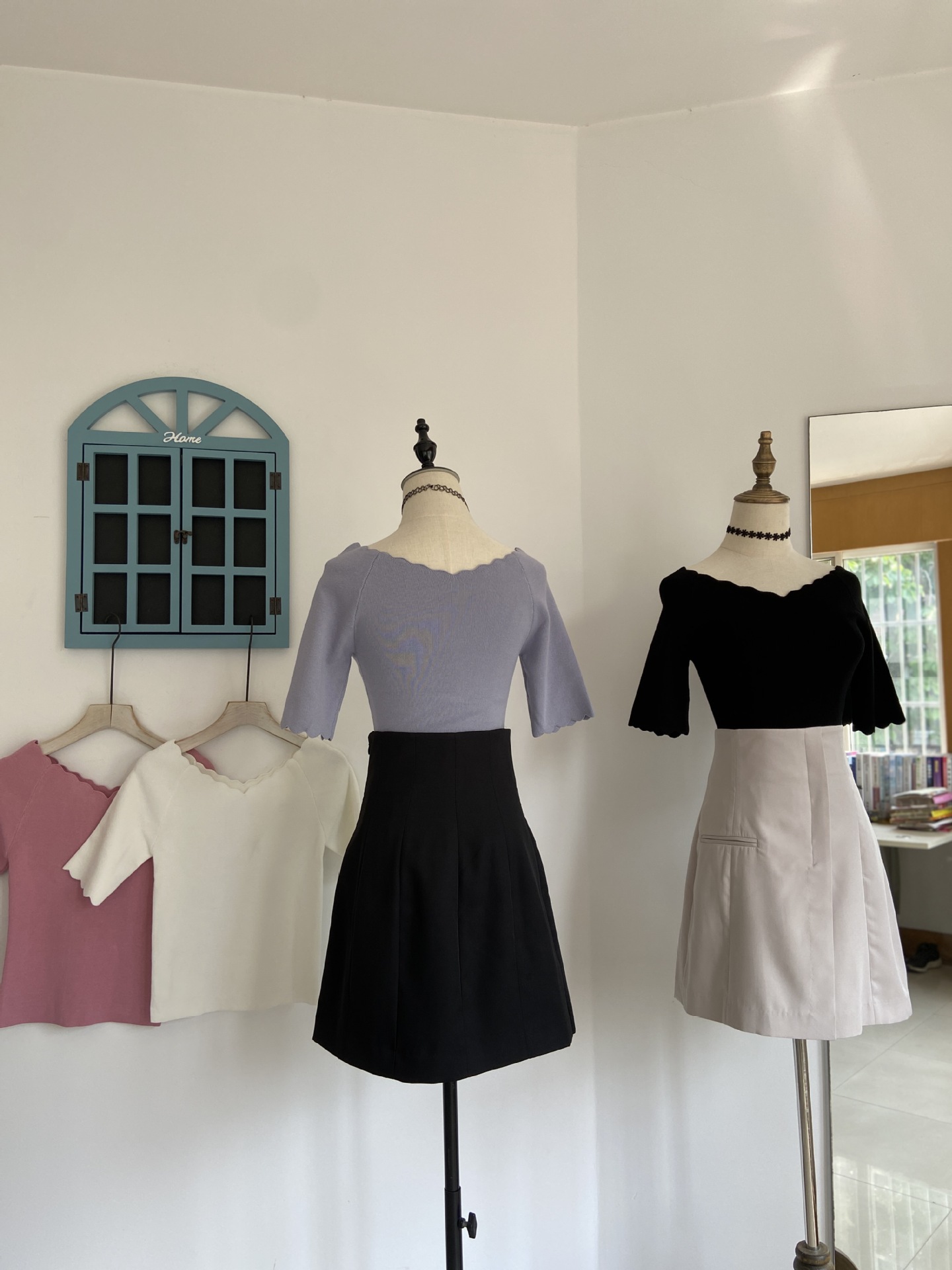 スカラップカットした襟ぐり&袖口が特徴的な、シンプルながらも女性らしさを感じさせるニットトップス。広めに開いたネックラインでヘルシーに肌見せでき、トレンド感をプラスしました。ボディラインを美しく見せるタイトシルエットも◎。スカートからパンツまで幅広いボトムと合わせやすく、着まわし力も抜群です。