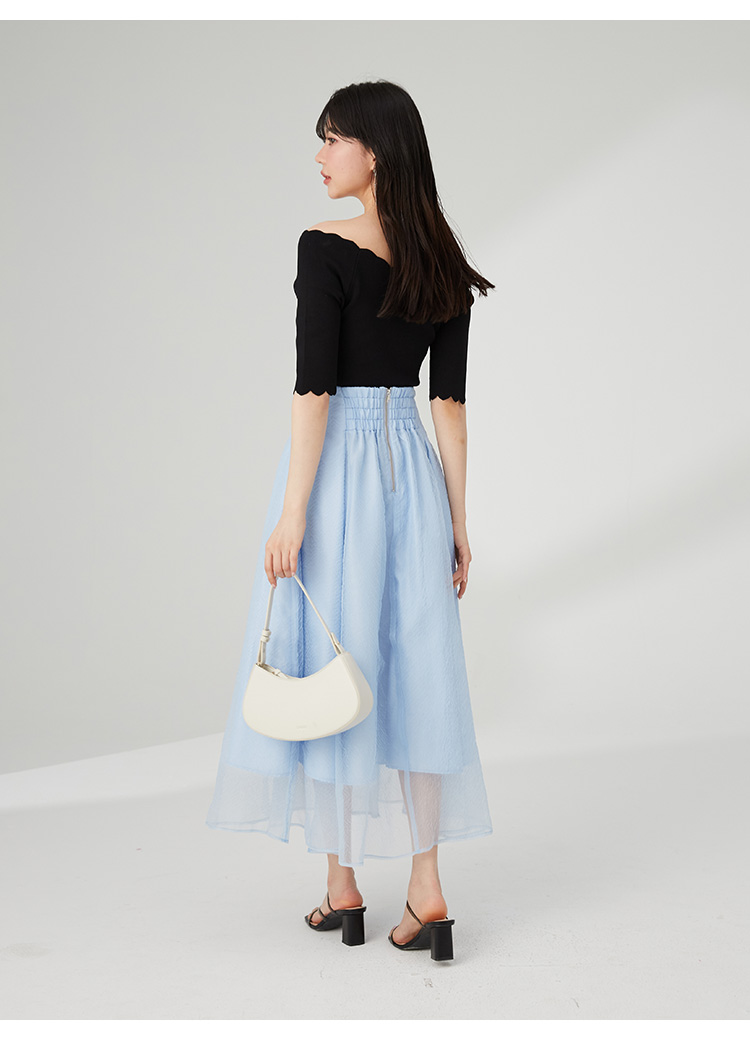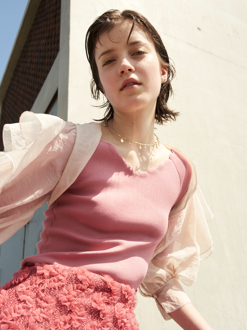 身体のラインを拾いにくい程よい肉感のニット素材を使用。ベーシックカラーのホワイトとブラックに、シーズンコーデにぴったりのピンク、ブルーを加えた豊富なカラー展開でお届けします。