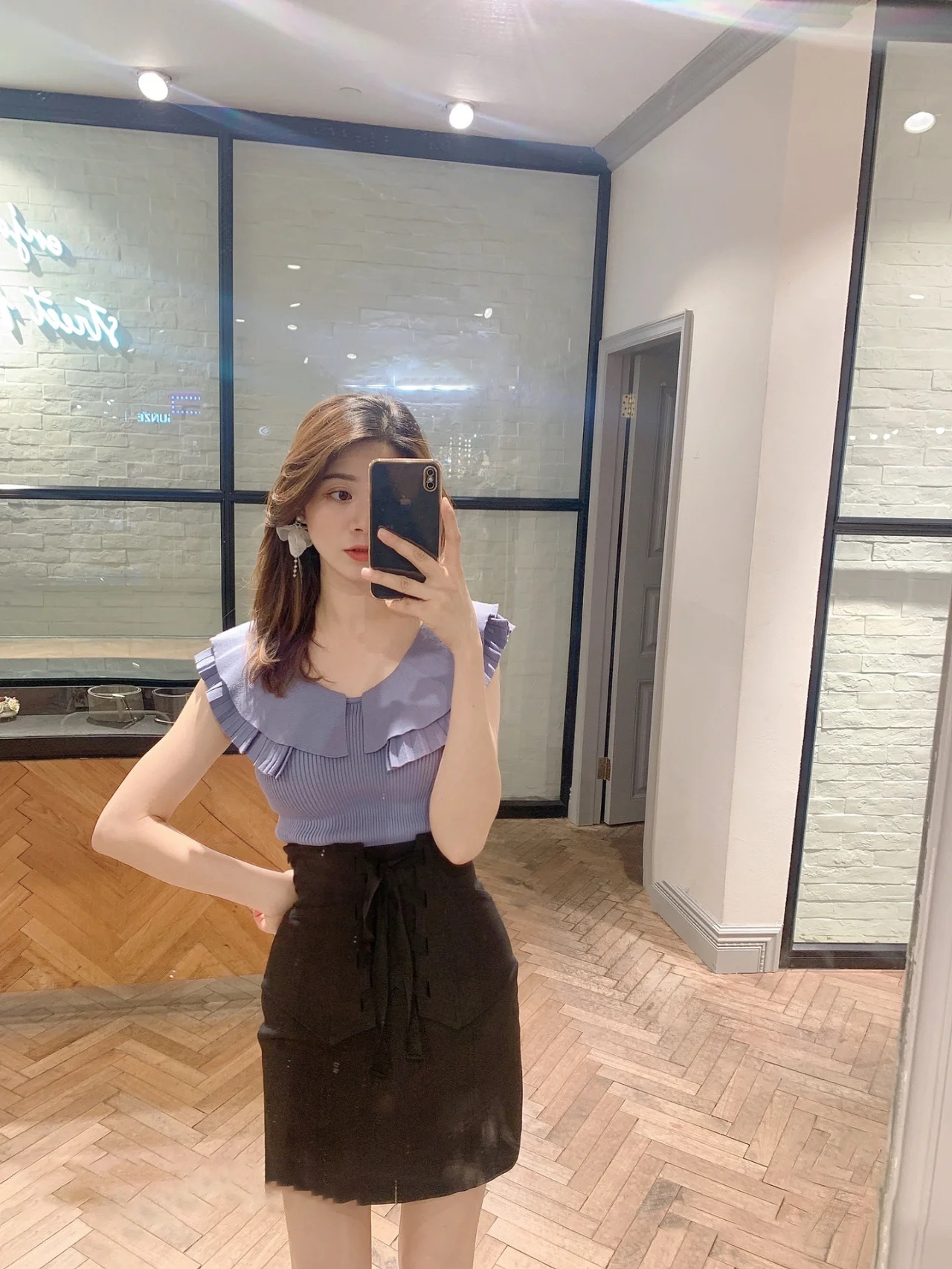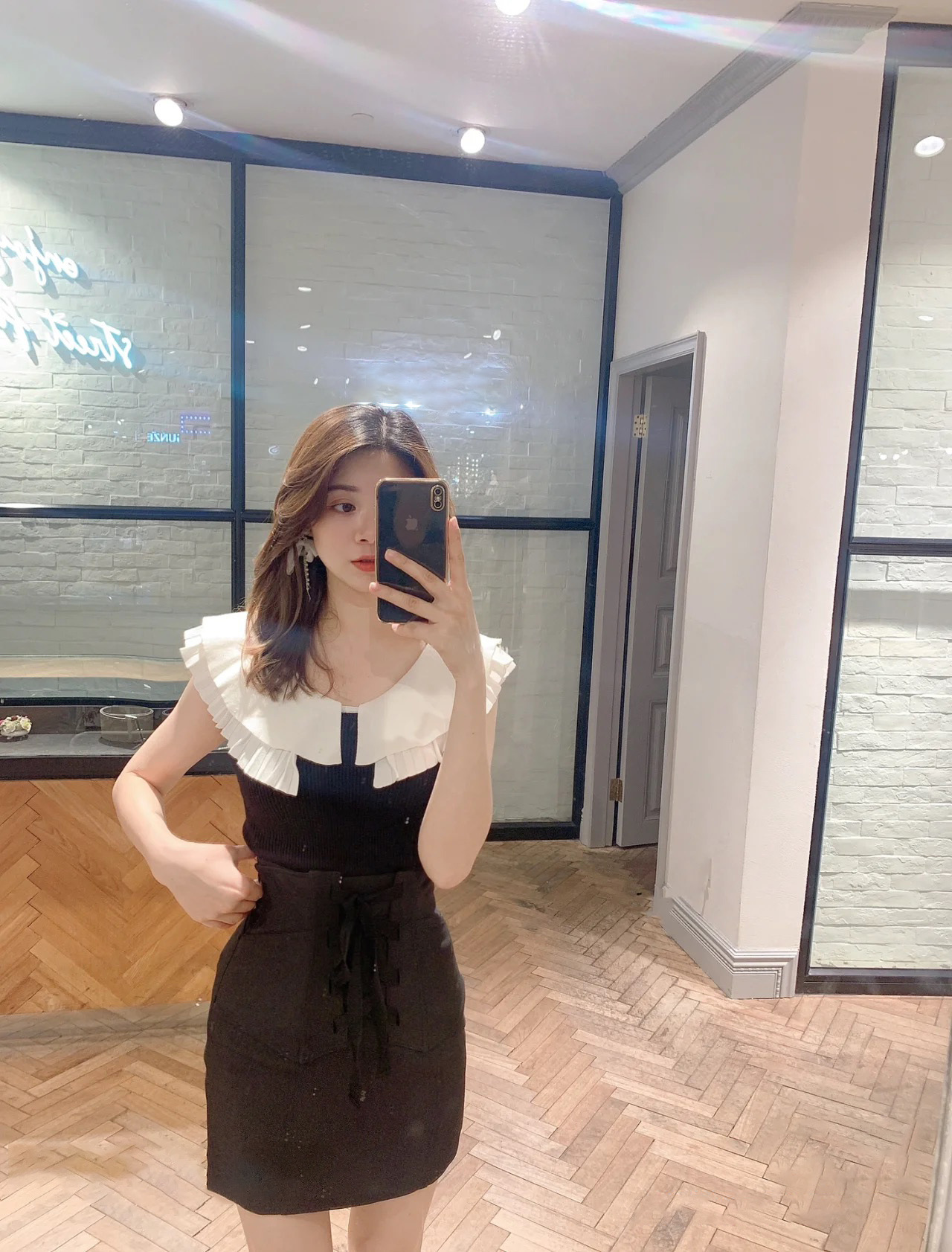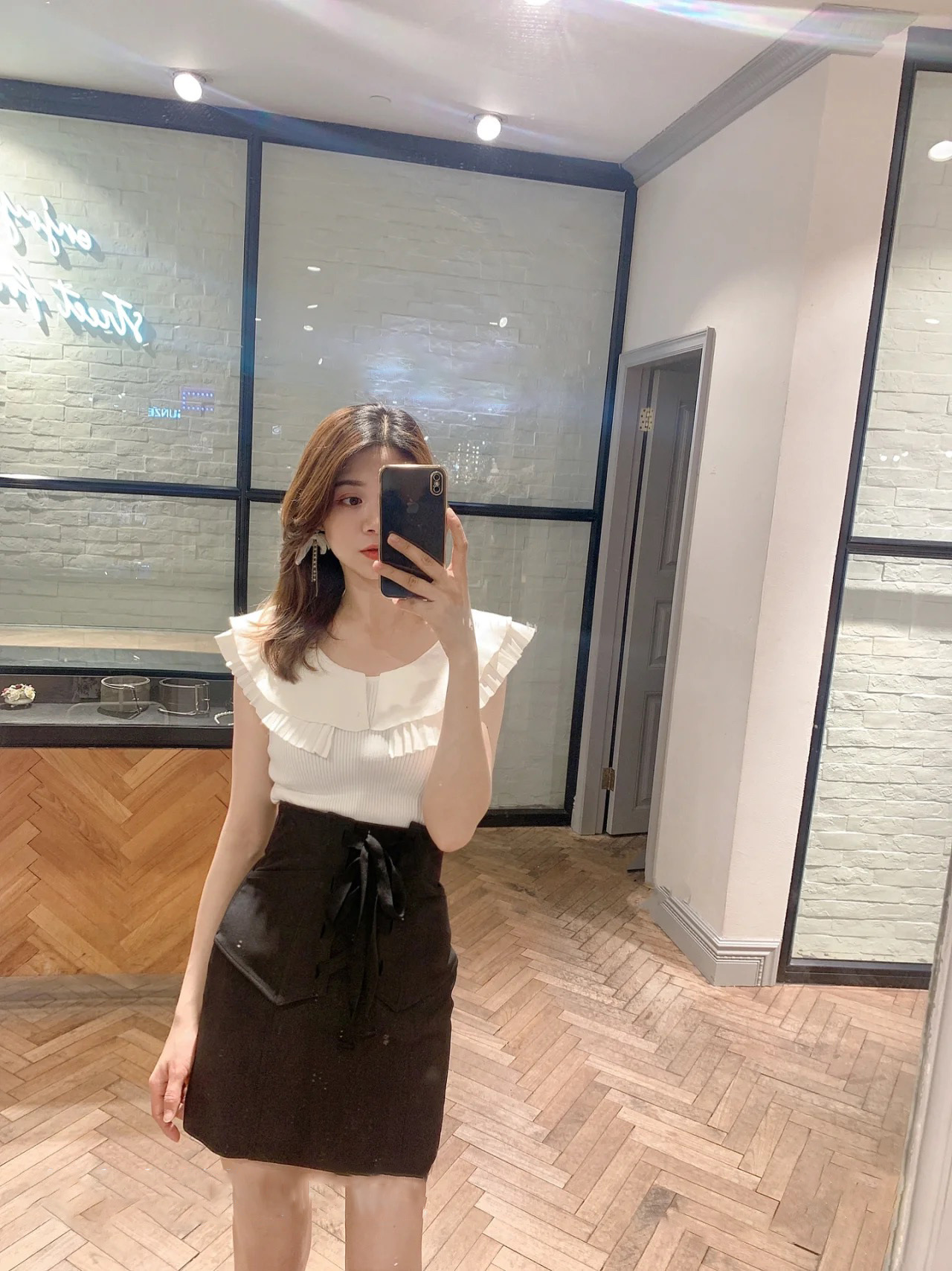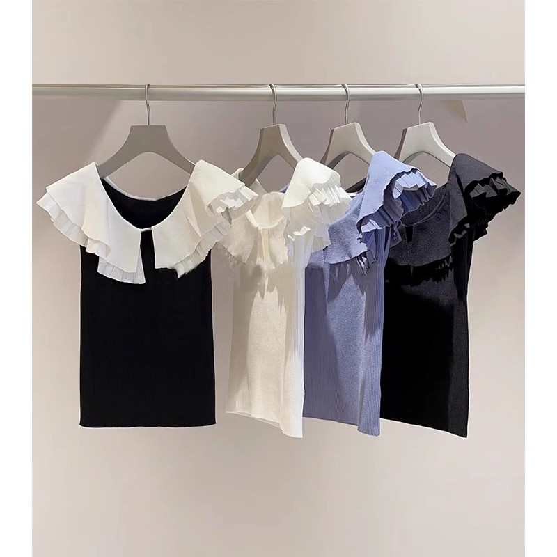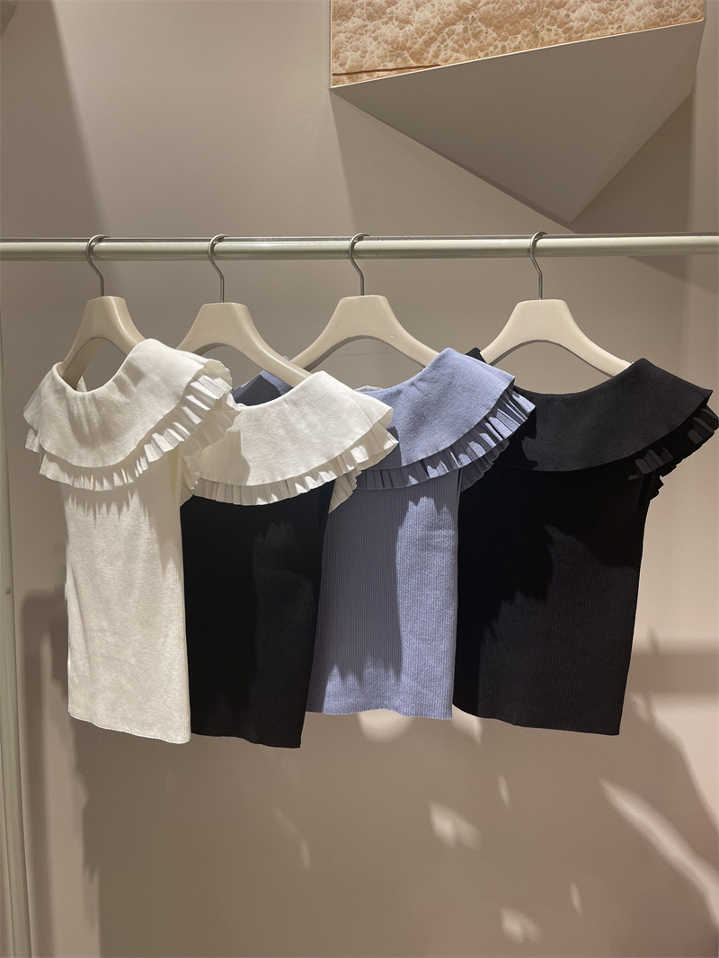 ベースには伸縮性のある柔らかなリブニットを使用。クリーンなムードのホワイト、大人っぽい印象を与えるブラック、今年らしいくすみカラーのブルー、バイカラーでモードに仕上げたミックスの4色をご用意しました。