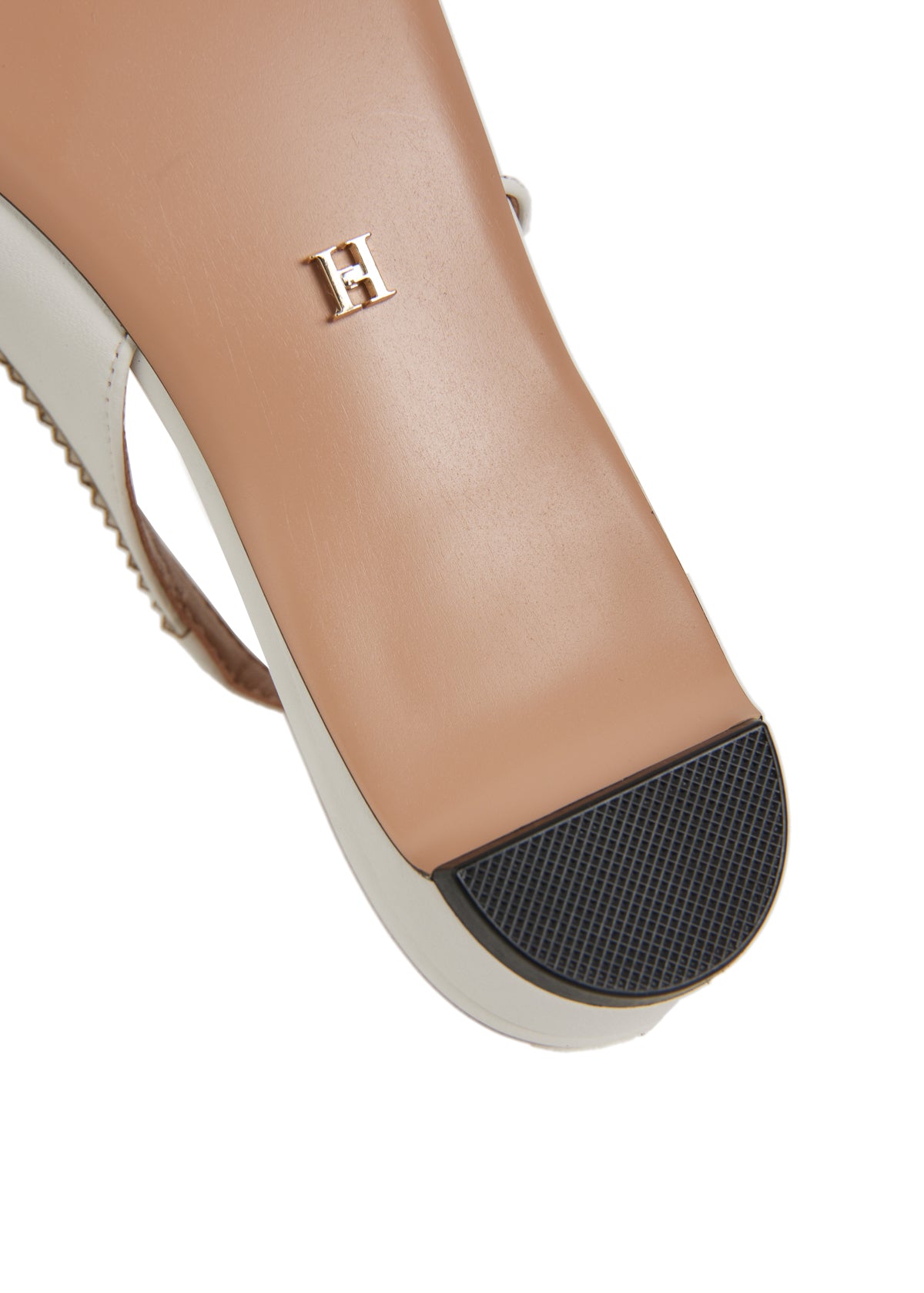 スリングバックのベルトはゴムを配しており、簡単に着脱可能。