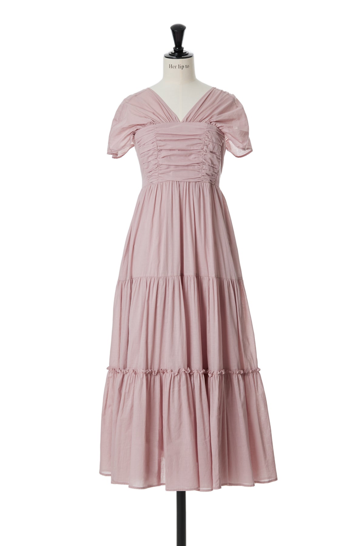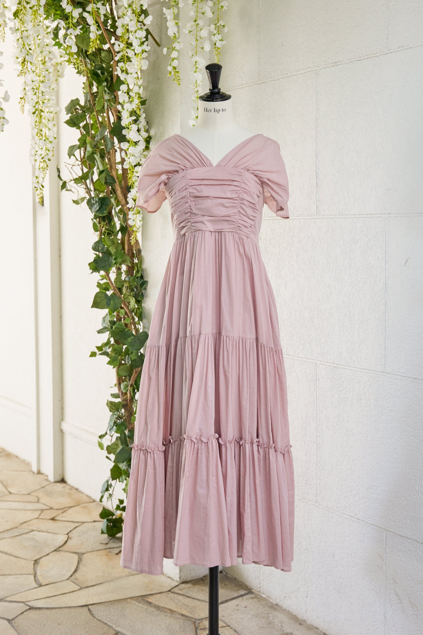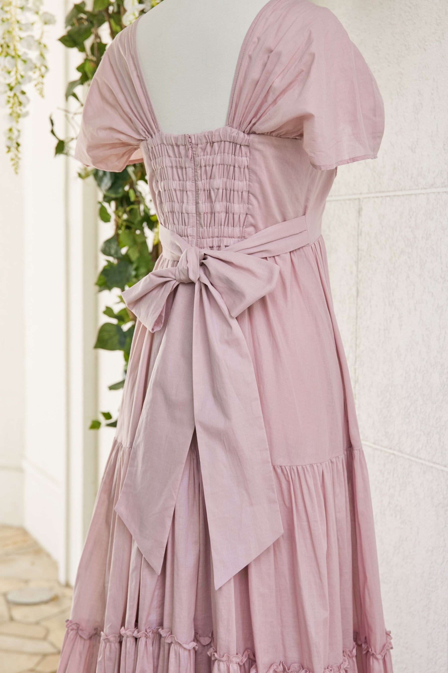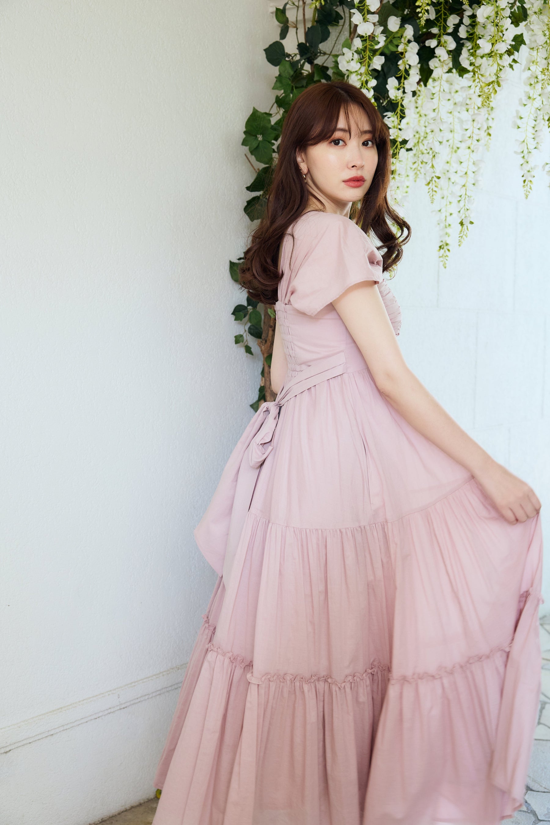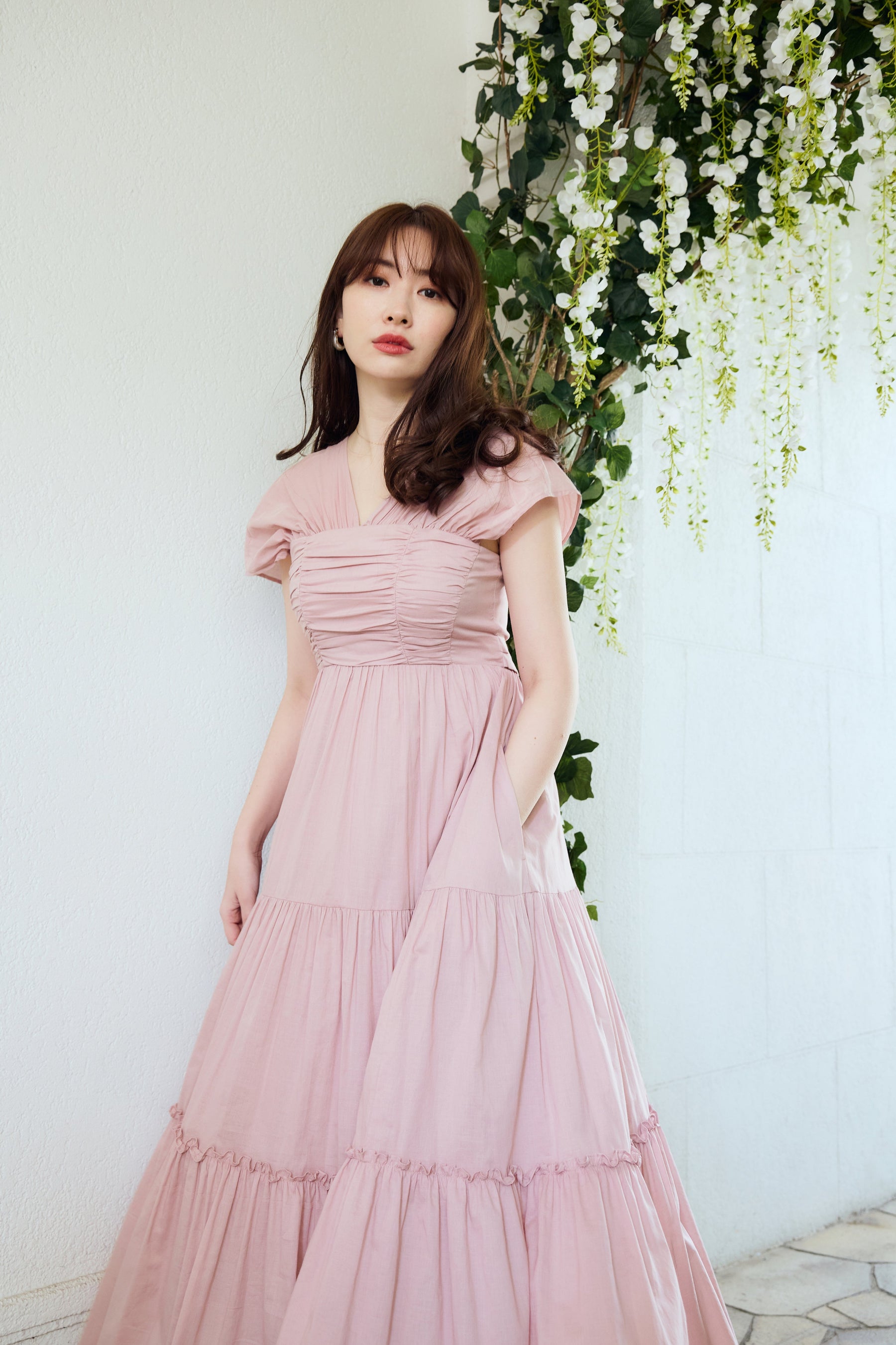 スカートに配した分量感たっぷりの二段のティアードが、裾に向かってふわっと広がり優美で華やかなシルエットを演出してくれます。