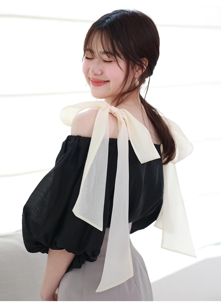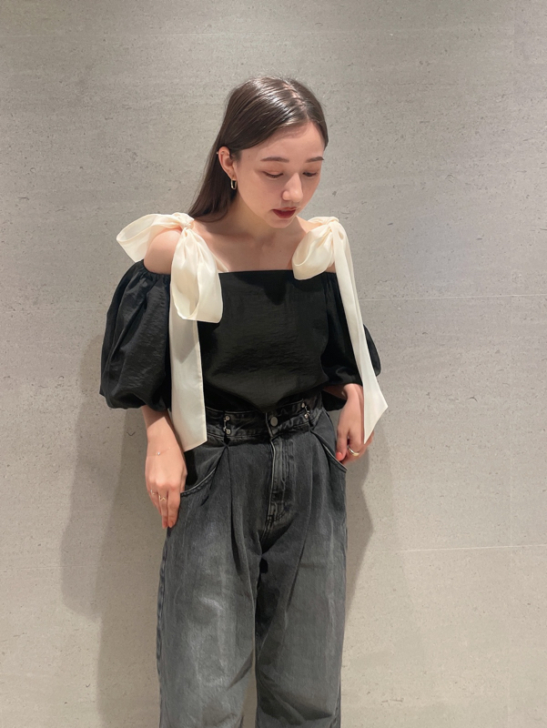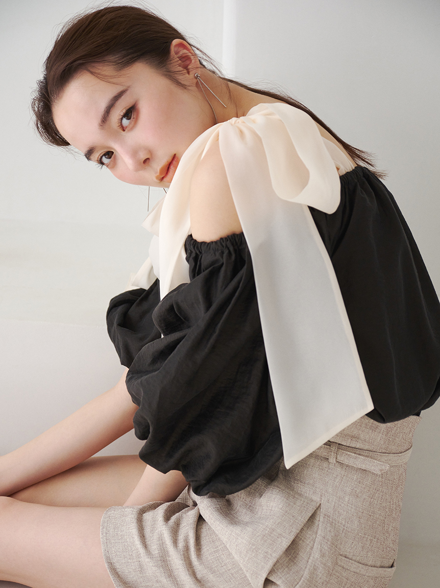 オフショルリボンブラウス