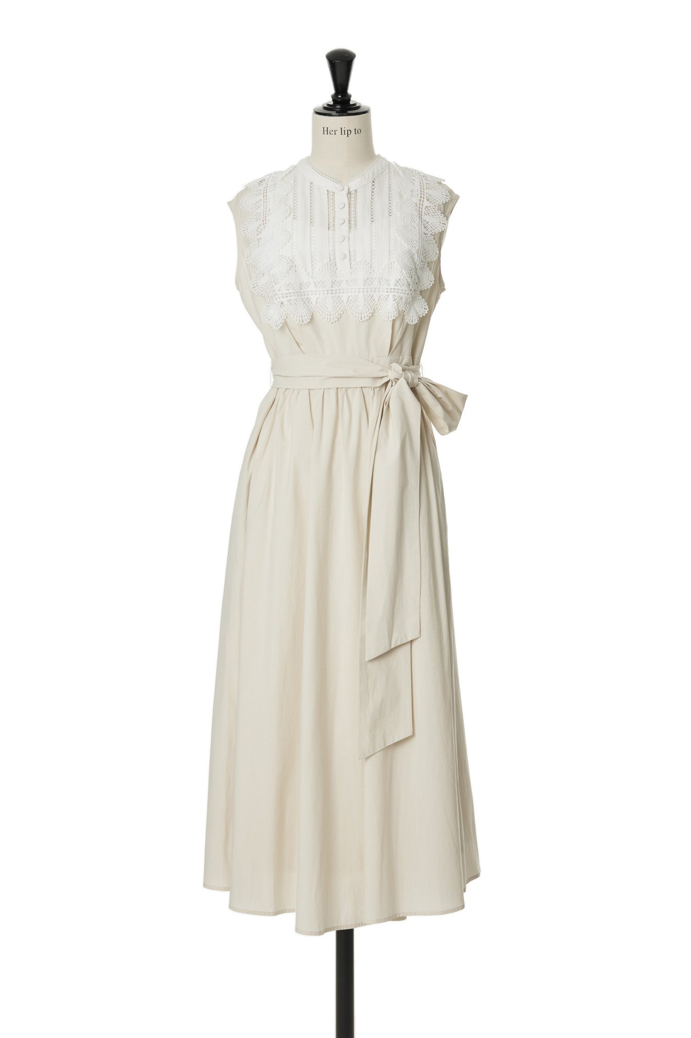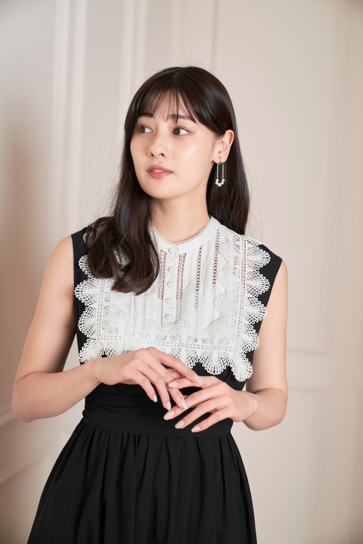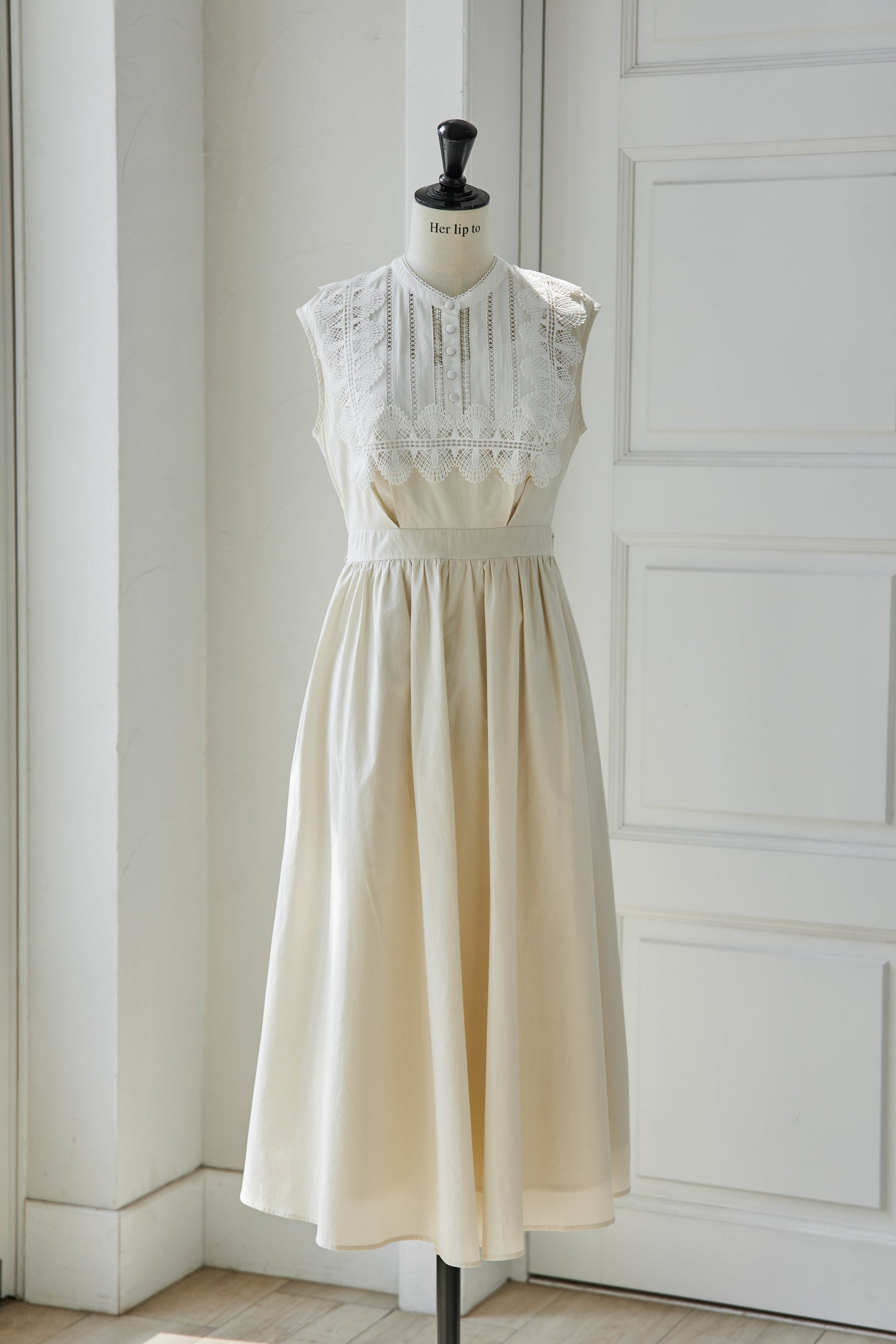 三種類のレースを施したレースのディティールが目を惹くデザインポイントのドレス。