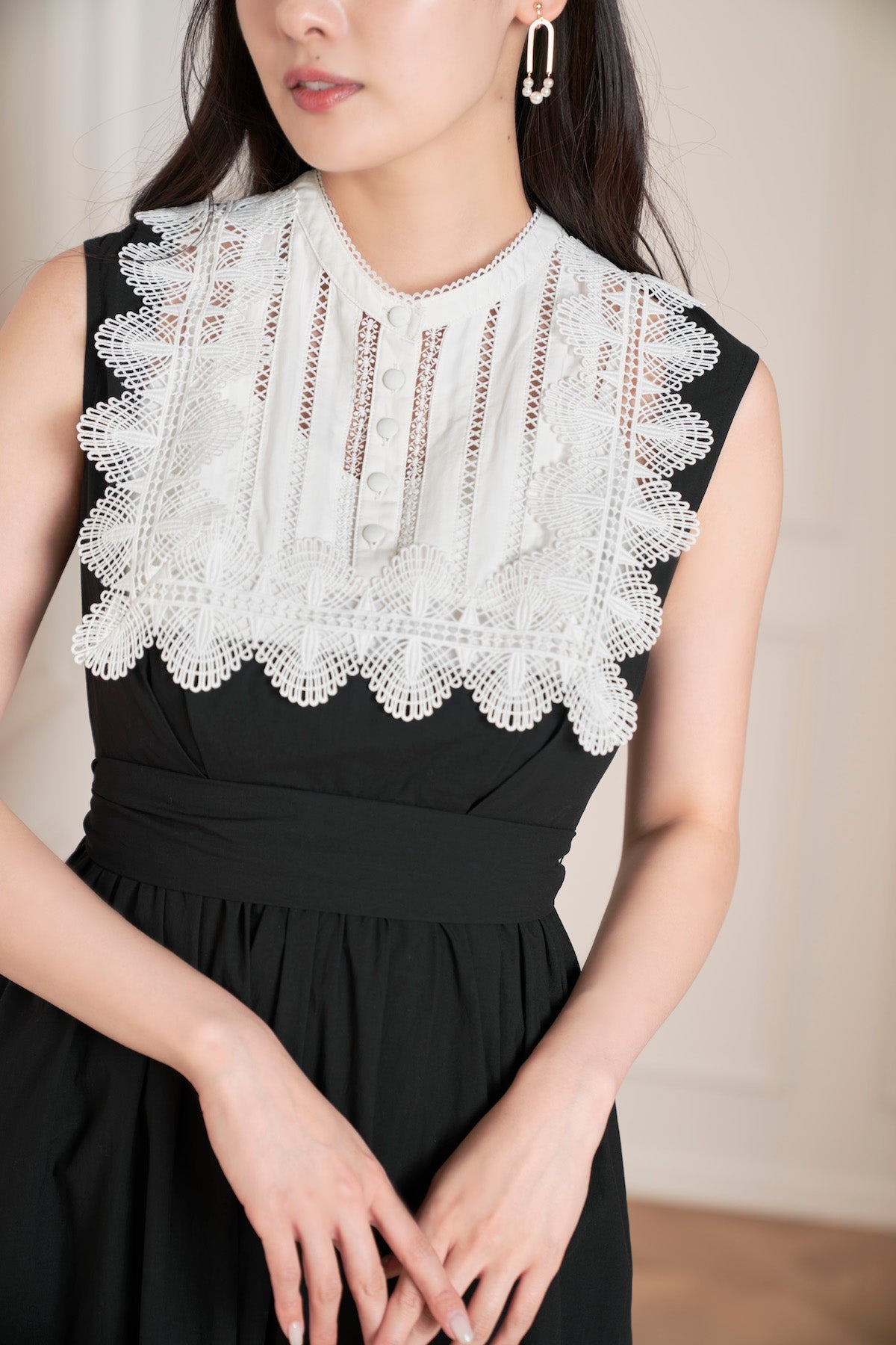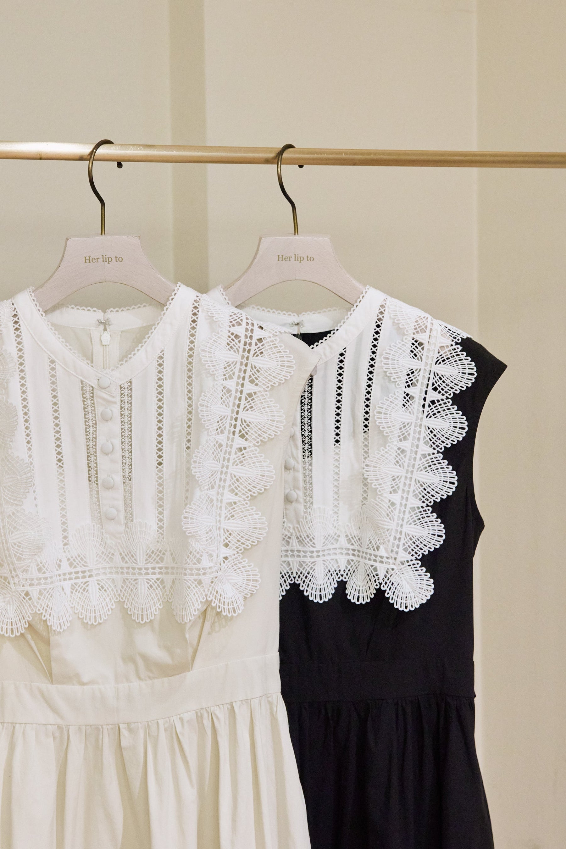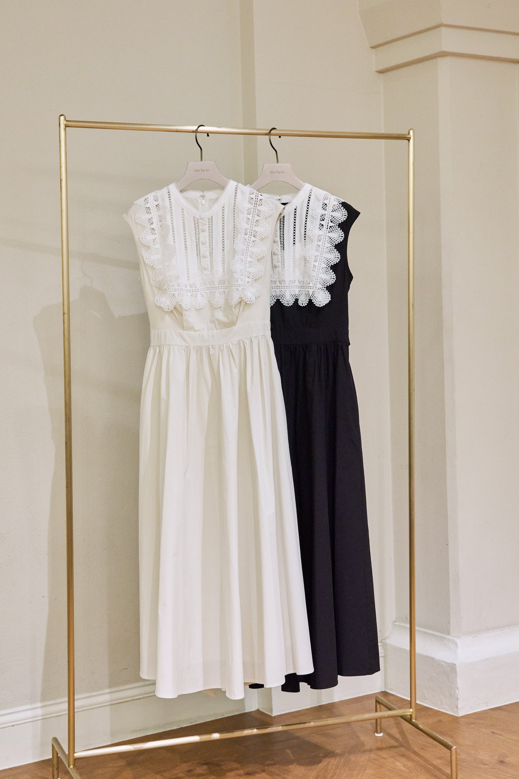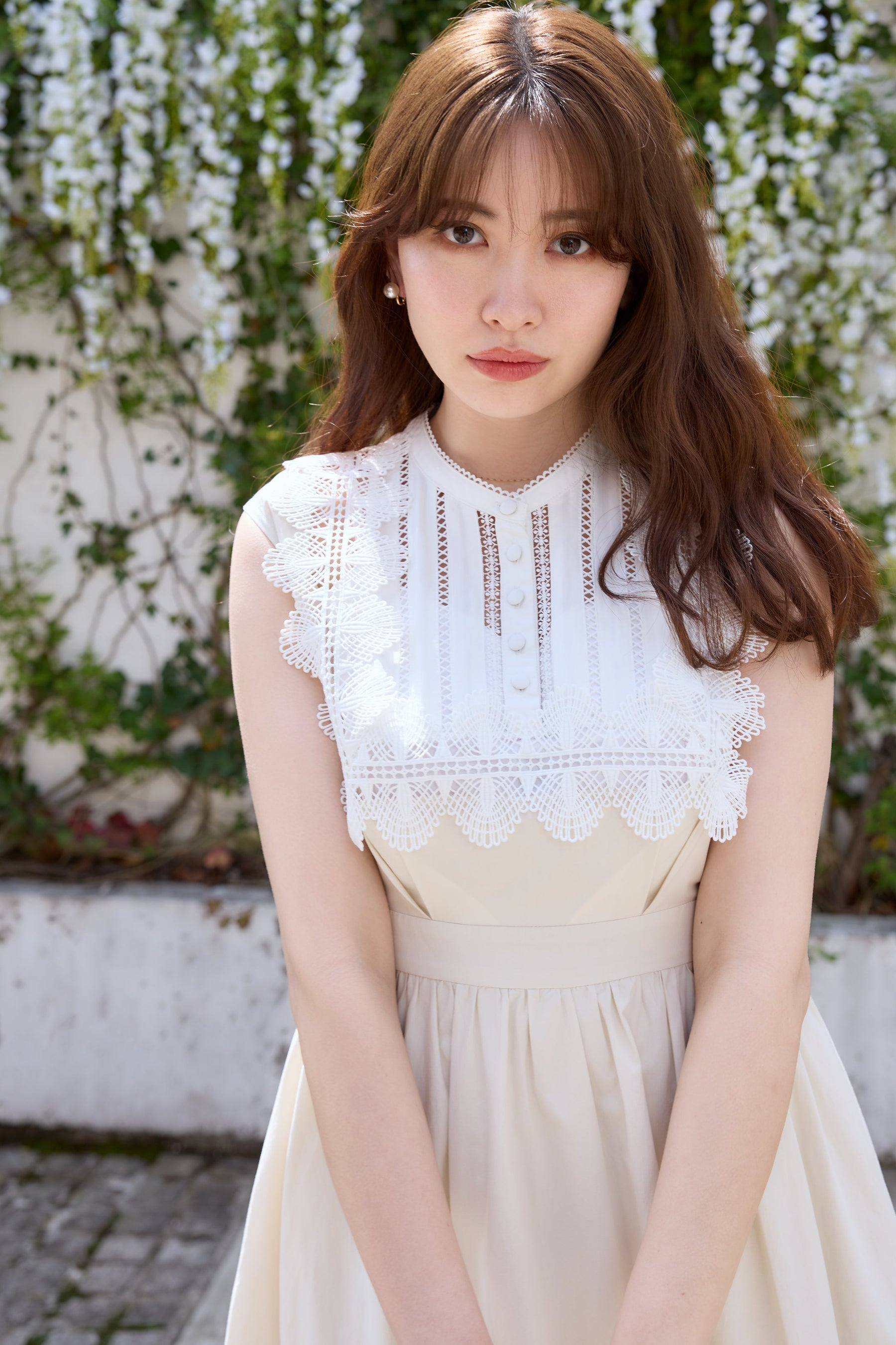 三種類のレースを施したレースのディティールが目を惹くデザインポイントのドレス。