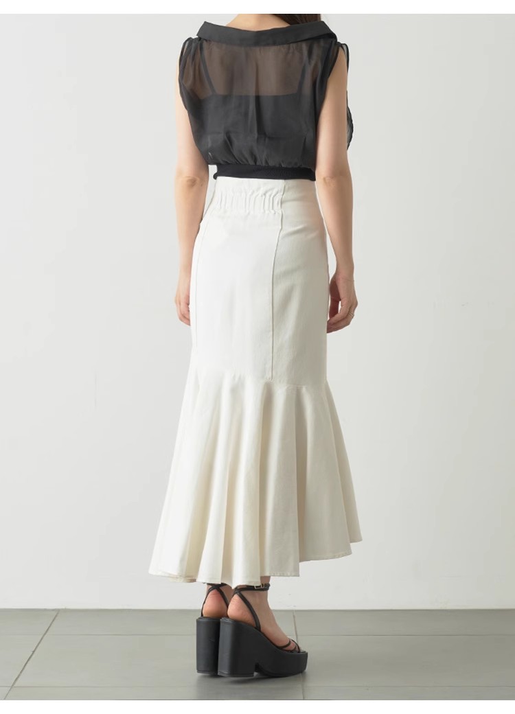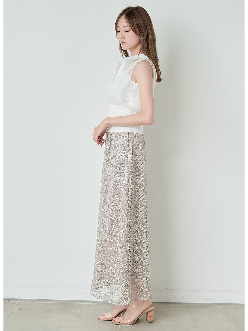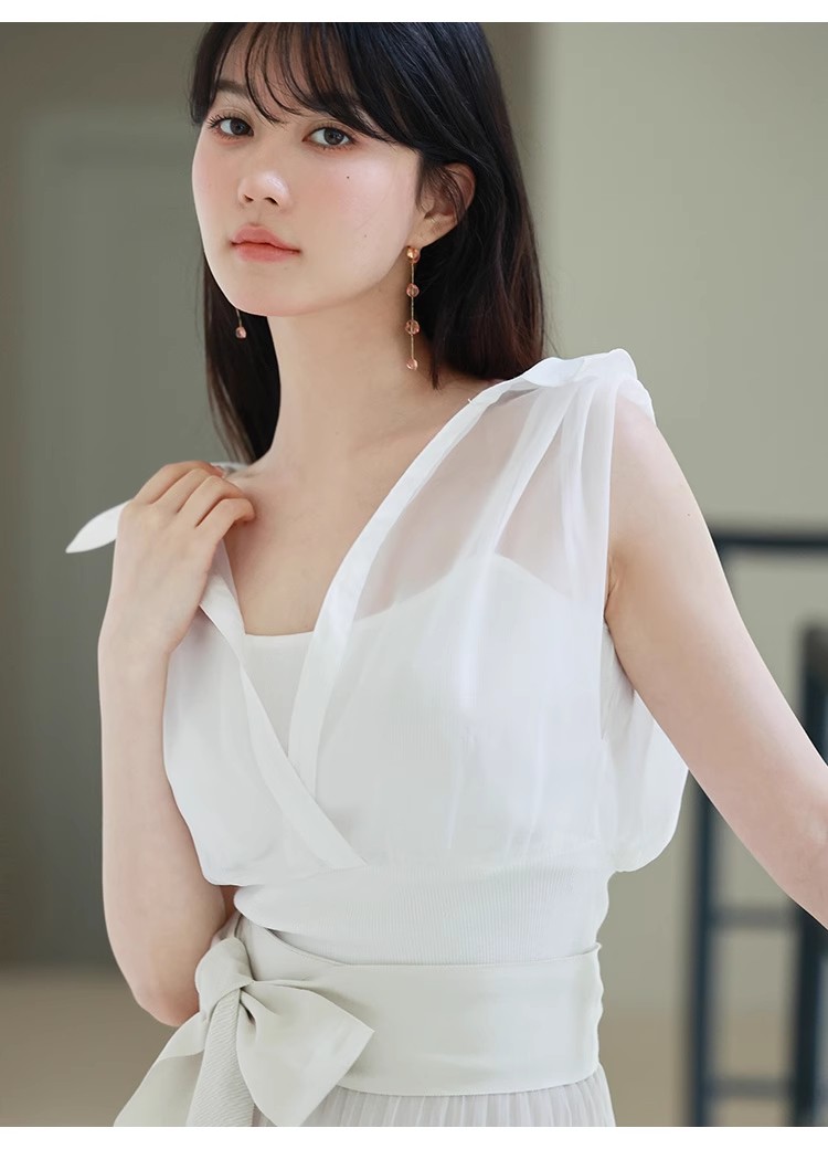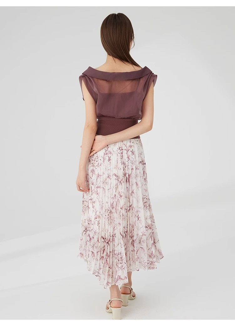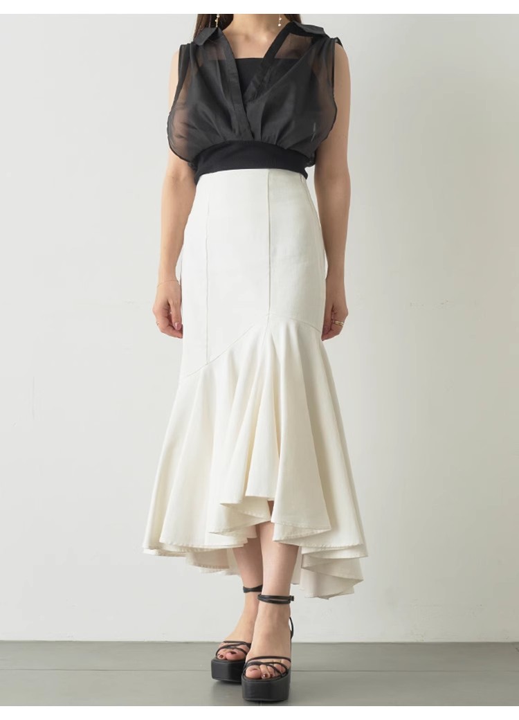 ライトな風合いのニット素材とシアーな布帛を組み合わせました。ホワイト、ブラック、バーガンディの着まわしやすいカラー展開でお届けします。