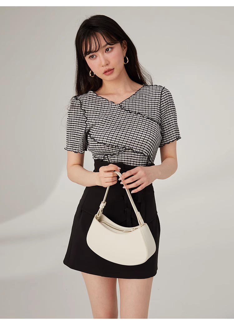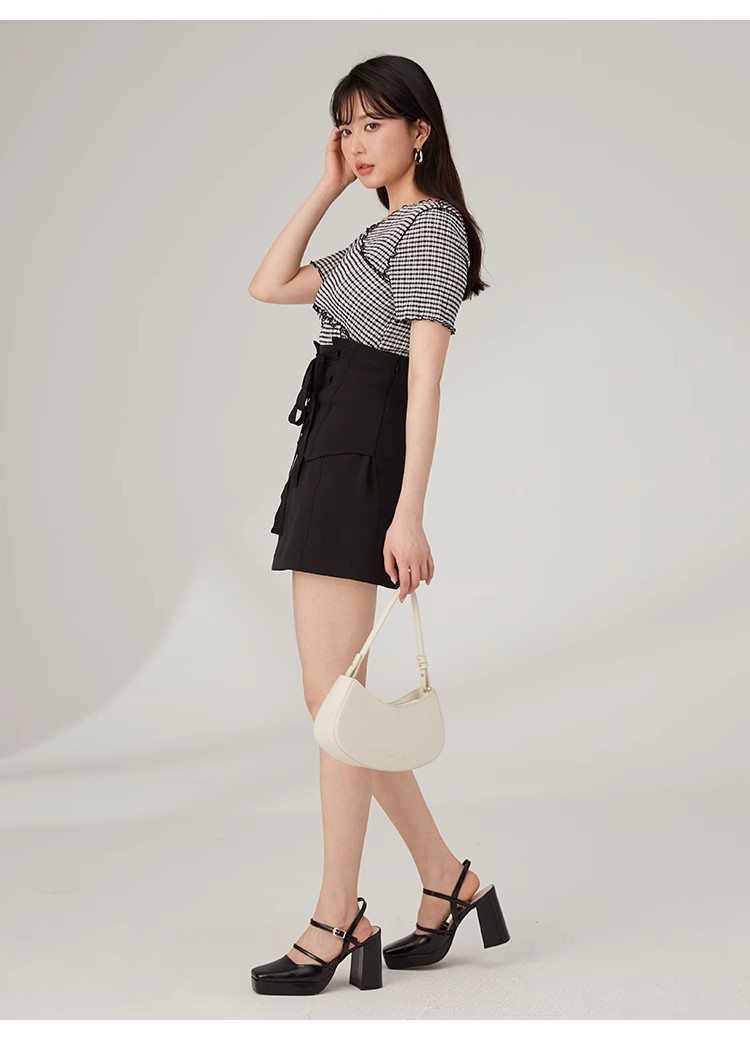 大人気のメローカットシリーズにトップスが新登場。胸元でクロスする切り替えデザインが特徴的な、フェミニンとモードが共存する「SNIDEL」ならではの1着です。バックウエストには華奢なリボンをあしらい、後ろ姿まで抜かりなし。パンツともスカートとも合わせやすく、同シリーズのスカート(SWCS232160)とセットアップでの着用もおすすめです。