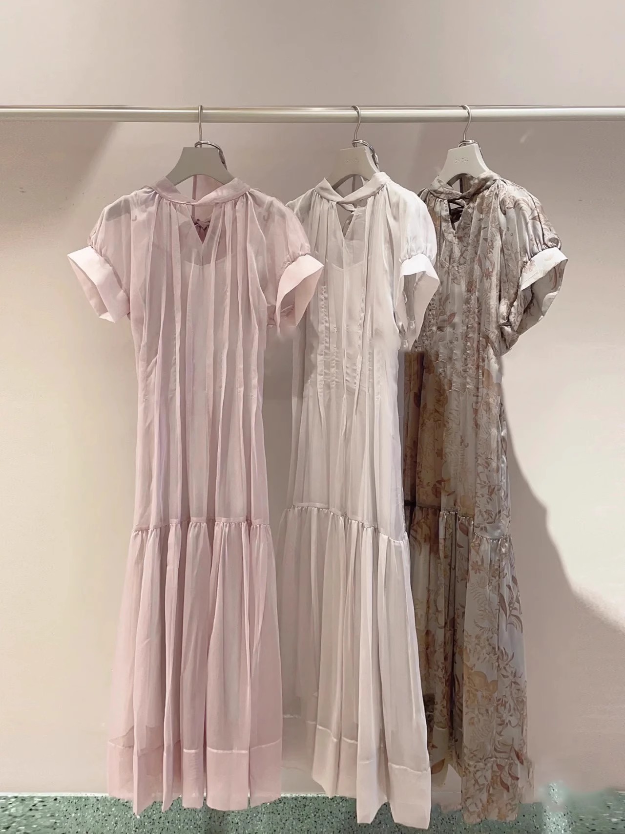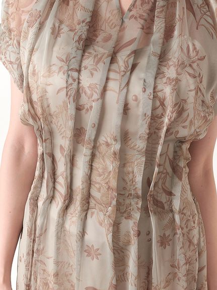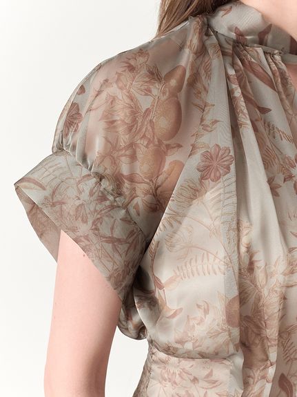 上品な透け感で軽さのあるシアー生地を使用しました。グレー、ピンクの今年らしいニュアンスカラーに加え、華やかなフラワーを揃えた3色展開でお届けします。