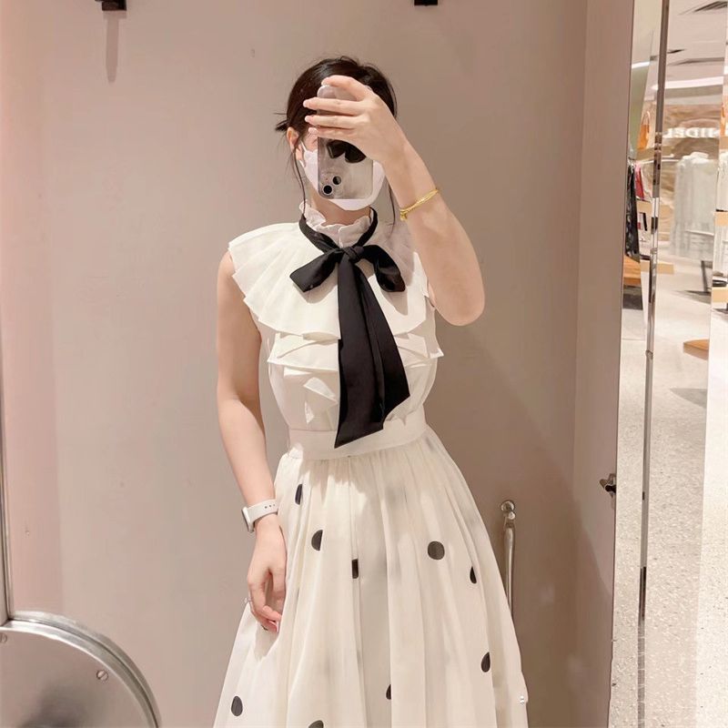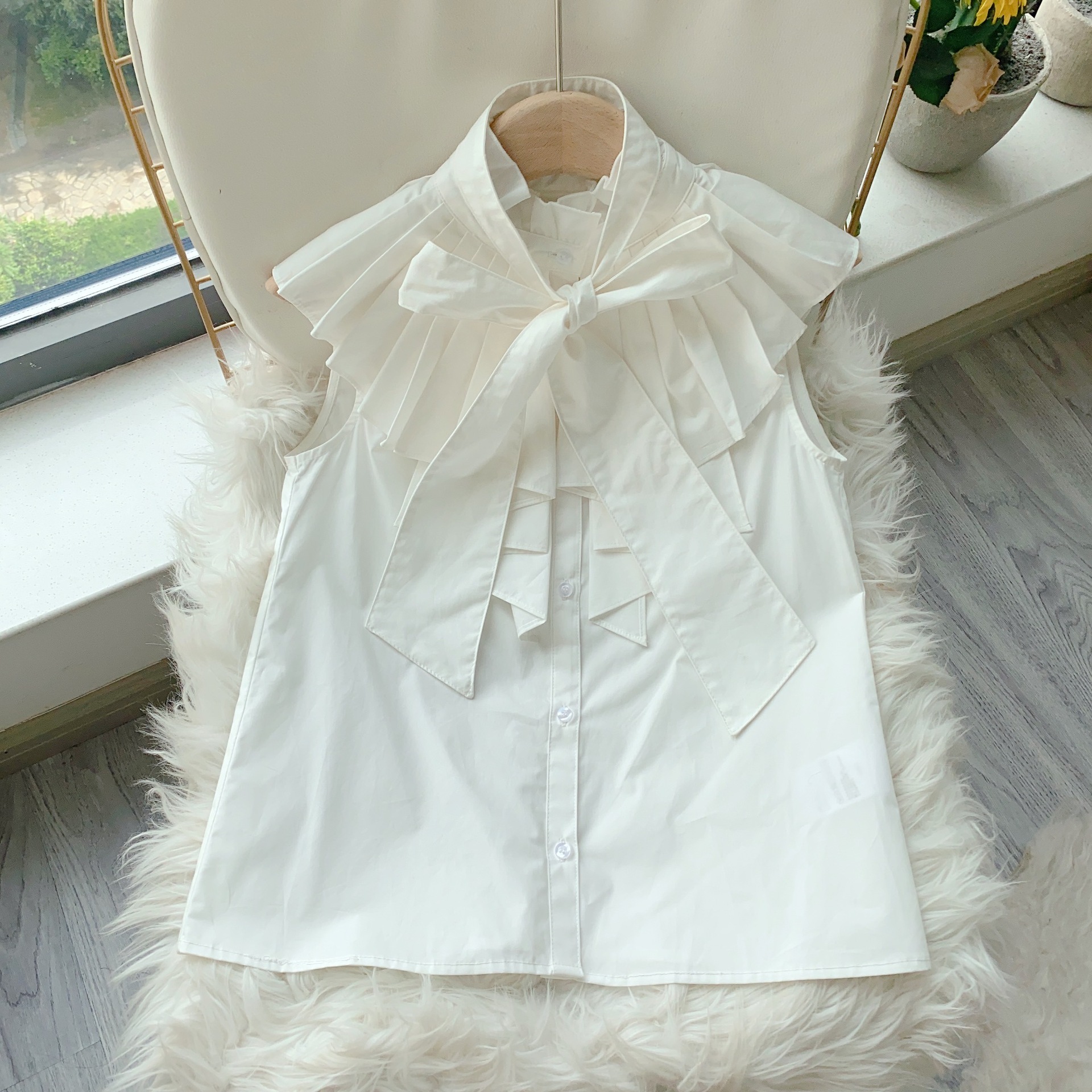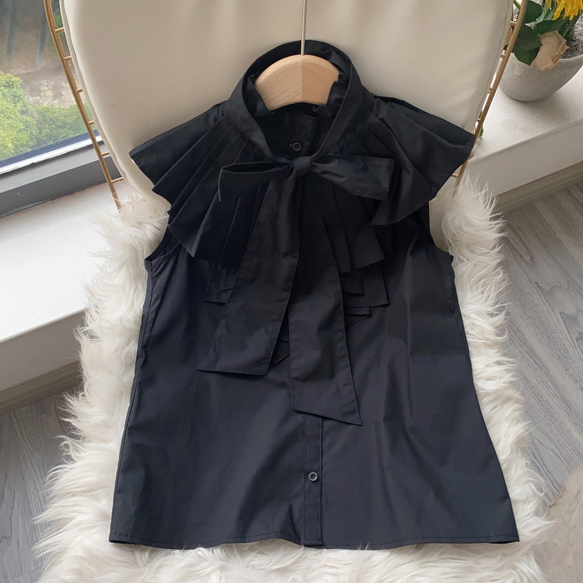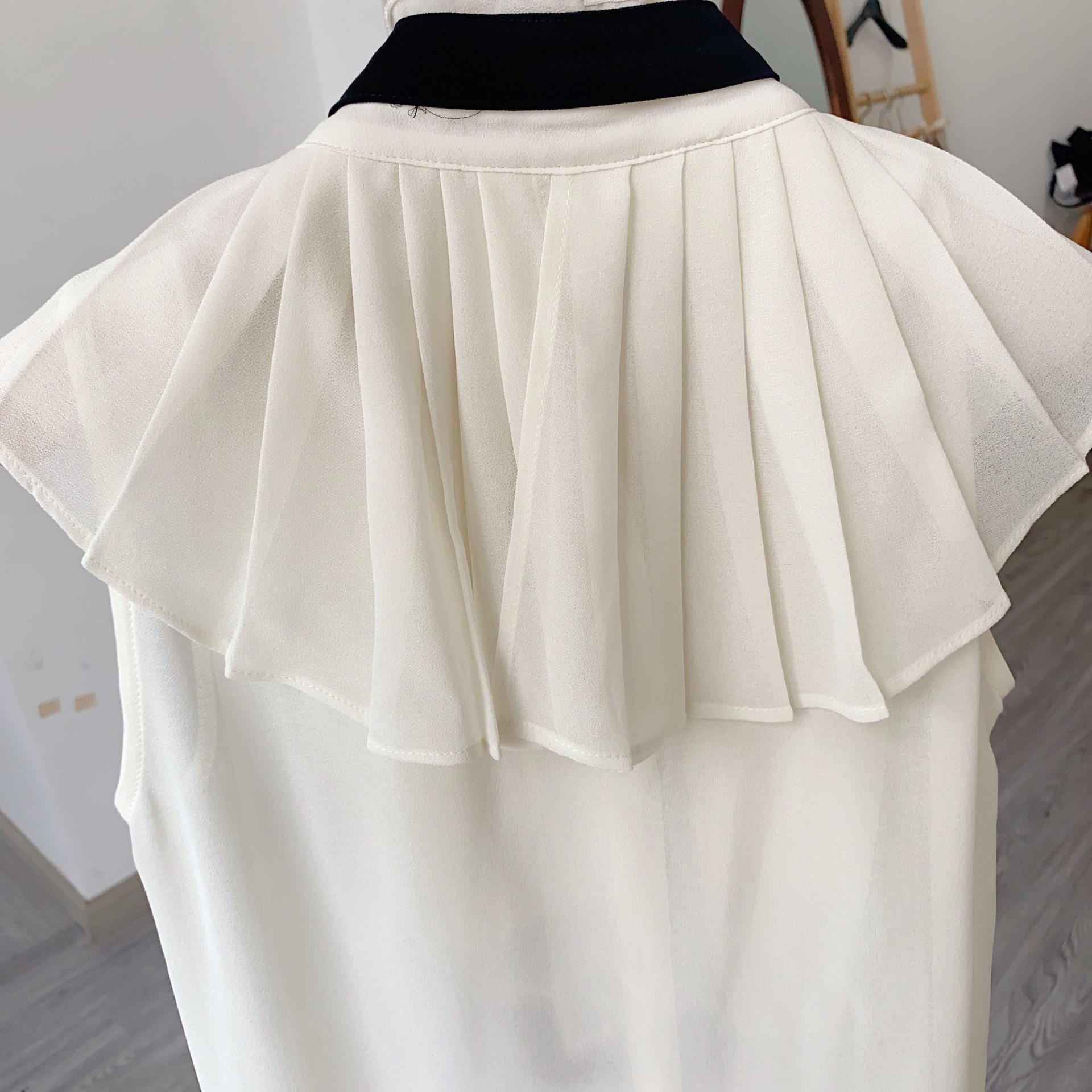 【ボウタイ×フリルの王道フェミニンディテールが光るノースリブラウス】