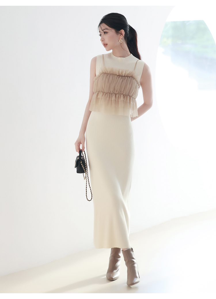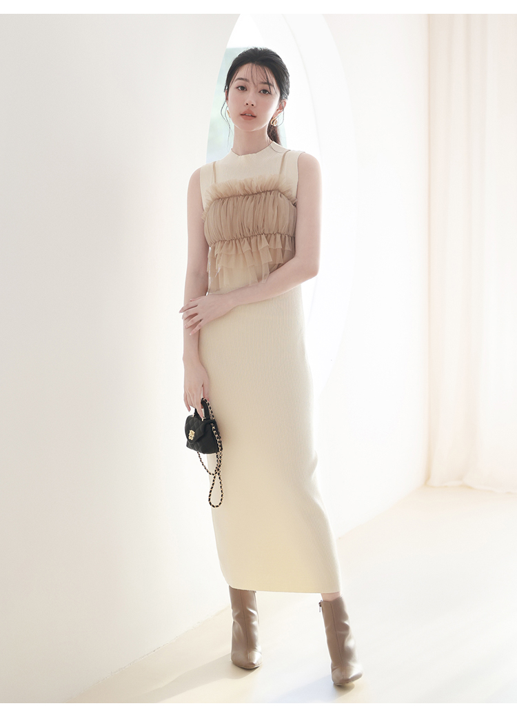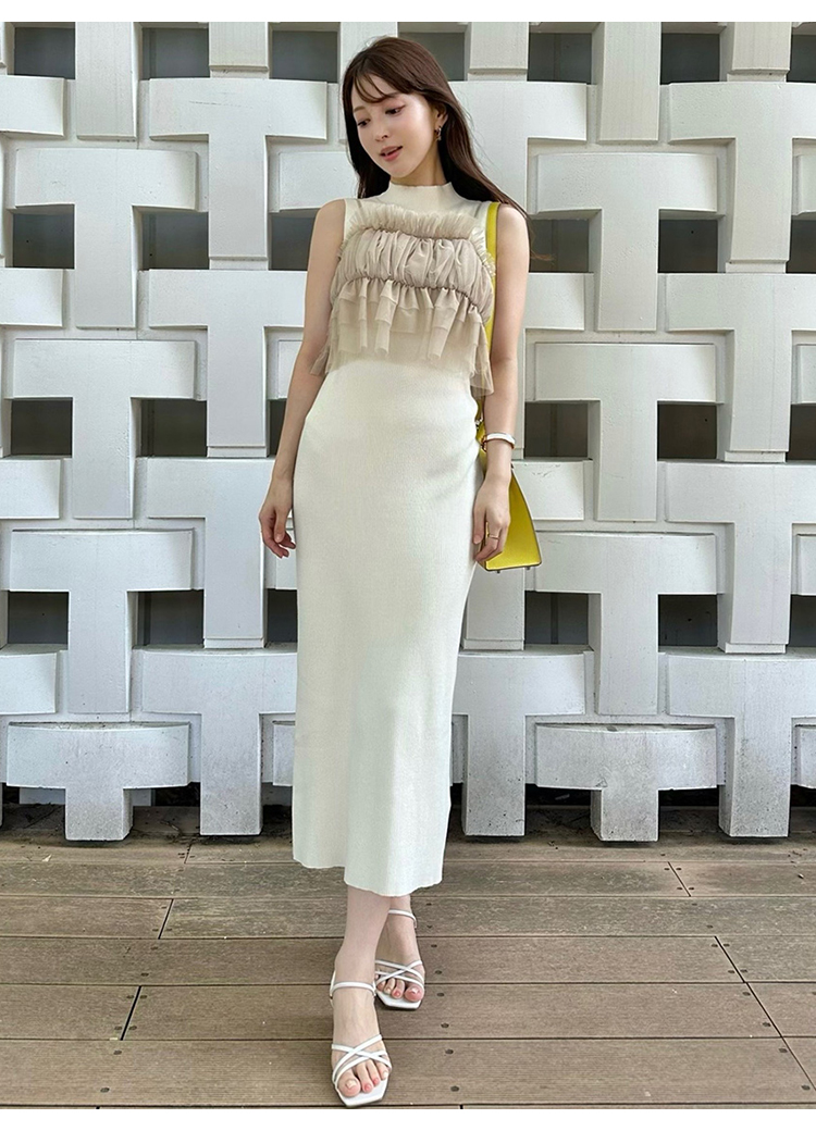【旬のレイヤードコーデが完成するチュールキャミ&ニットワンピのセット】