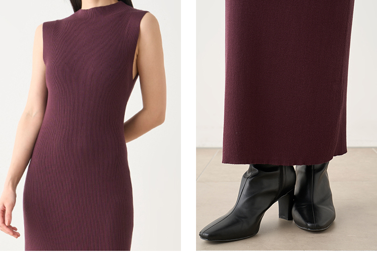 キャミソールにはシアーなチュール素材、ワンピースには伸縮性のあるリブニットを使用しました。ベーシックで着まわしやすいアイボリーとブラックに、シーズンムード高まるバーガンディーを加えた3色展開です。