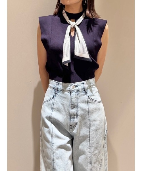 スカーフタイニットプルオーバー