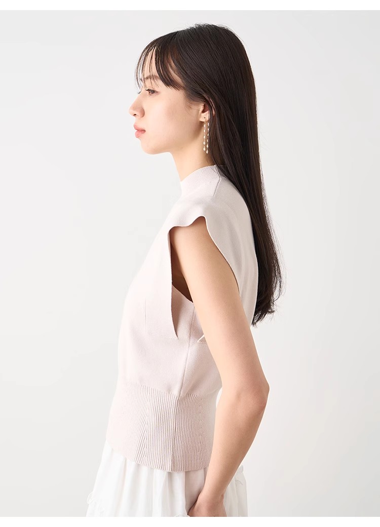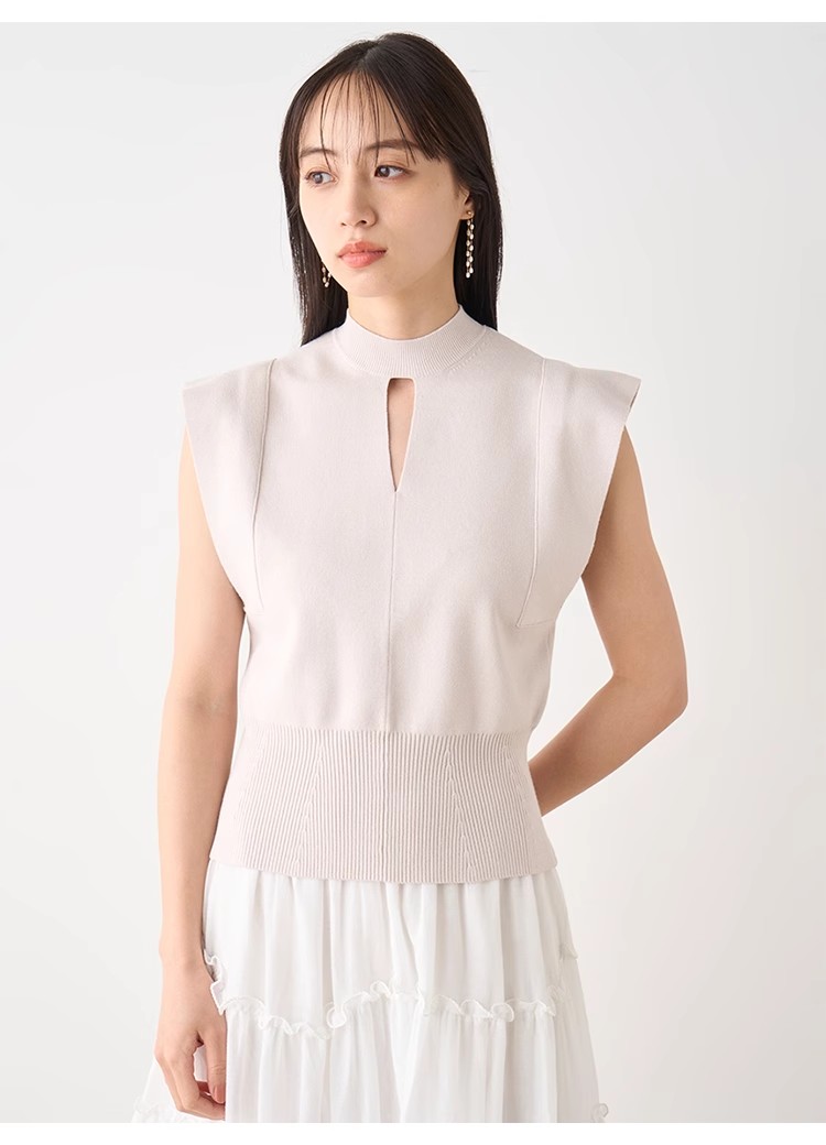 身体のラインを拾いにくい程よい肉感のニット素材を使用。爽やかな印象を与えるホワイト、女性らしい優しい色合いのピンクベージュ、上品クラシカルなネイビーの3色展開でお届けします。