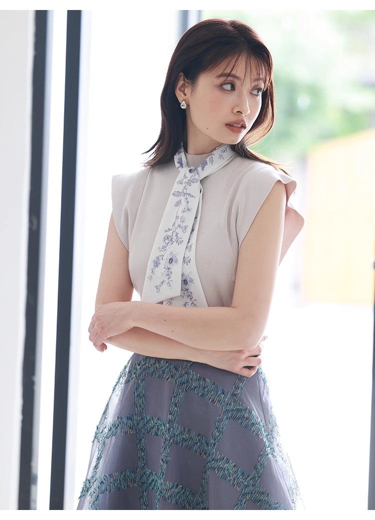 トレンドのスカーフがセットになった万能ニットプルオーバー。フロントのスリットデザインがヘルシーな肌見せを叶え、女性らしさを引き立ててくれます。裾はリブ仕様でナチュラルに腰で止まるため、アウトスタイルでもさらっと様になるデザイン。ややフレアなラインで華奢見えする袖のディテールもこだわりのポイントです。