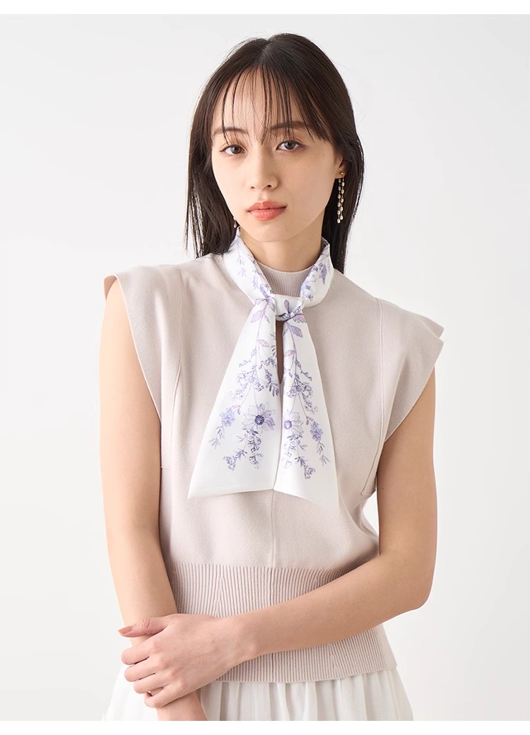 【オリジナル柄のスカーフがトレンド感を高めるニットプルオーバー】