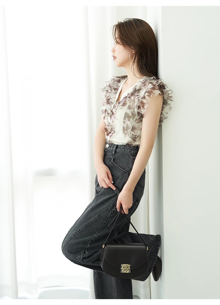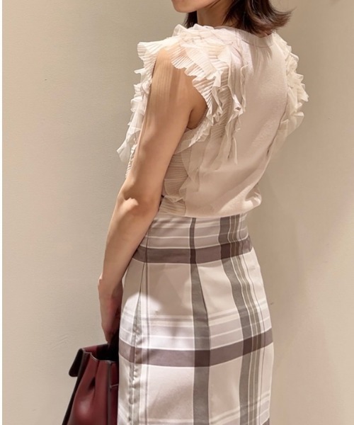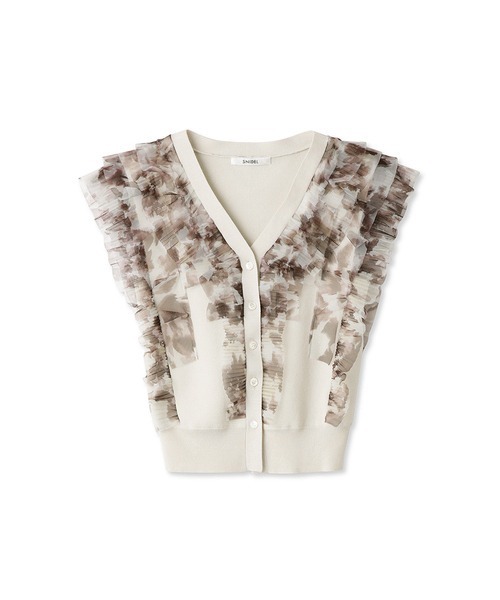 「SNIDEL」定番人気のチュールニットプルオーバーが今季も登場。オリジナル柄を入れることで新鮮な1枚に仕上げました。トレンドライクになるようにこだわったフリルの入れ方もポイント。コンパクトなシルエットなので合わせるボトムを選ばず、幅広いスタイリングに活躍してくれます。