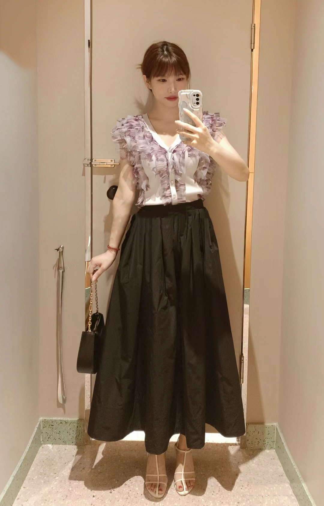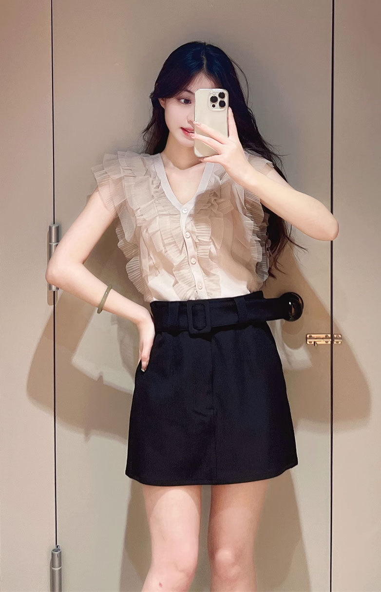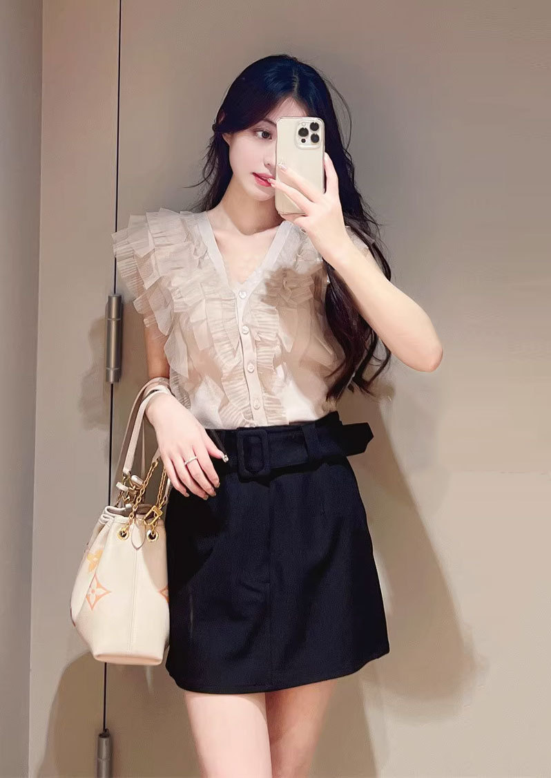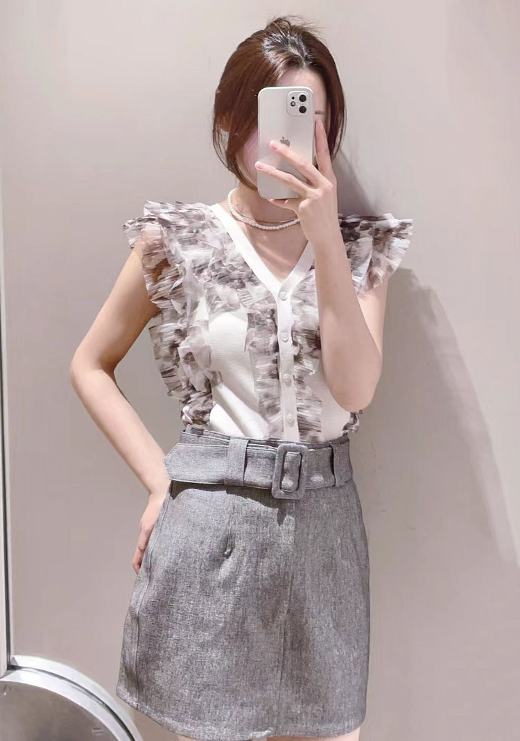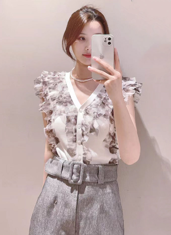 綺麗めな質感のニットにチュールフリルをドッキングしました。淡い色合いで女性らしさ高まるピンクベージュ、ベージュ、ラベンダーの3色展開でお届けします。