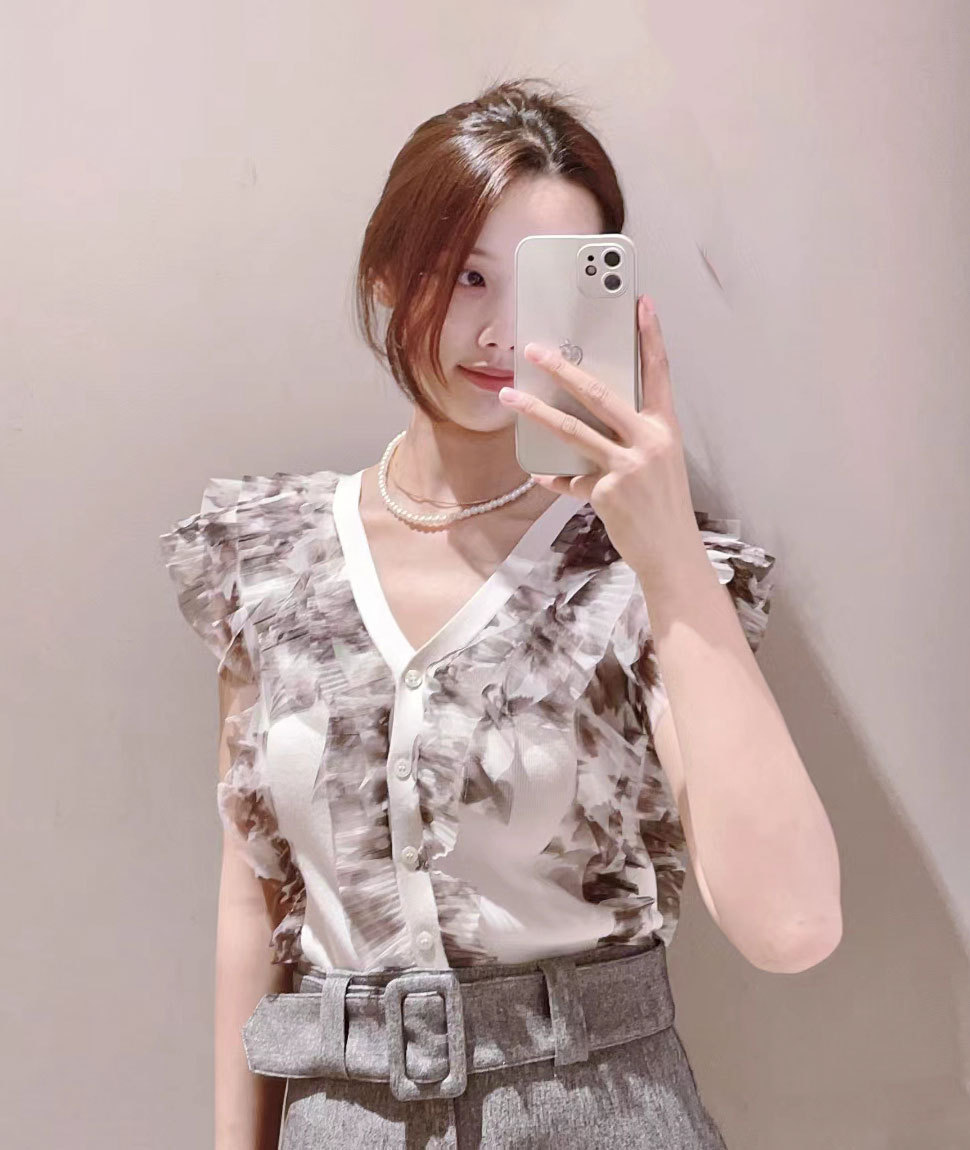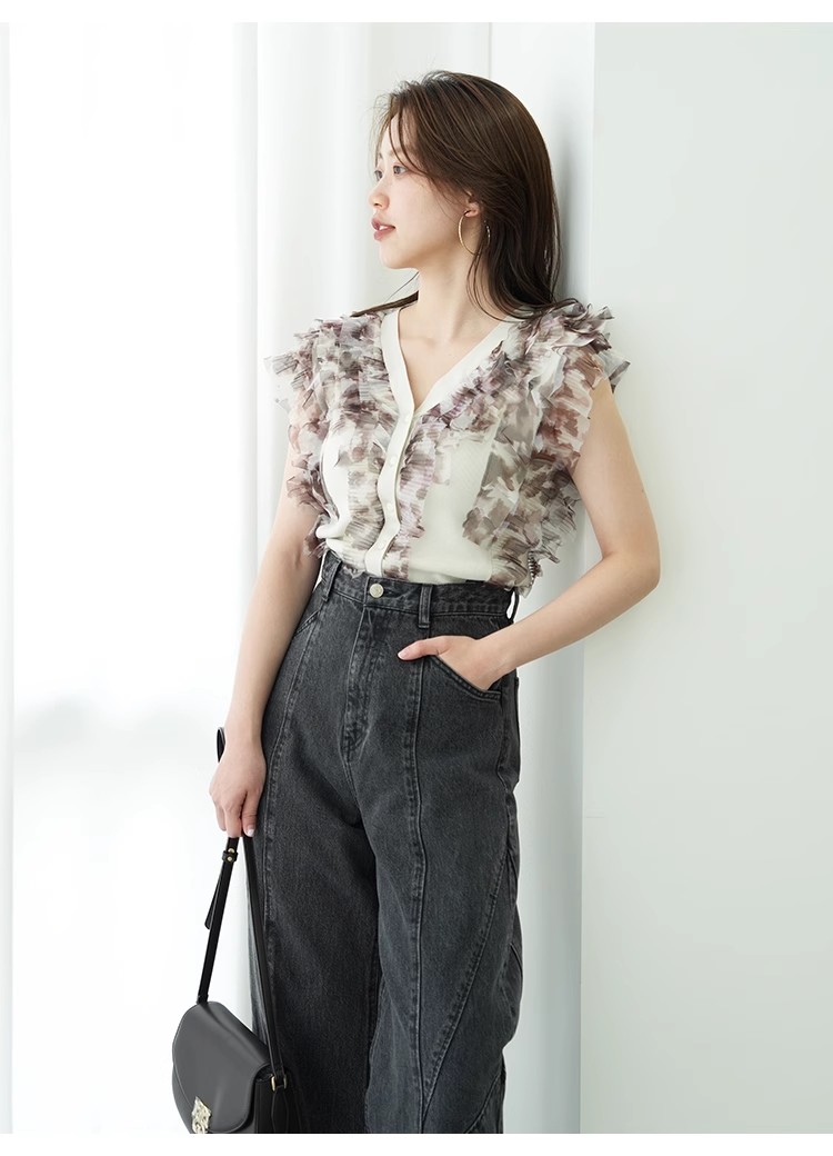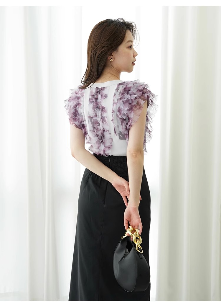 【女性らしい華やかなデザインが人気のチュールニットトップス】