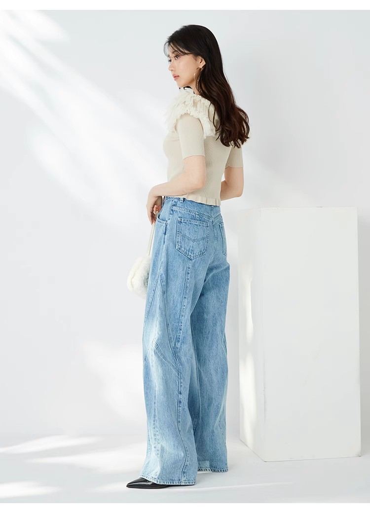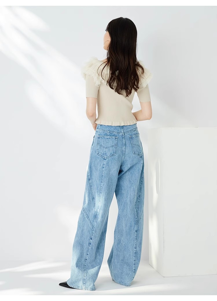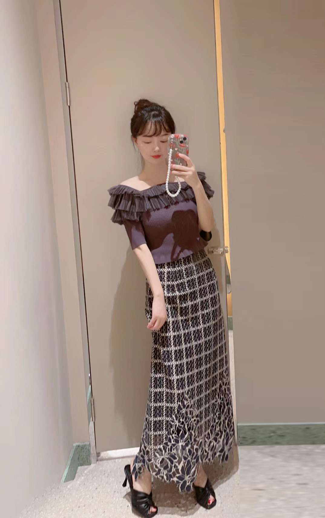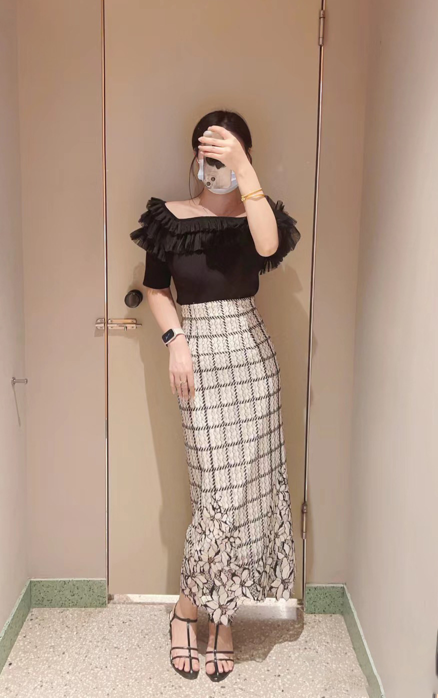 ボリュームたっぷりのチュールフリルをあしらった、華やかな雰囲気のニットトップス。裾部分は編地の変化でフリリーに仕上げ、どこまでも女性らしい1着です。フィット感のあるタイトシルエットがボディラインを美しく見せスタイルアップ効果を発揮。甘めのディテールなのでデニムなどと合わせたMIXスタイルがおすすめです。