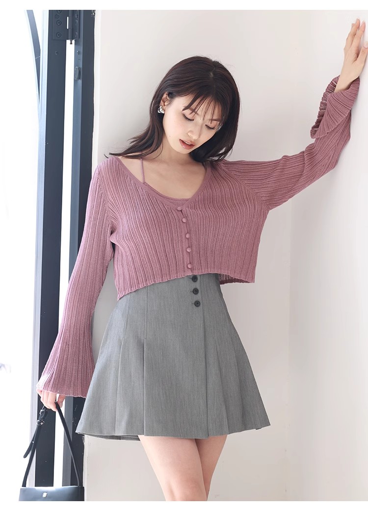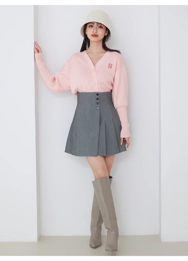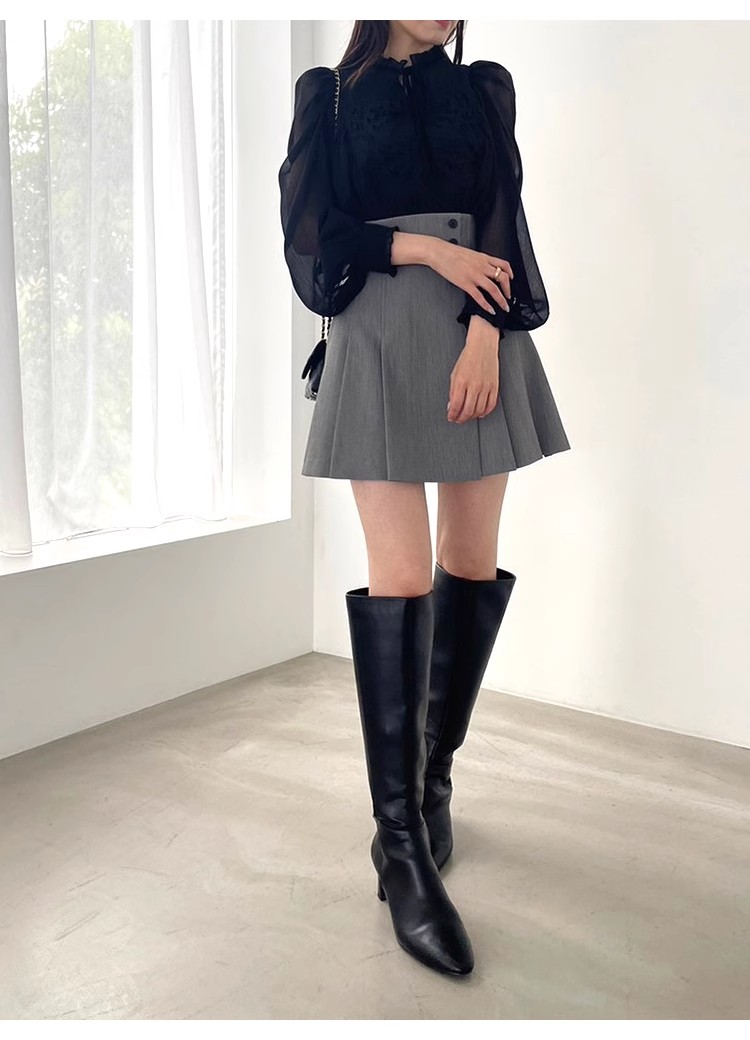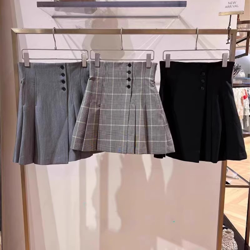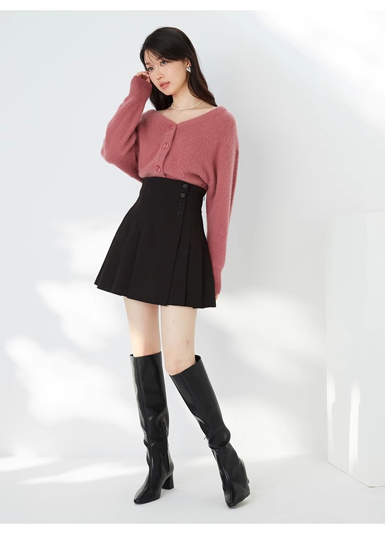 サイドにプリーツを畳んだクラシカルなフレアシルエットが印象的なスカショーパン。タイトなウエストから裾のフレアが八の字になるようにプリーツの広がりにミリ単位でこだわった1着です。ボタンでアクセントをプラスしたハイウエストデザインでスタイルアップ効果抜群。トップスはウエストインしてすっきりとまとめるのがおすすめです。