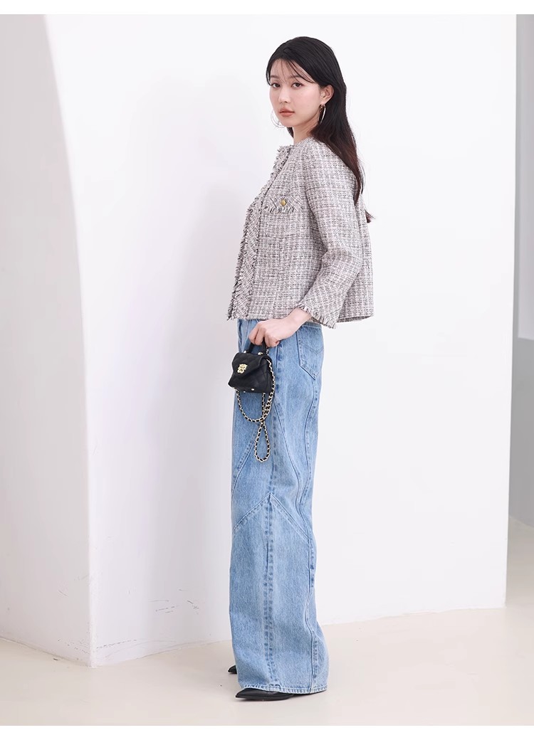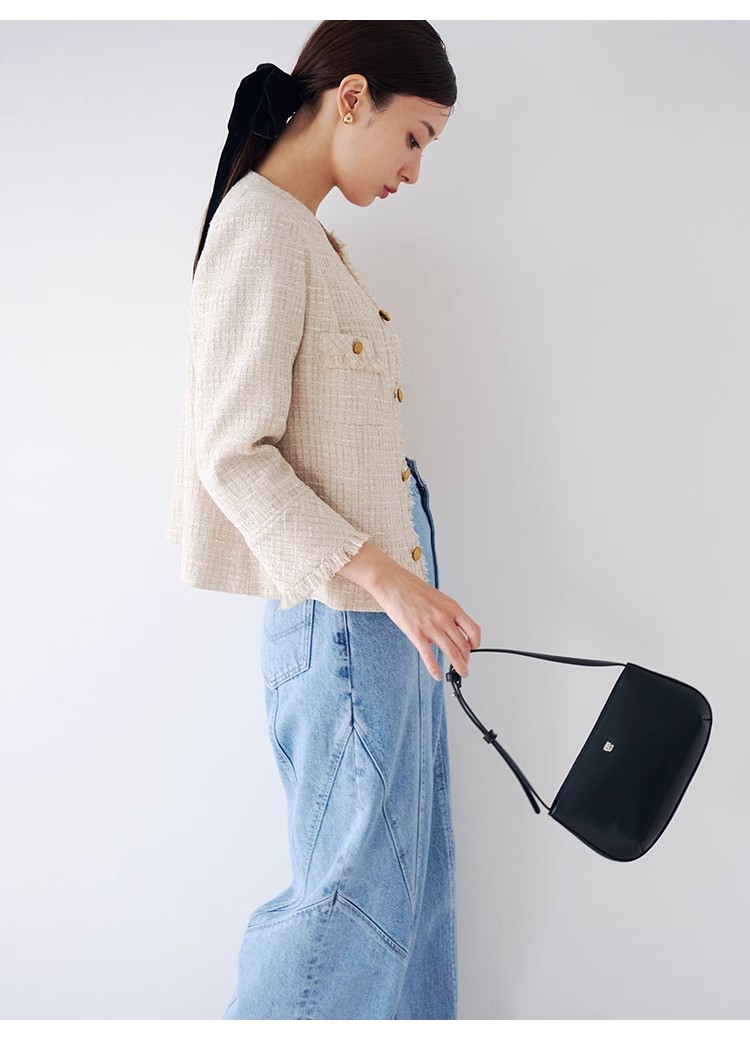 様々なシーンで活躍するクラシックなツイードジャケット。細部にフリンジを使うことで華やかさをプラス。色ごとに異なる素材を使用し、バリエーションでご用意いたしました。すっきりとしたシンプルなシルエットが好印象。パンツともスカートとも、ワンピースなどにも合わせやすく、幅広いスタイリングに重宝します。