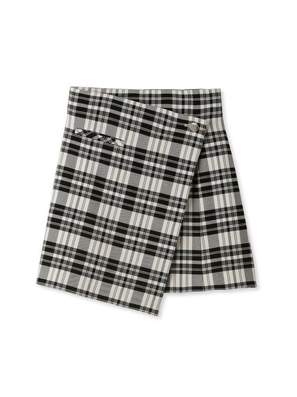 ラップスカートにように見えるフロントデザインが特徴的なミニスカート。斜めに重ね合わせたラップ風のデザインながら、しっかりと脇まで生地があるので安心して着用いただけます。タイトなハイウエスト仕様でスタイルアップ効果抜群。合わせるトップスを選ばず幅広いコーデに活躍する万能アイテムです。