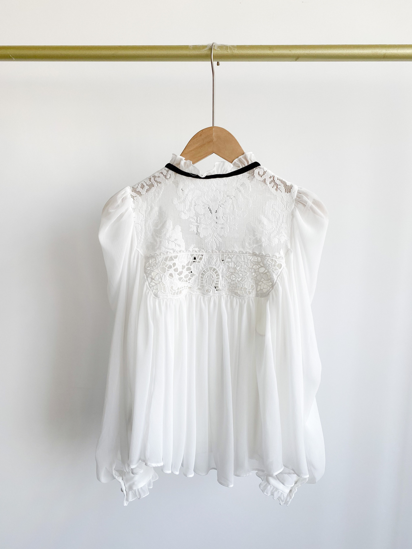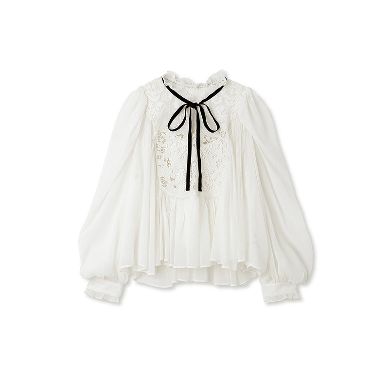 春夏に人気を集めたブラウスがリバイバル。オリジナル刺繍レースとカーテンレースを組み合わせ贅沢に仕上げた1着です。たっぷりと分量感のあるフレアシルエットでロマンティックに。リボンやフリルなどの甘ディテールもプラスし、どこまでも女性らしく仕上げています。柔らかさのある素材なのでボトムにインしてもアウトでもバランス良く決まり、ボトムを選ばず合わせられます。