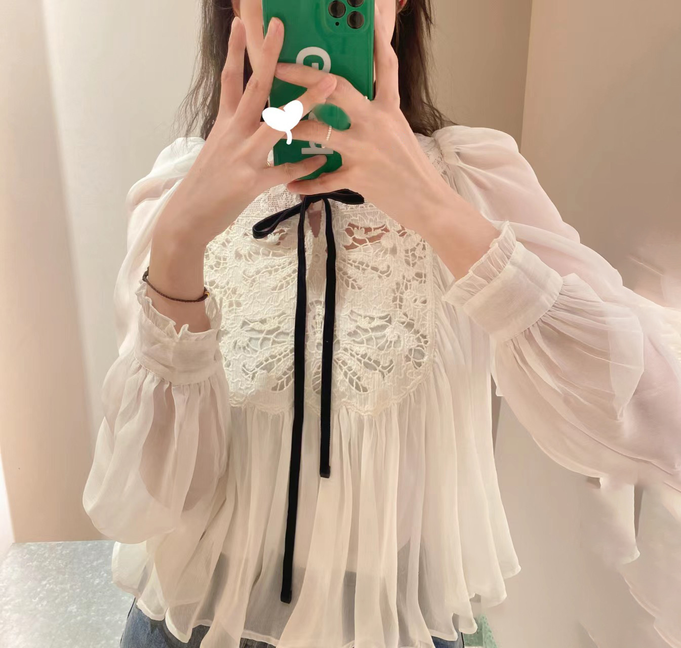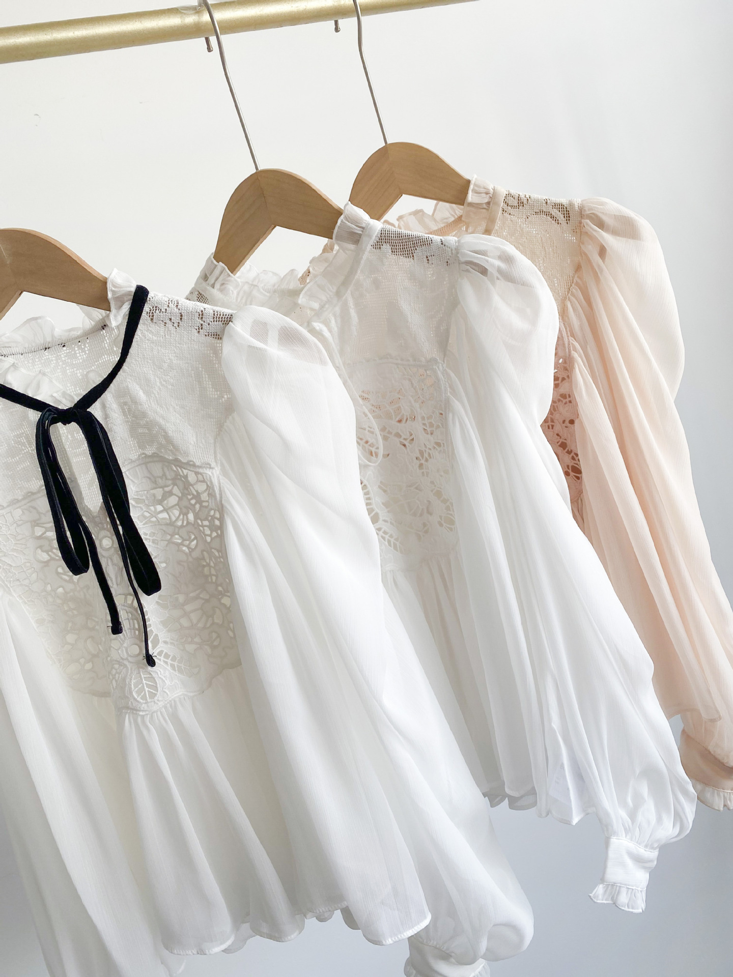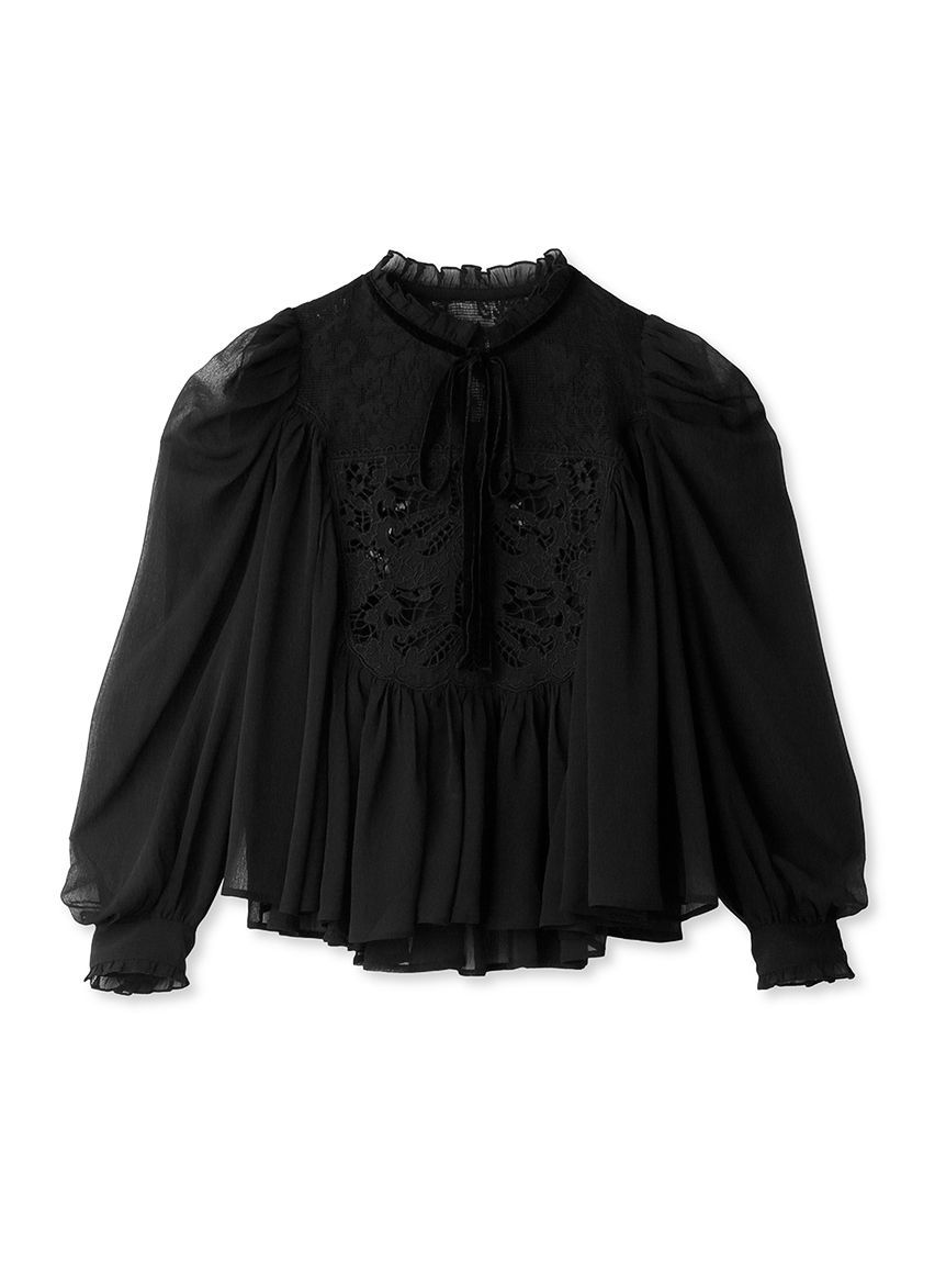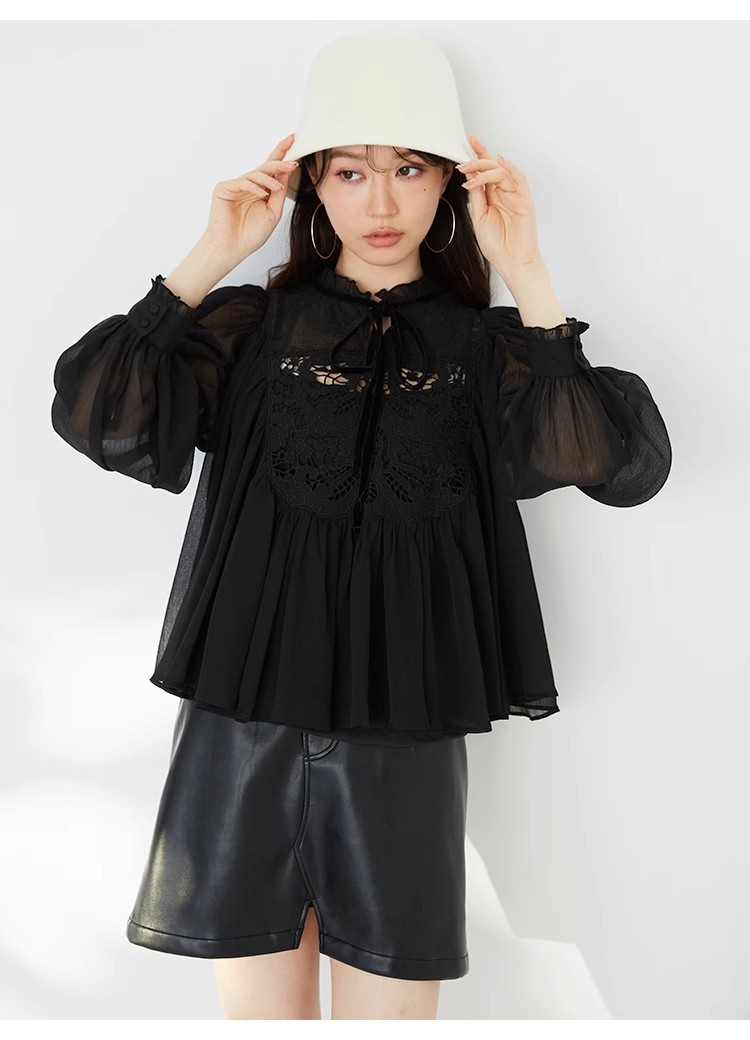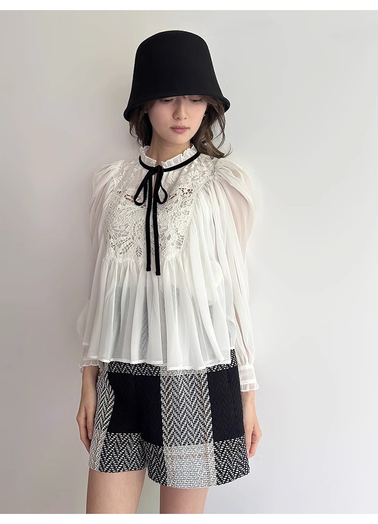 【贅沢なレース使いが目を引く王道フェミニンなブラウス】