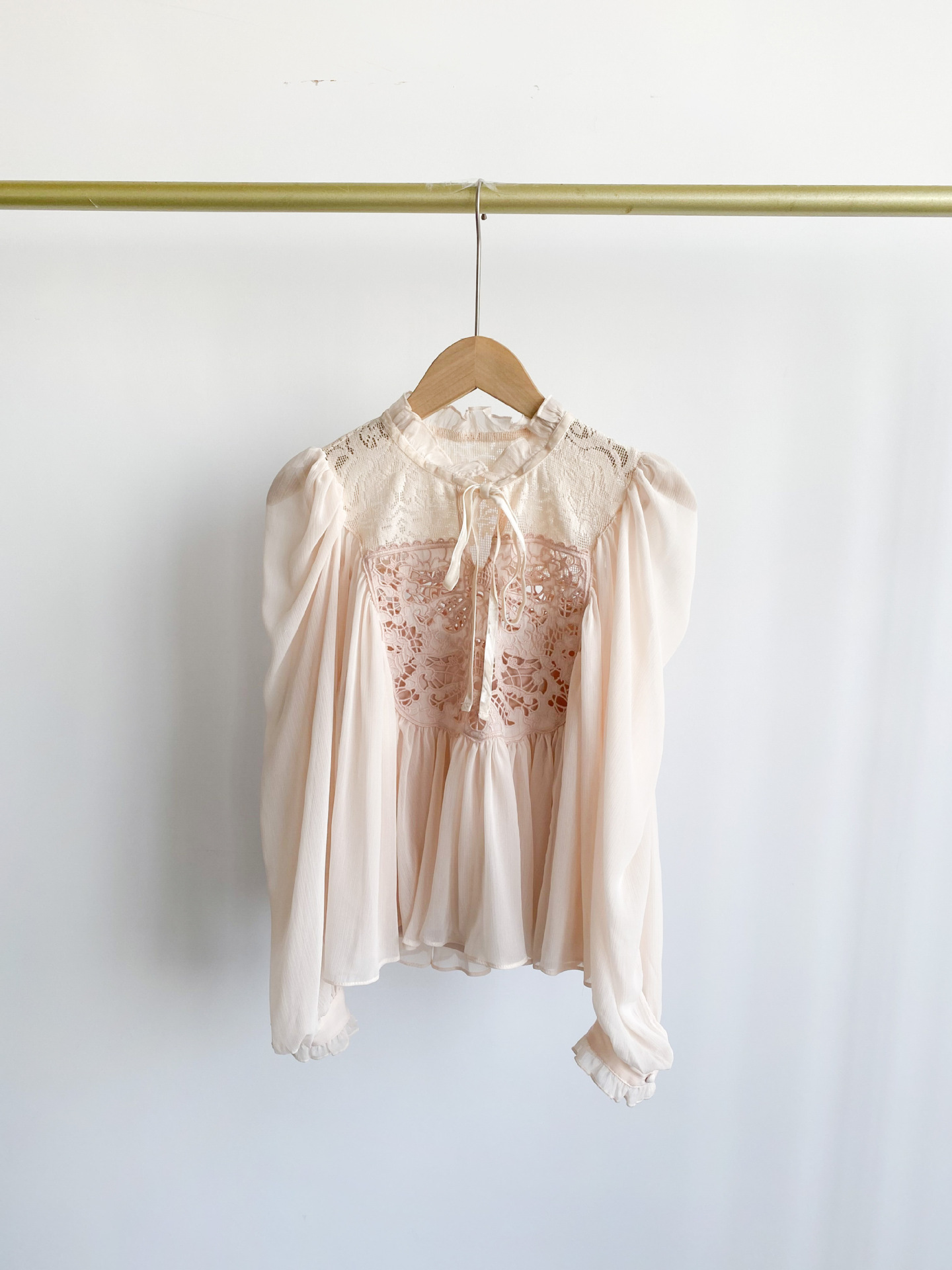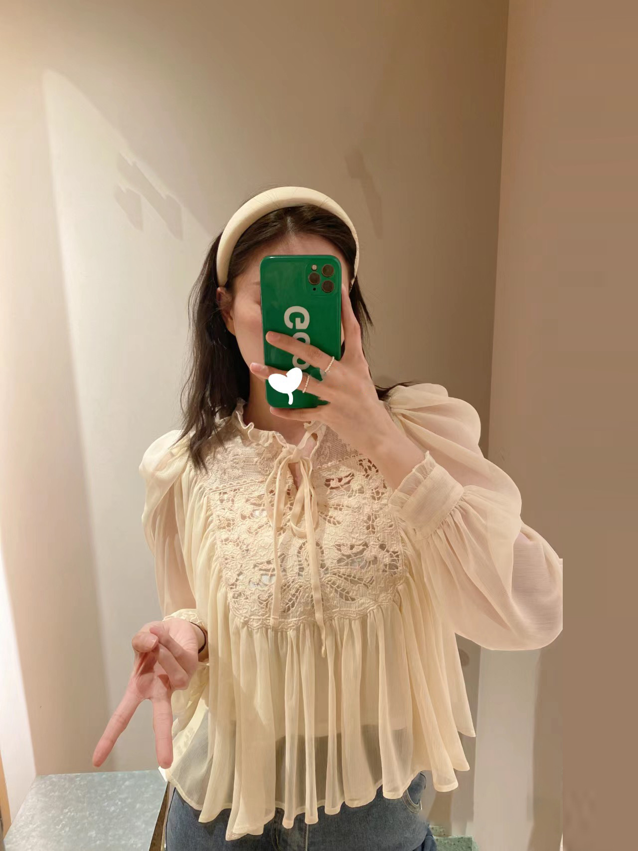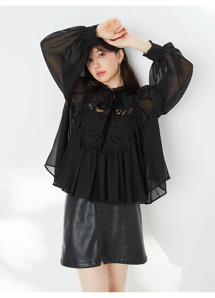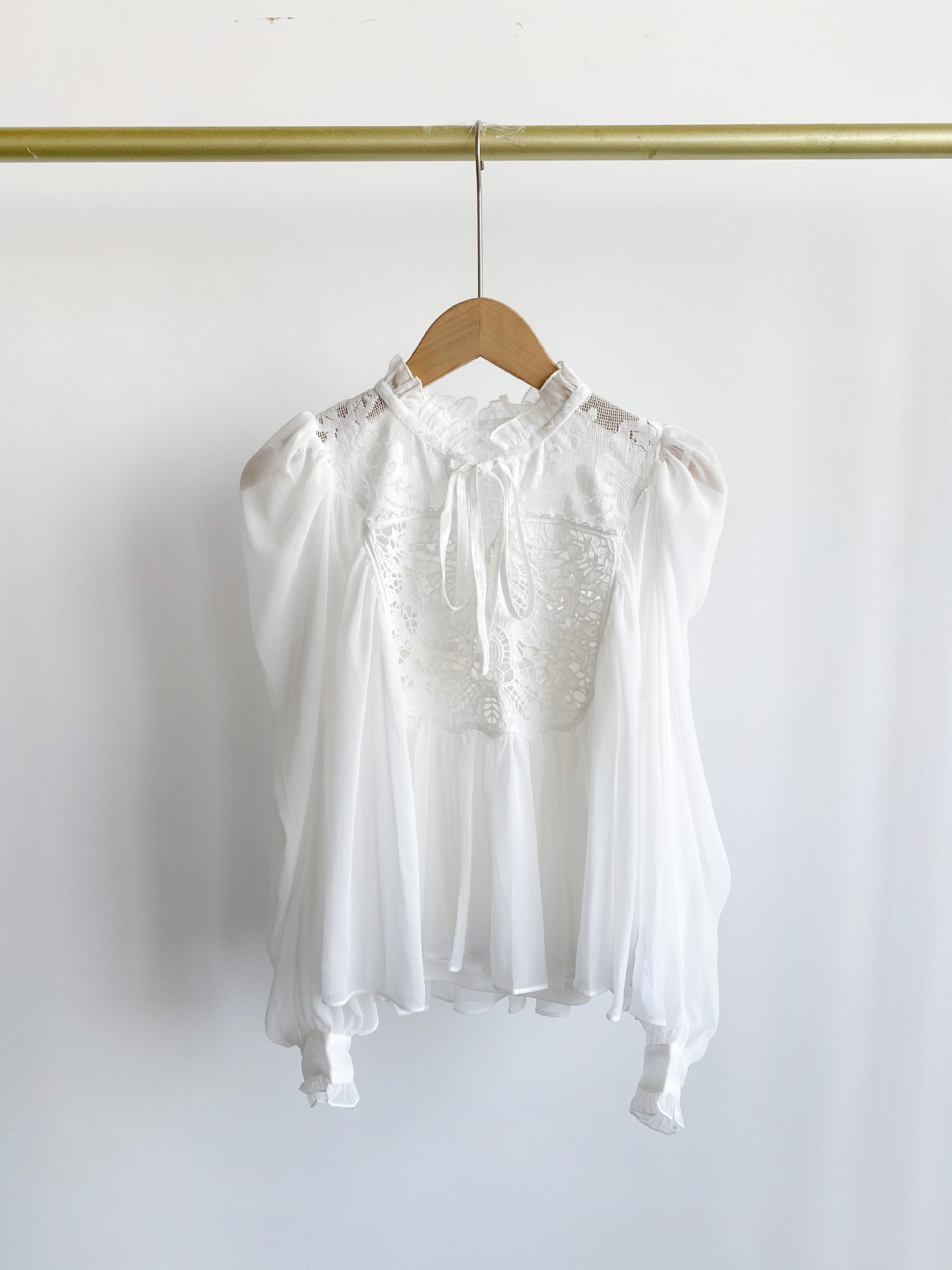 【贅沢なレース使いが目を引く王道フェミニンなブラウス】