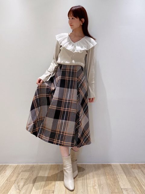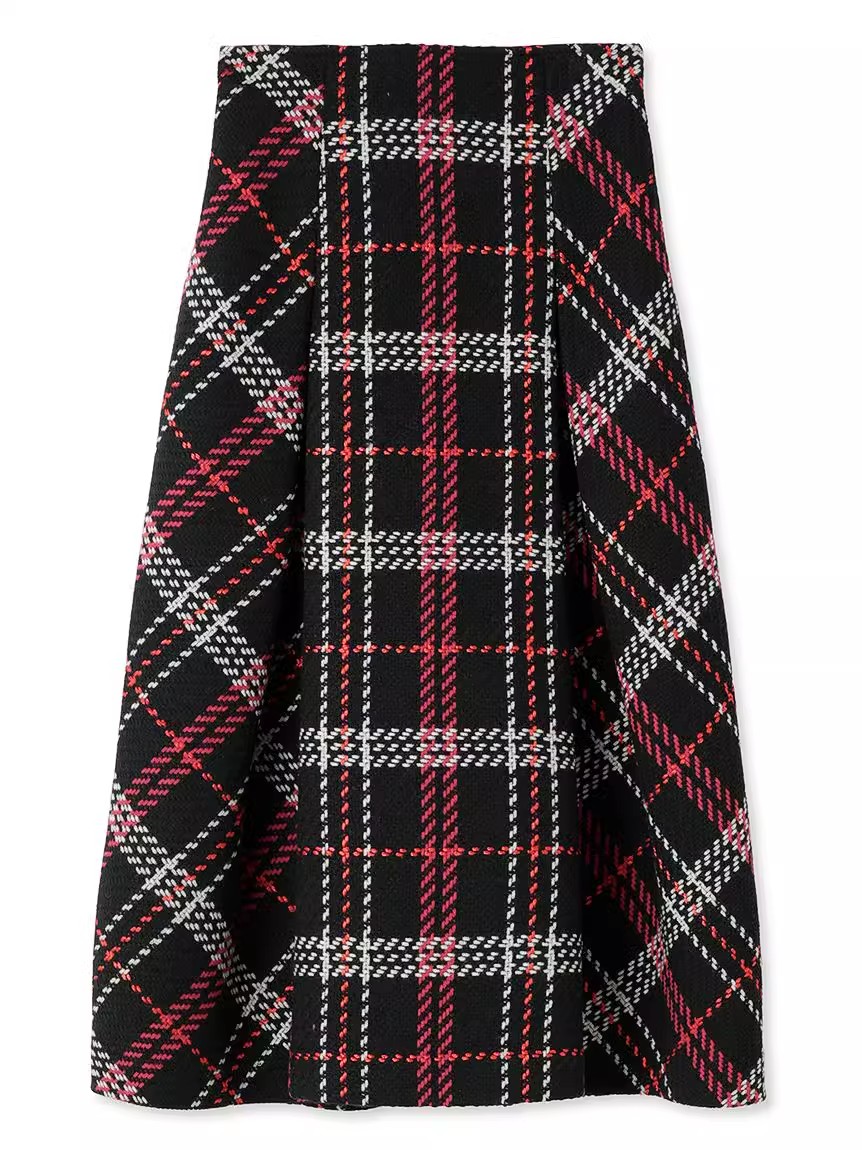 「SNIDEL」定番のロービングチェックスカートがリバイバル。シーズンムード溢れるクラシカルなルックスがスタイリングの品格を高める1着です。両サイドにタックプリーツを効かせ女性らしい立体的なフレアシルエットをメイク。トップスをインしてもすっきりと着こなせるハイウエスト仕様で、スタイルアップ効果も期待できます。
