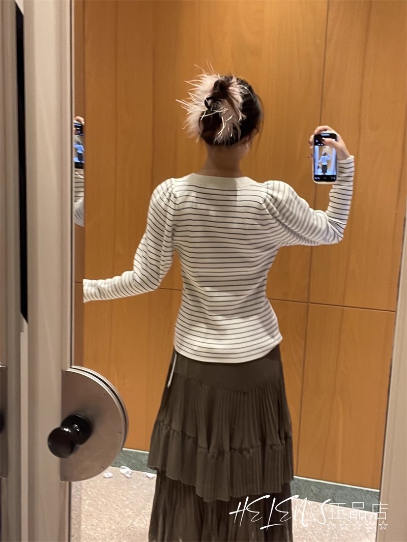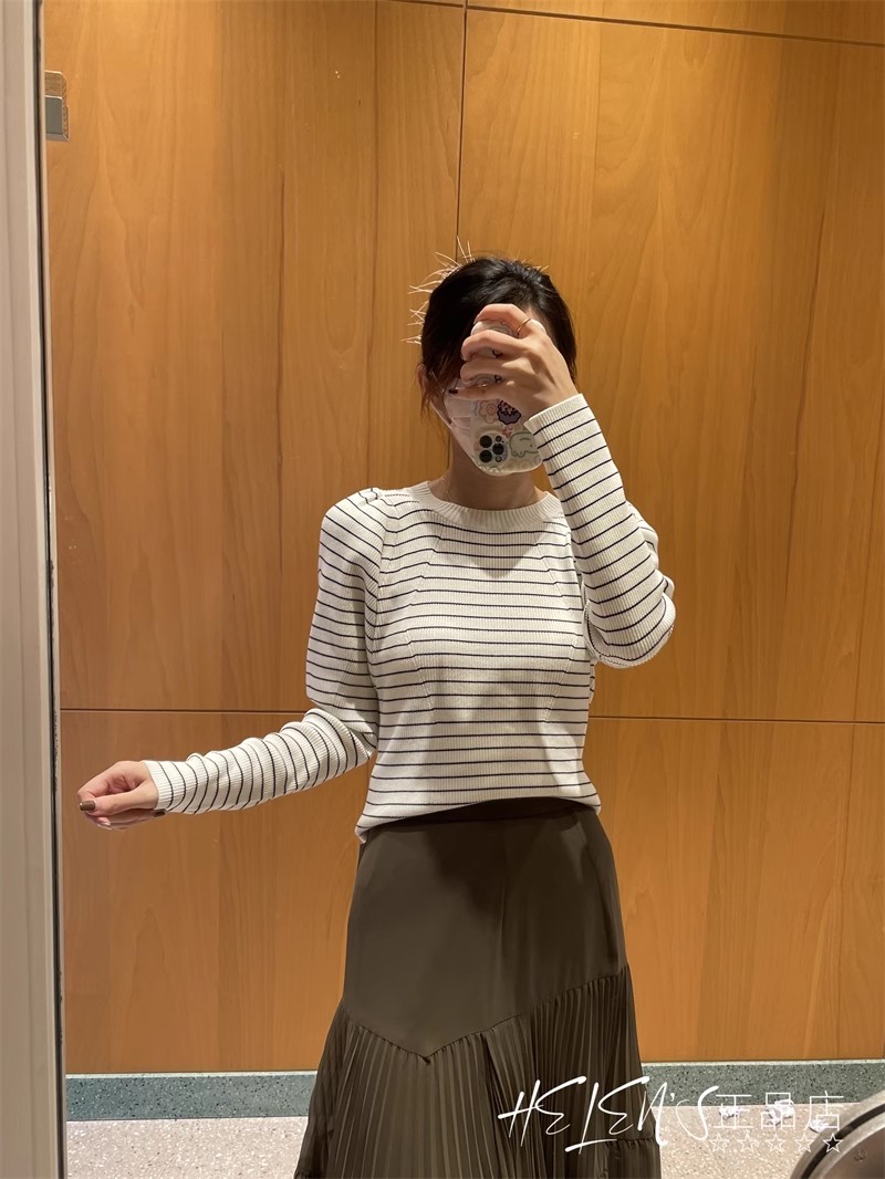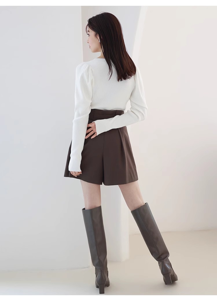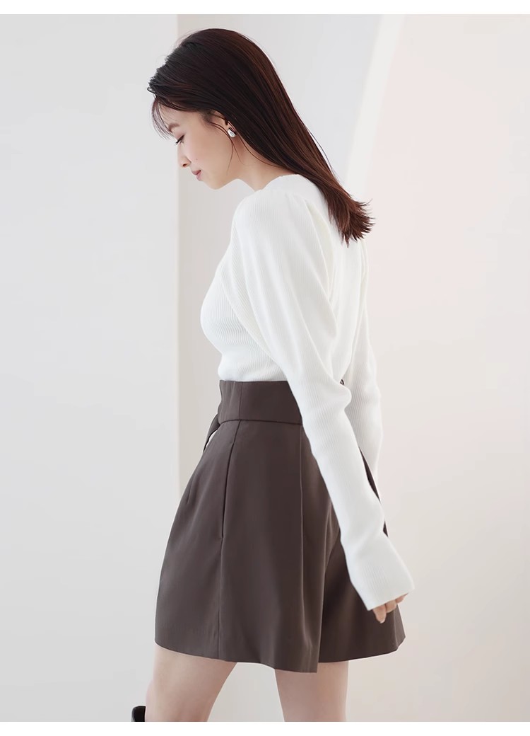 【レディライクなメリハリシルエットでスタイルアップへと導くニットトップス】