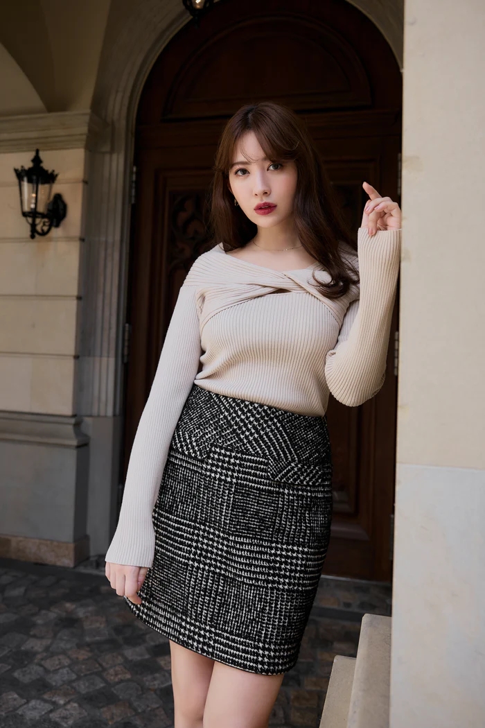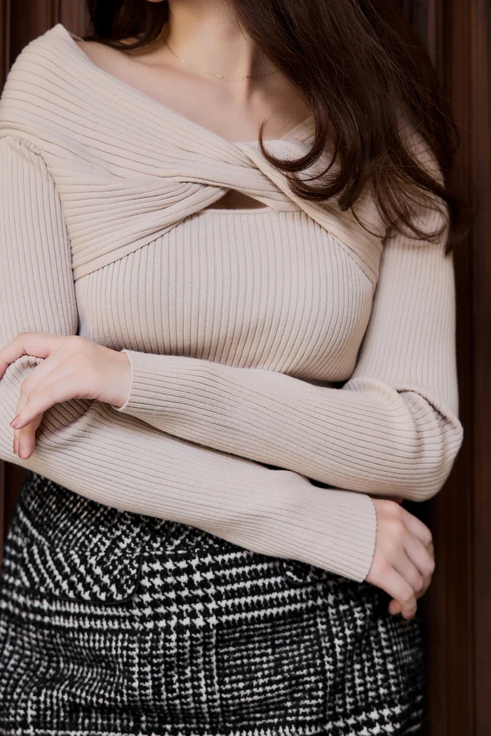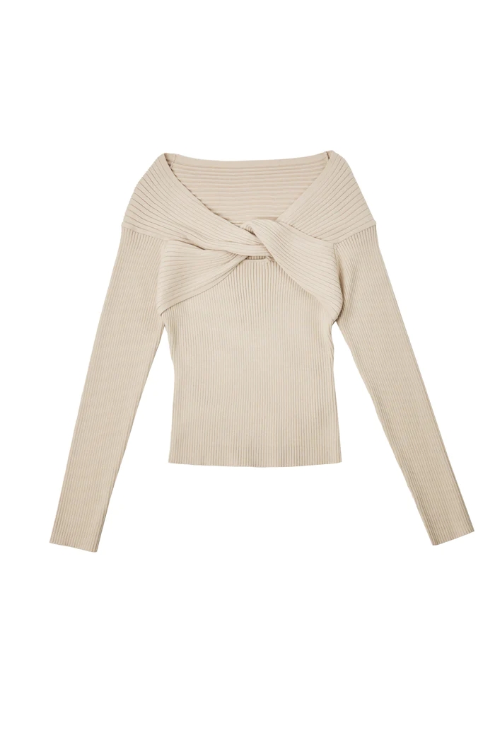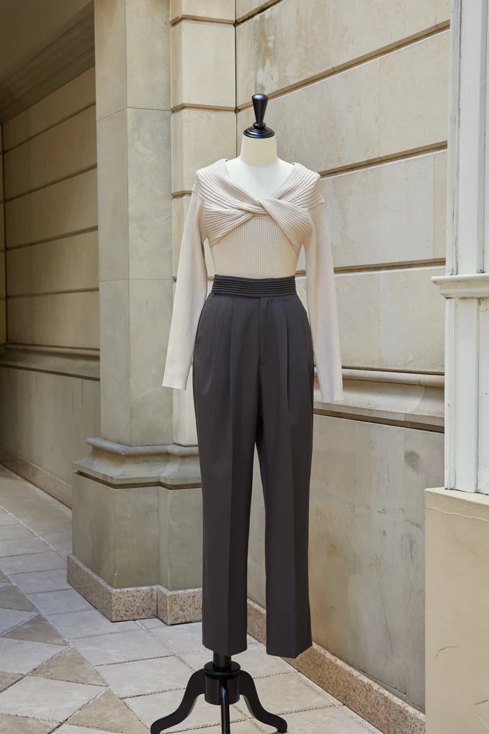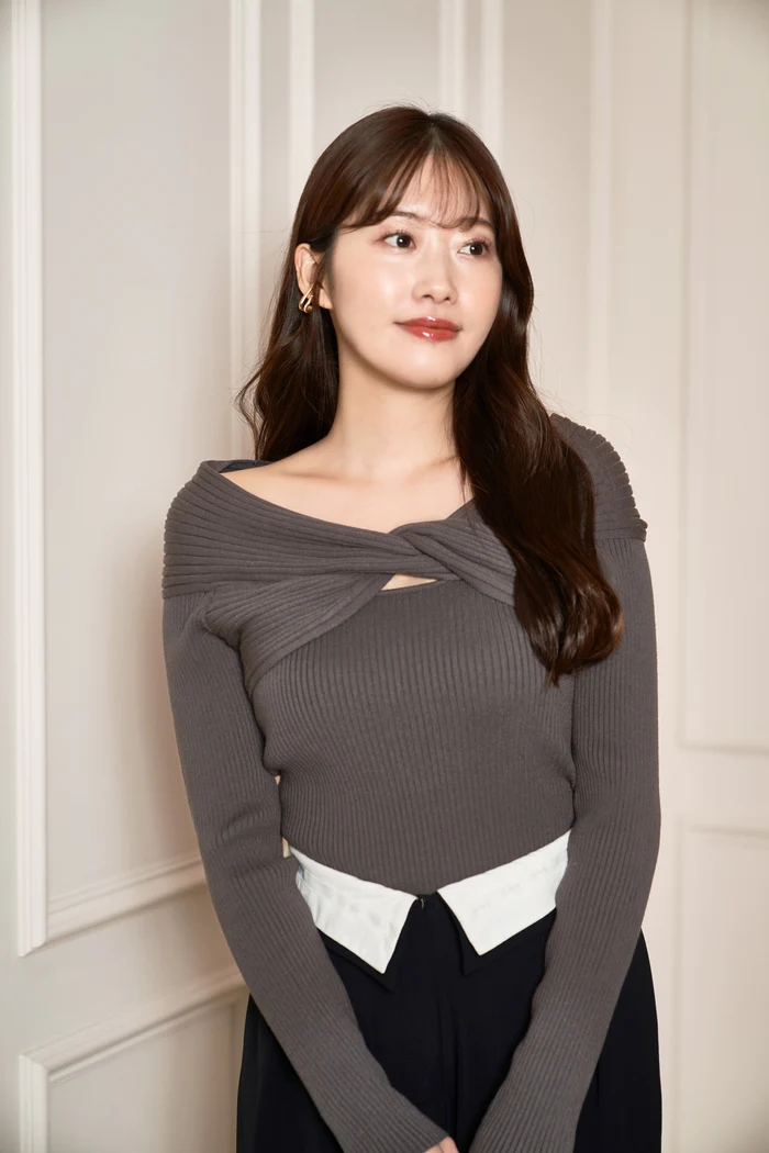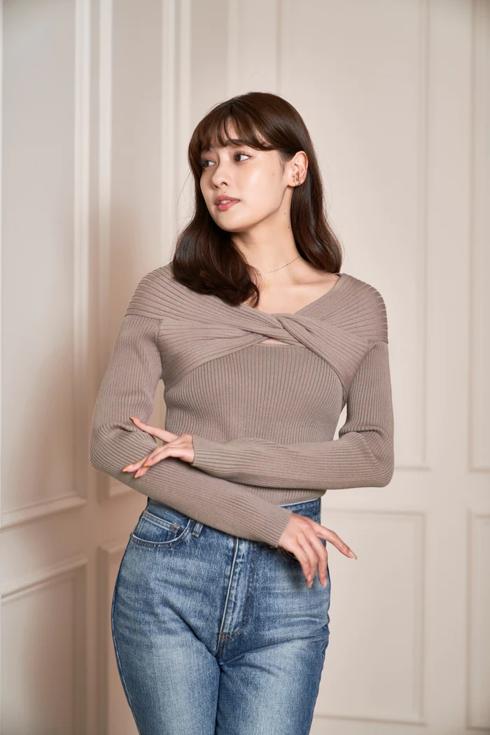 胸元のツイストディティールが魅力的な女性らしさを体現したニットプルオーバー。