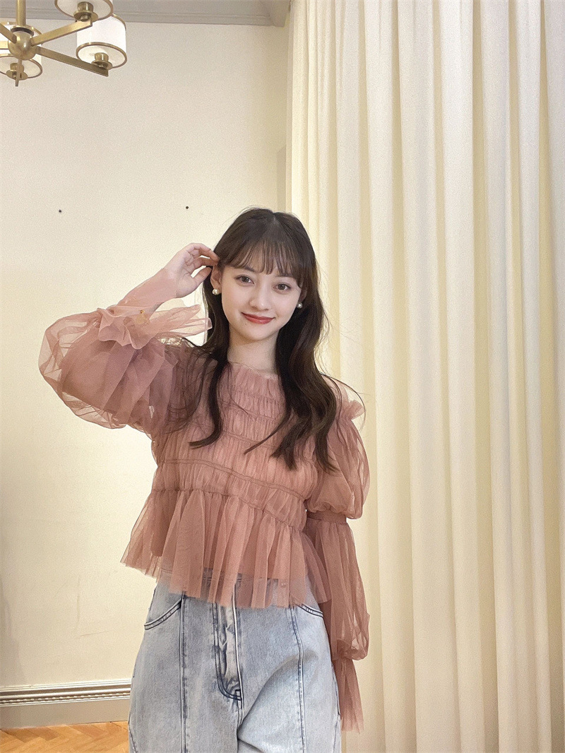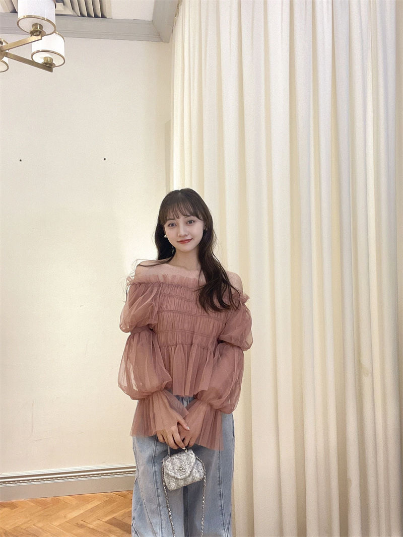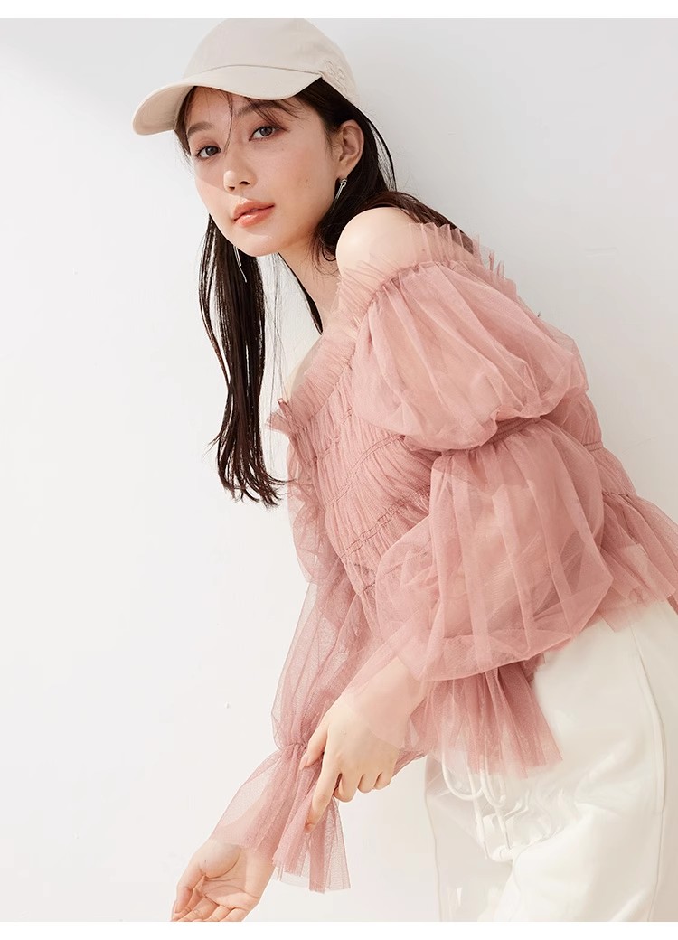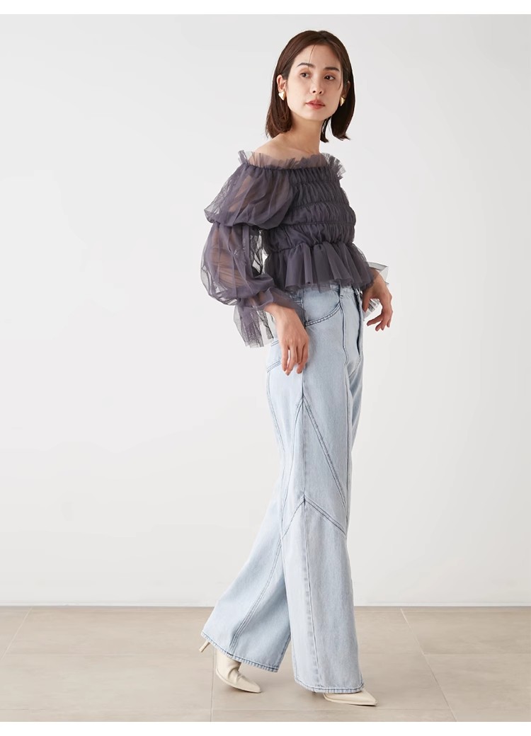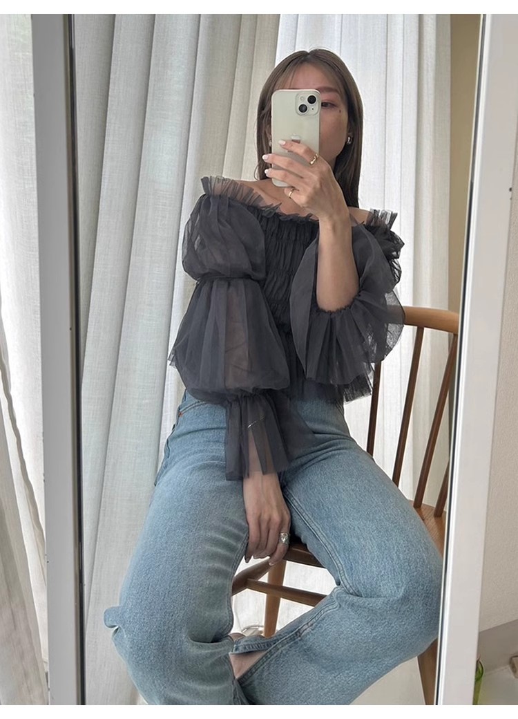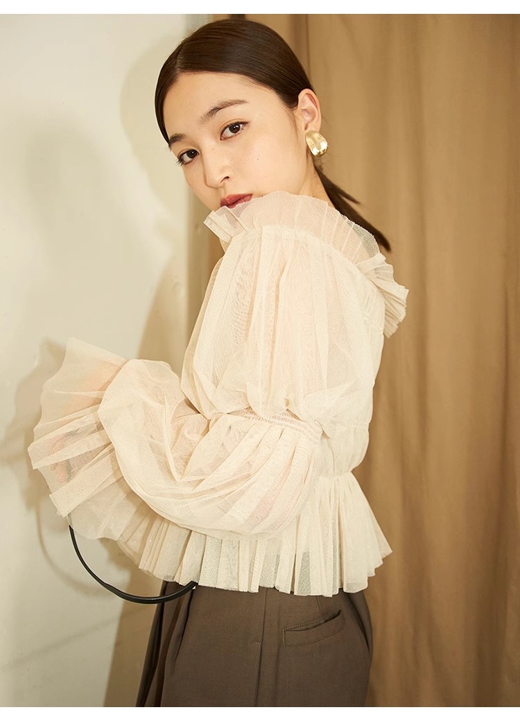 【繊細なチュールを贅沢に使用したレディ度満点のブラウス】